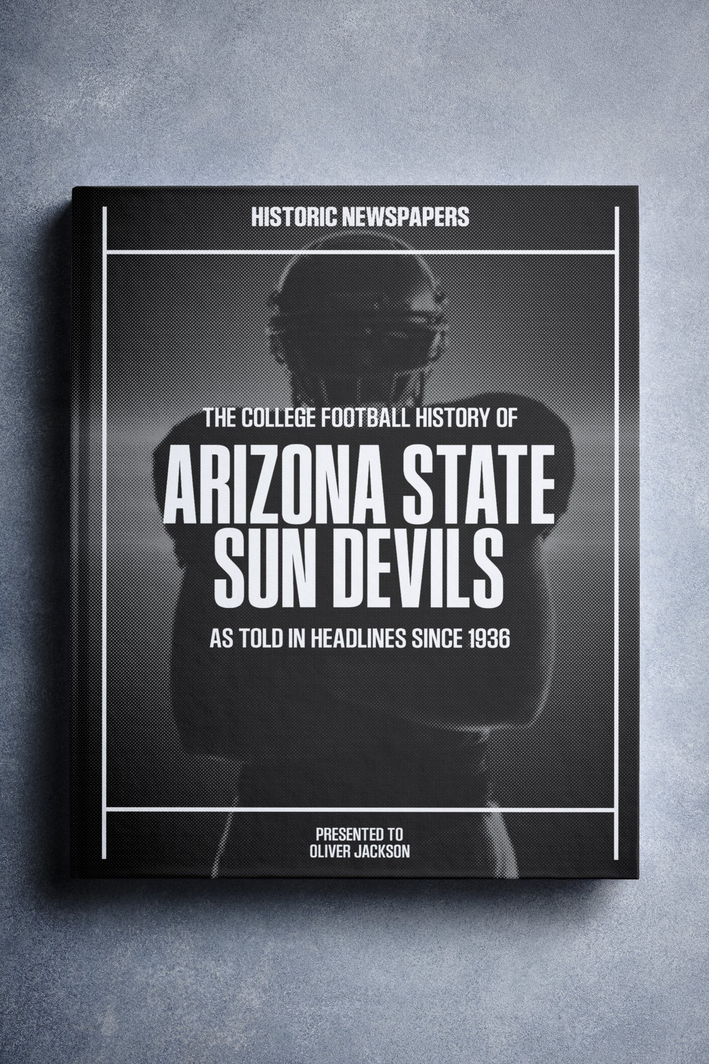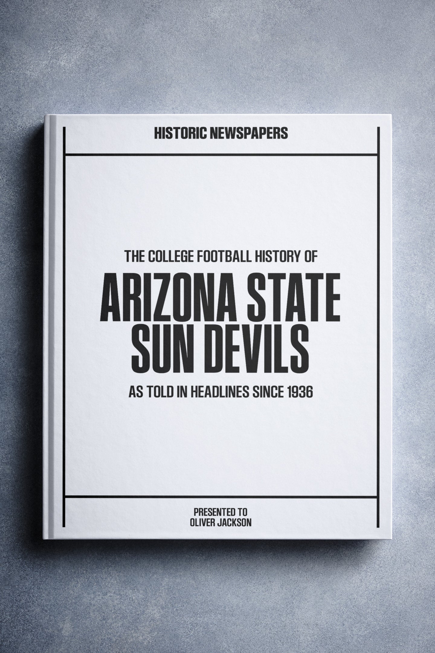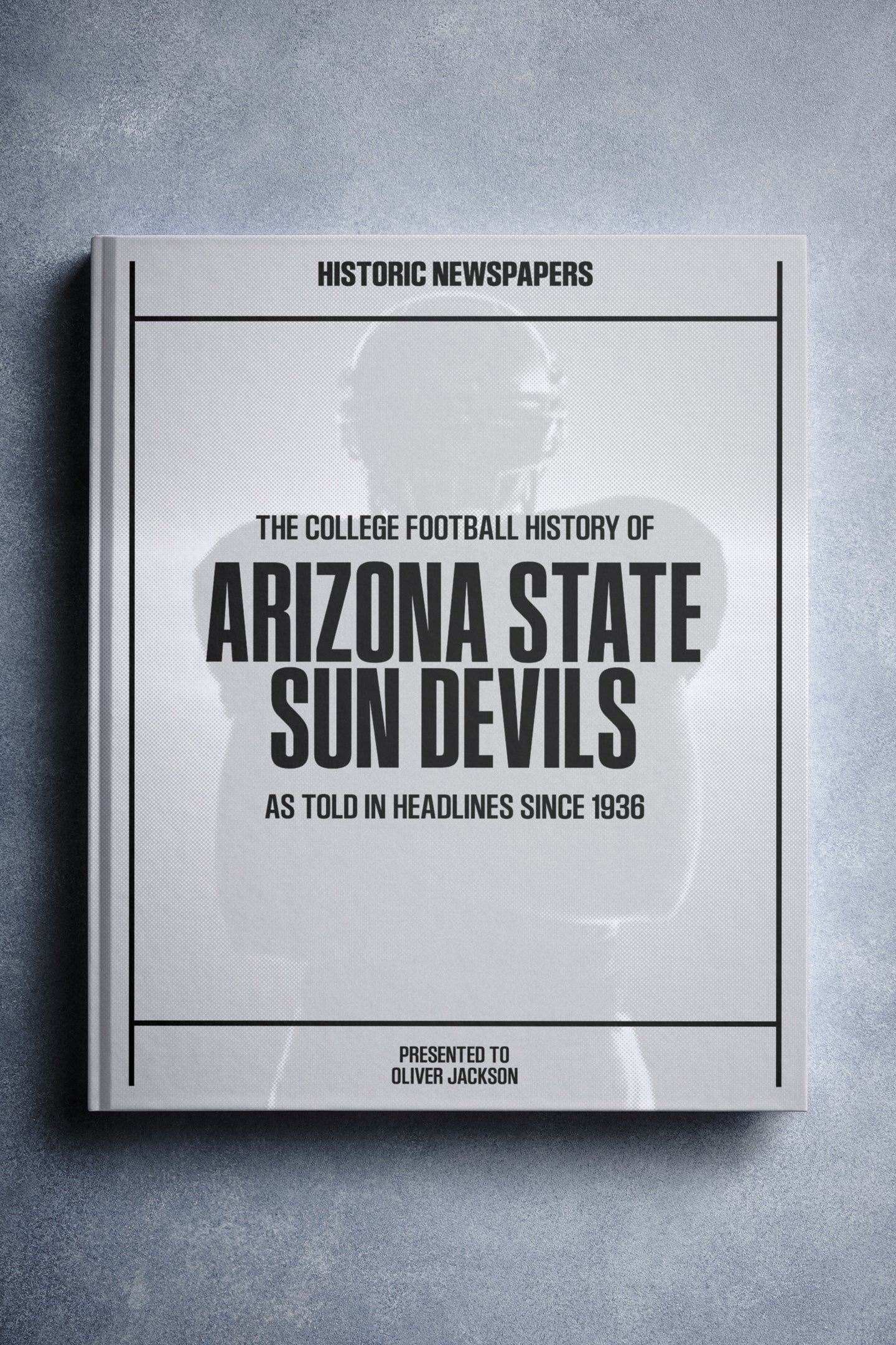This coffee-table book features over 150 pages of authentic newspaper reports about The History of the Arizona State Sun Devils College Football Team. It comes with a choice of covers and the option to have the recipient’s name printed on the cover for free.