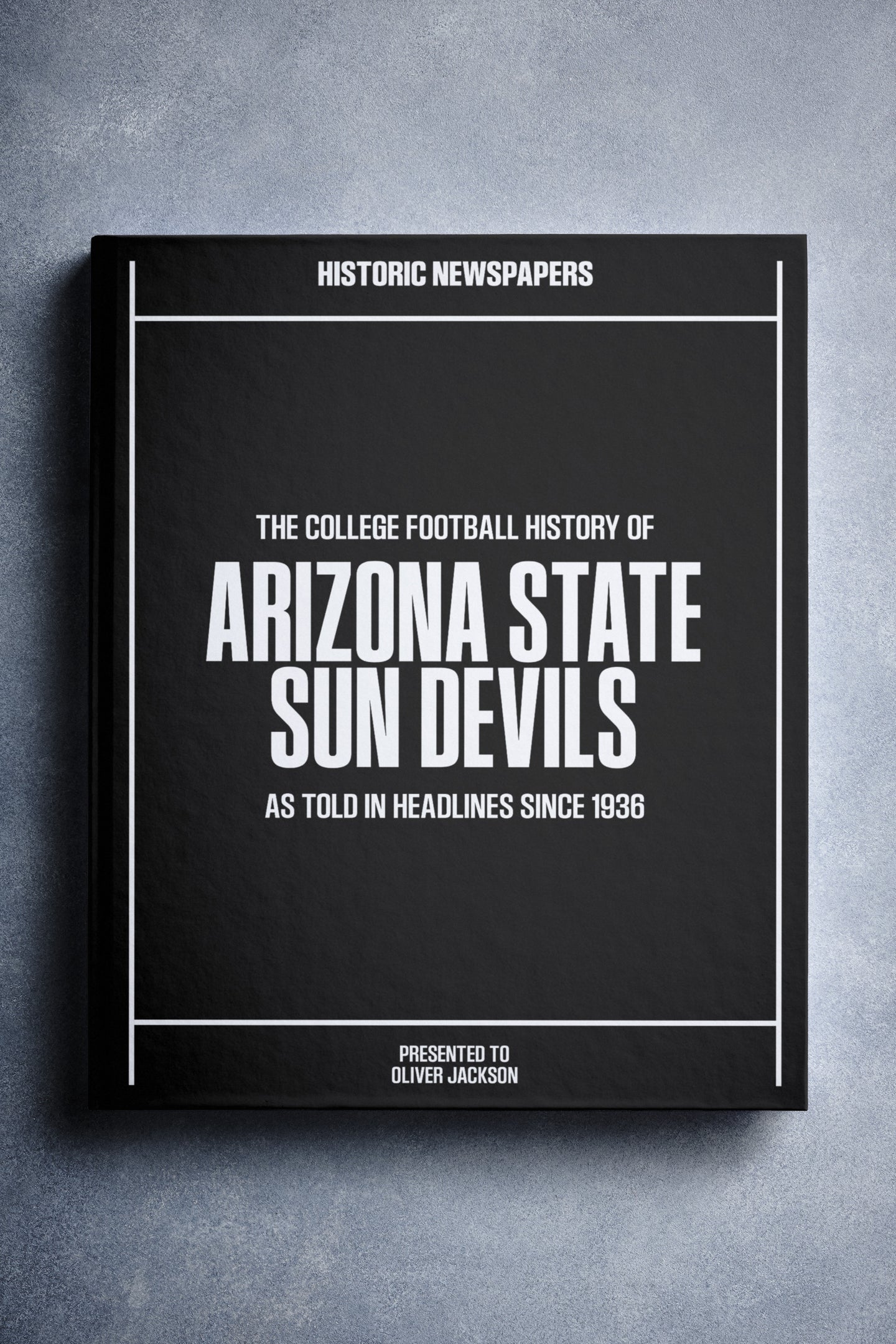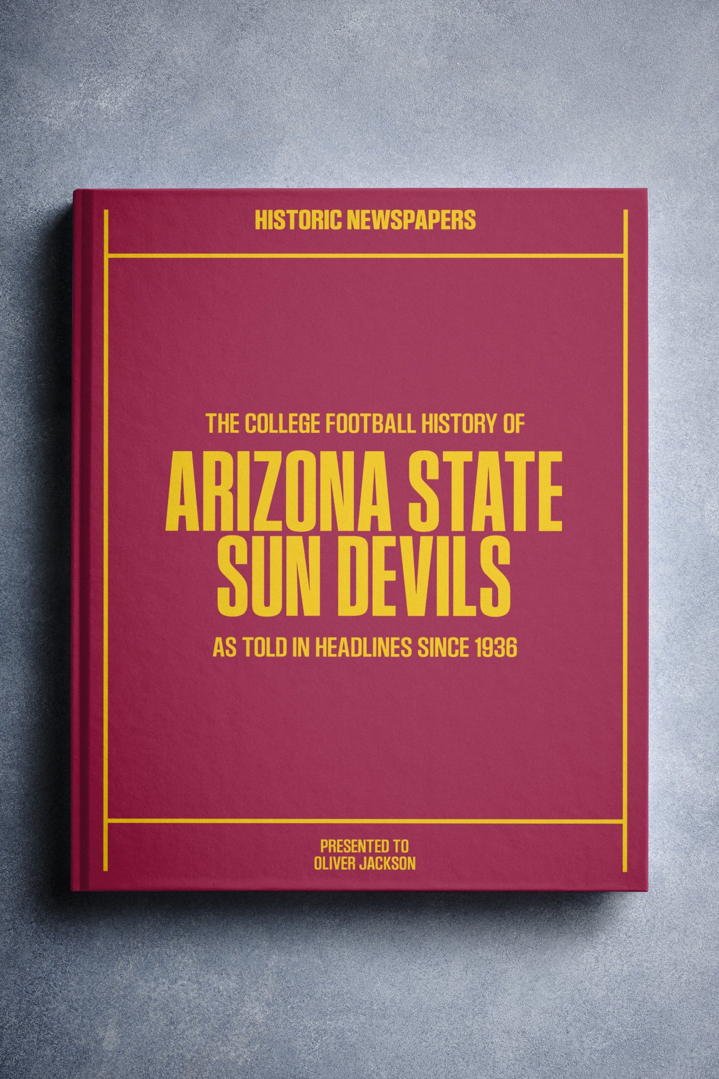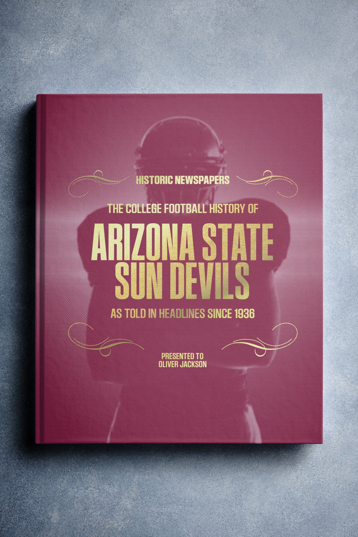 This coffee-table book features over 150 pages of authentic newspaper reports about The History of the Arizona State Sun Devils College Football Team. It comes with a choice of covers and the option to have the recipient’s name printed on the cover for free.