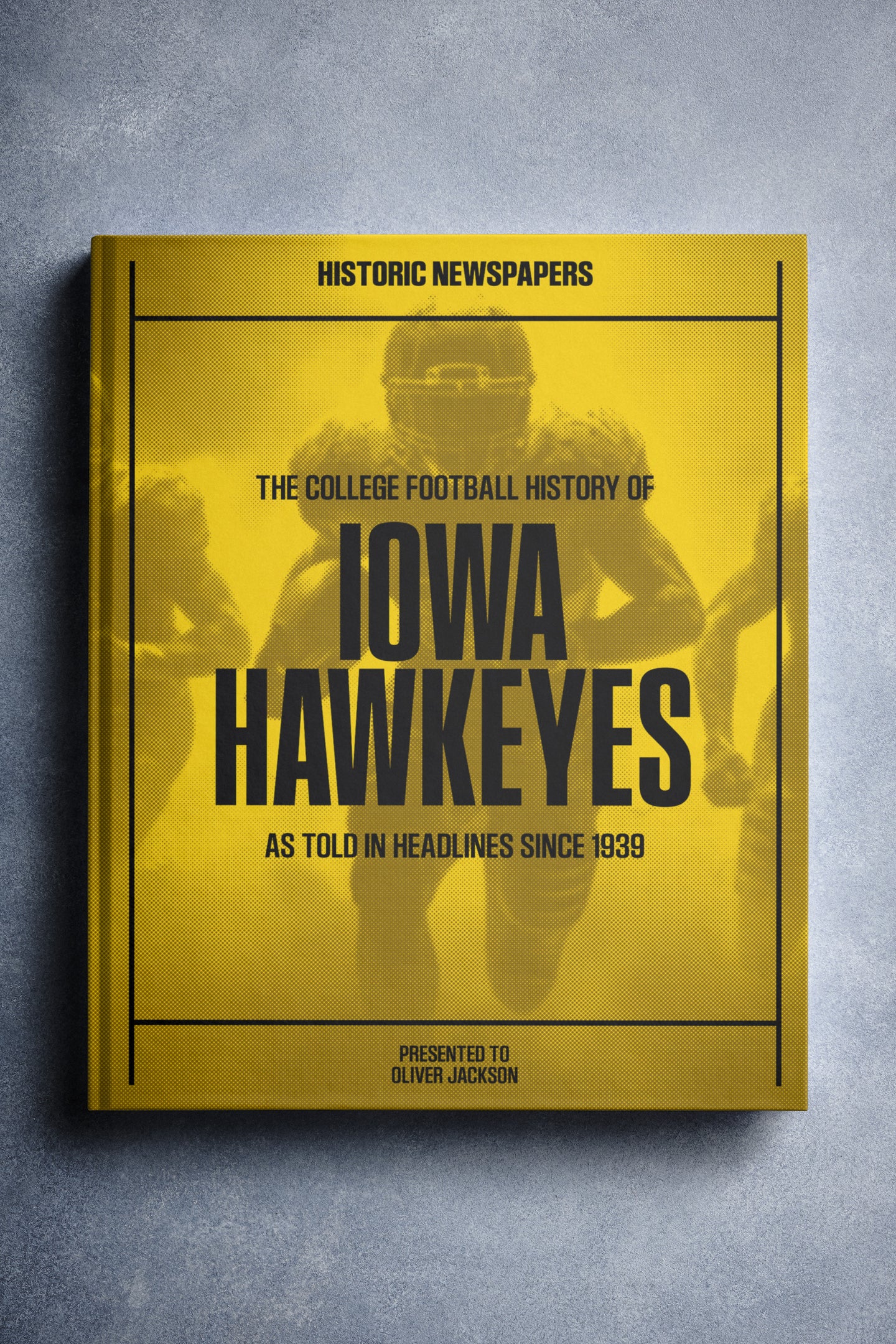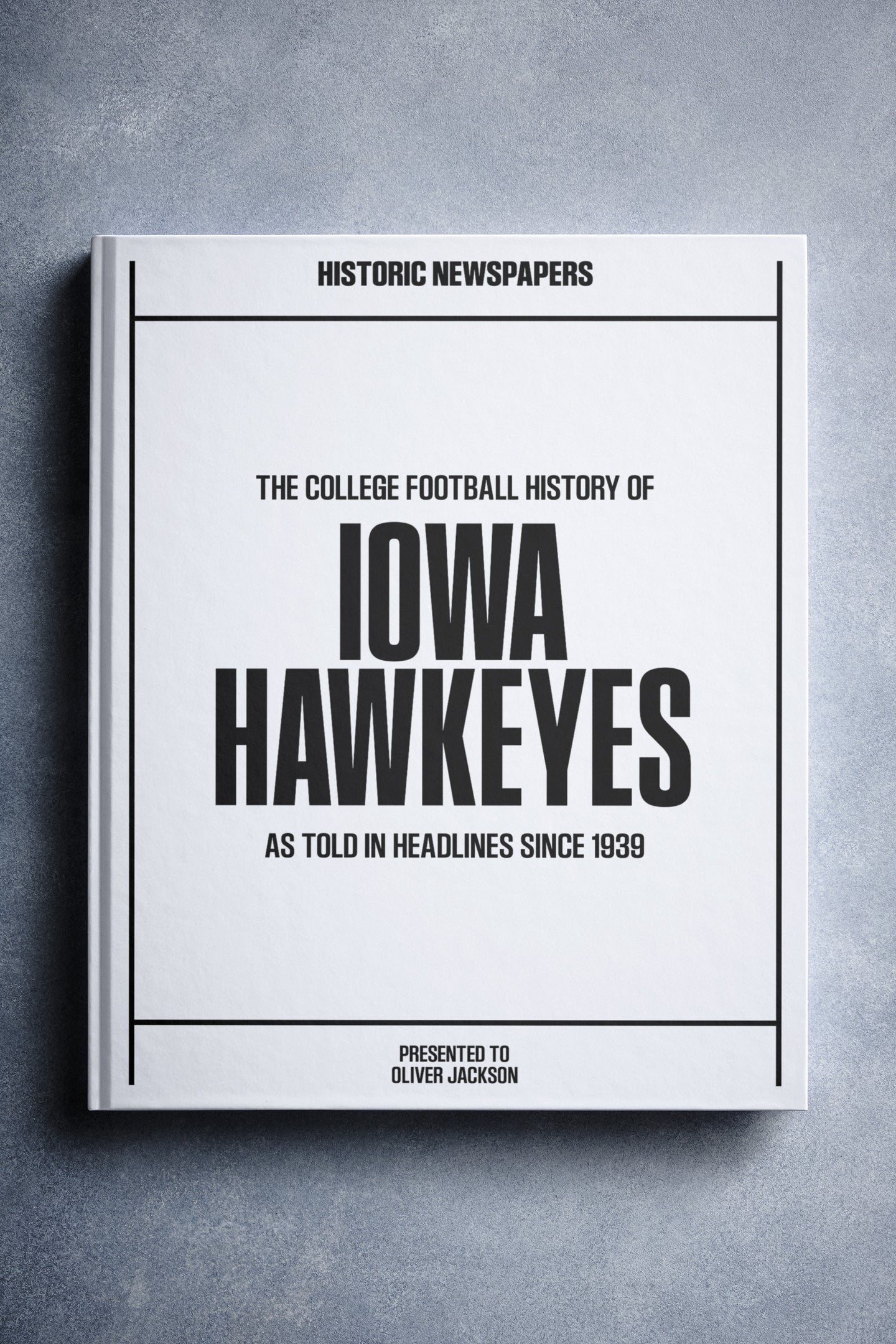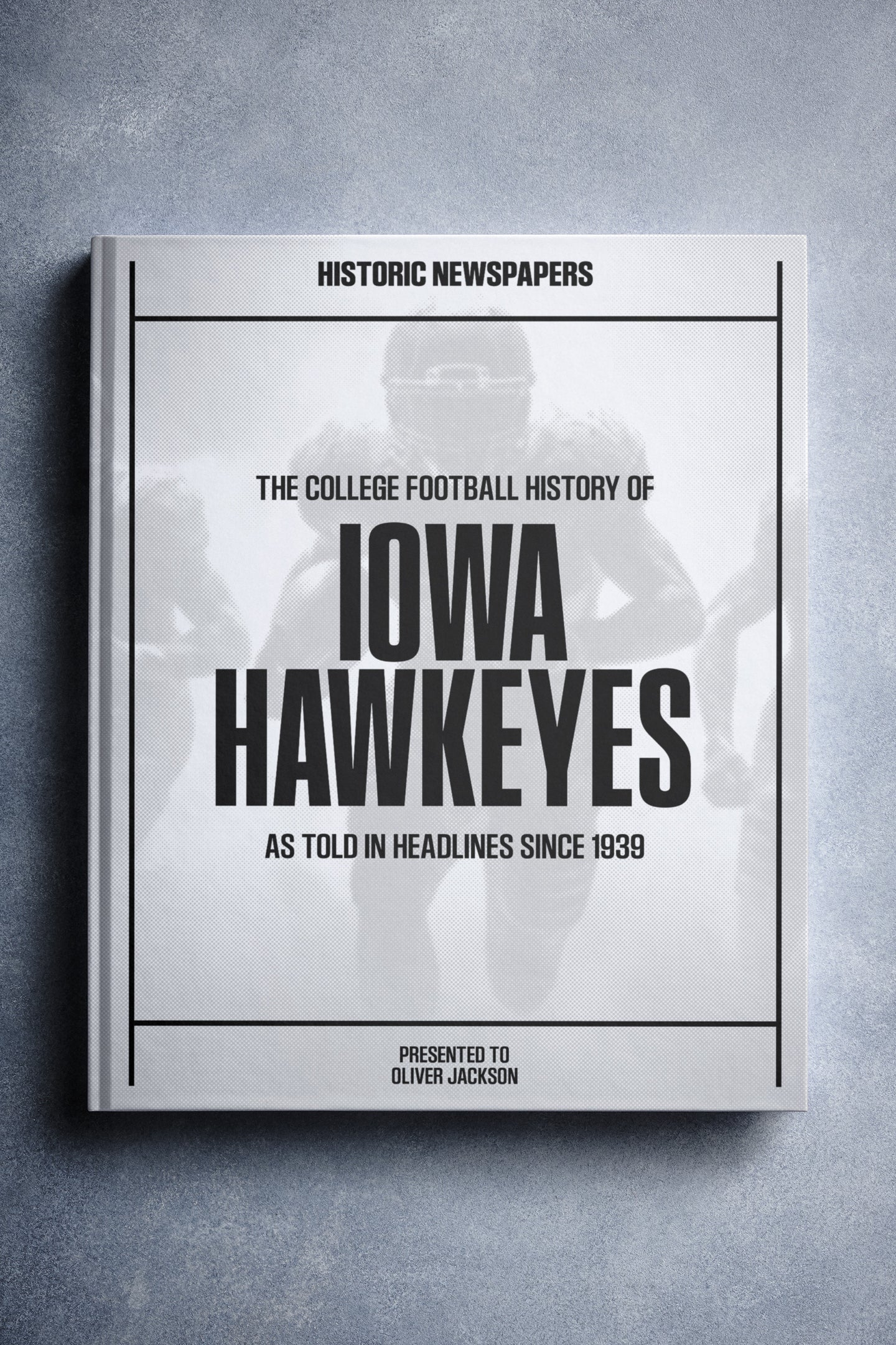 FOLLOW the story of the Iowa Hawkeyes from 1939 onwards, told through original newspaper reports as they were published at the time. From winning the 1957 Rose Bowl, to the 12–10 win over No. 2 Michigan in 1985, and the thrilling Capital One Bowl win in 2005. Choose from a range of book covers and personalise your book with a name and message to create a lasting keepsake. A piece of Hawkeyes history to gift, share, and relive.