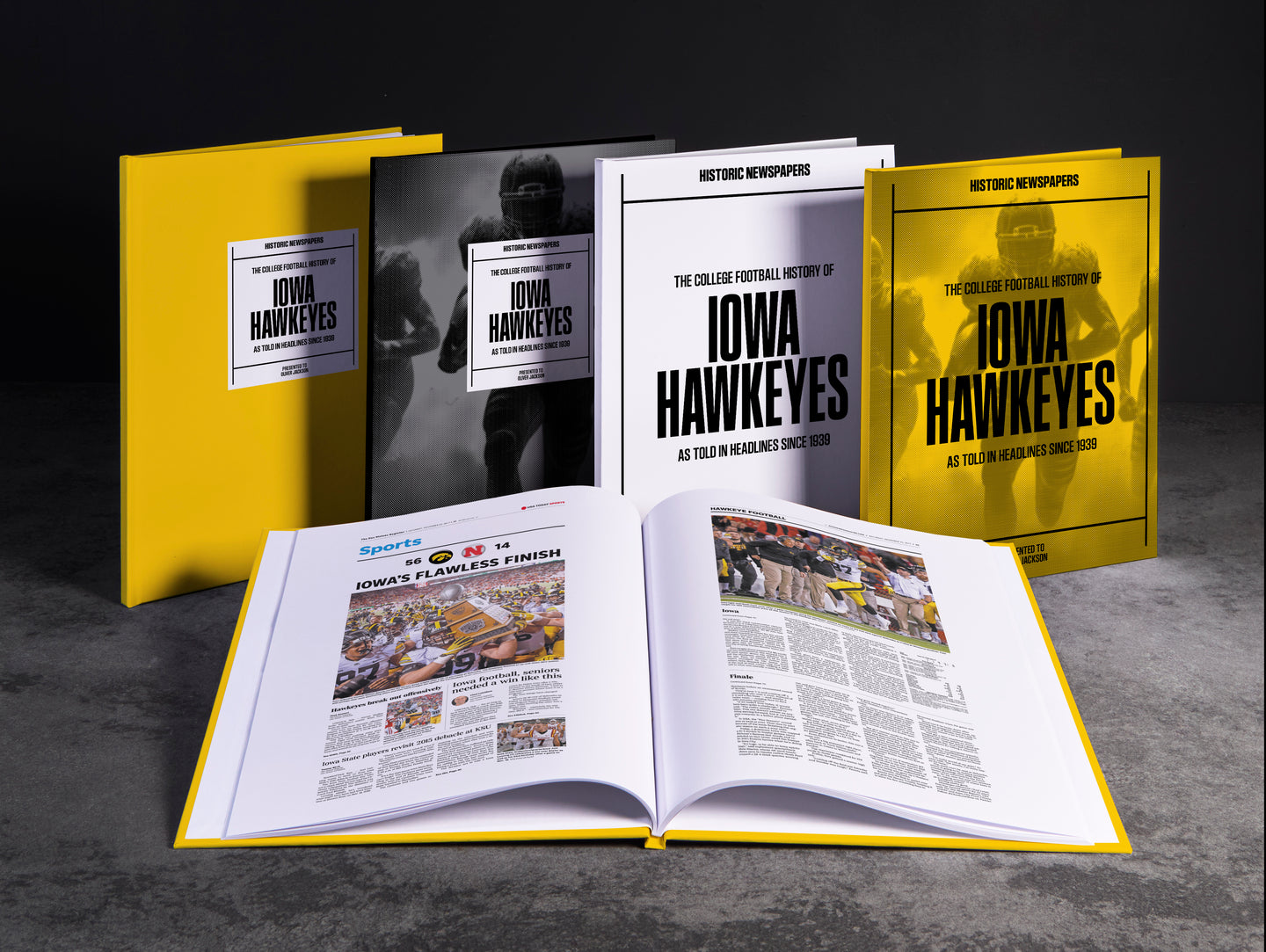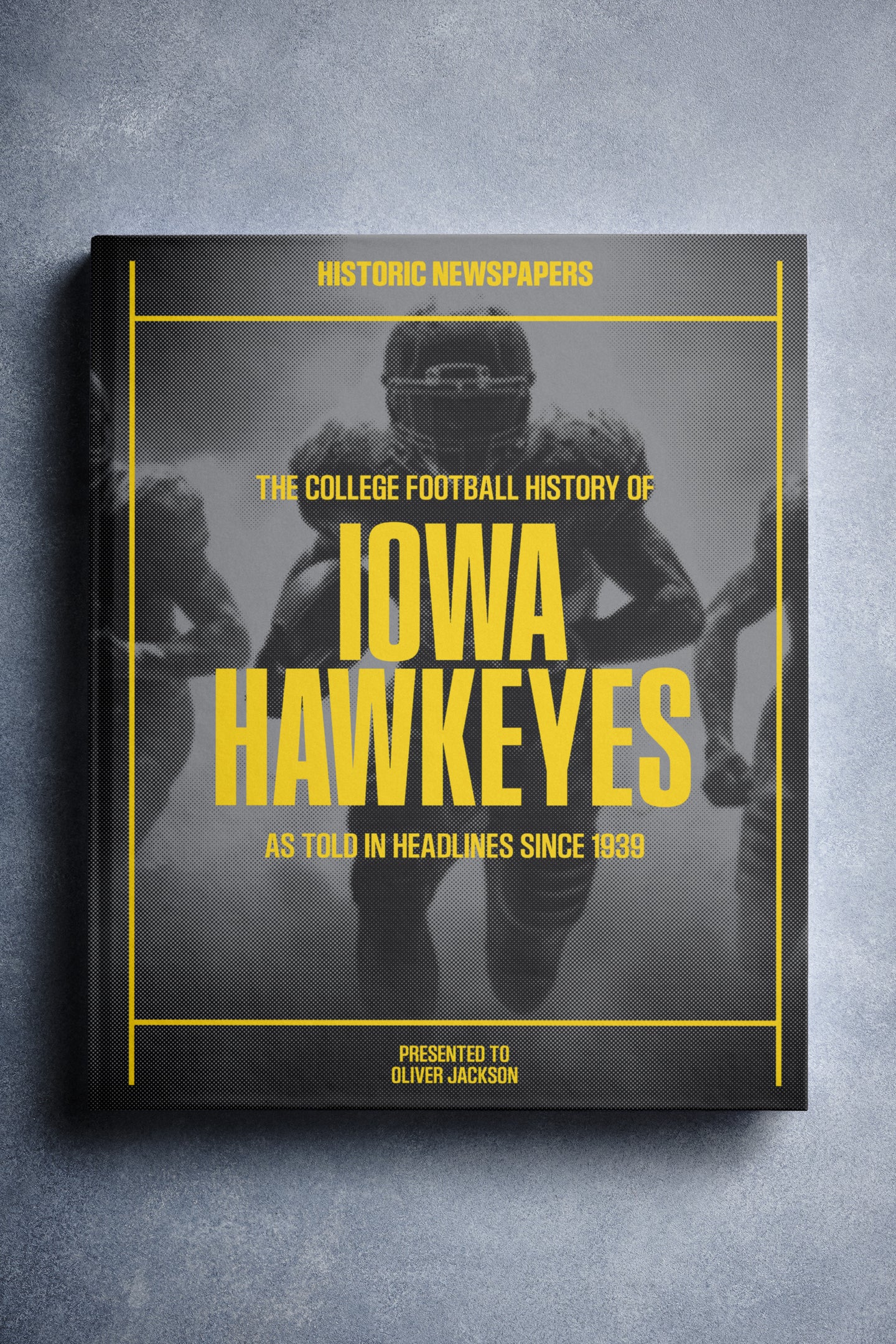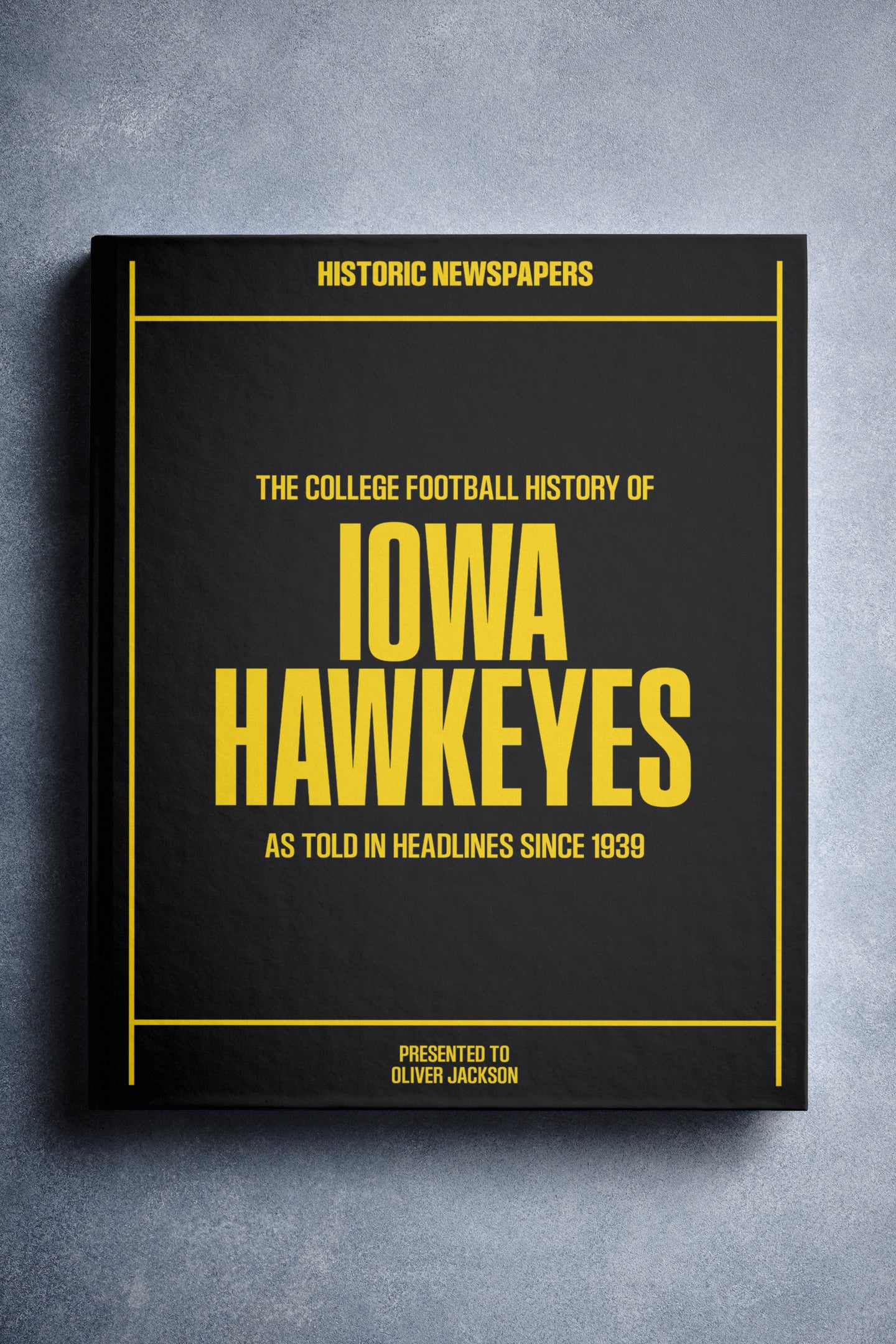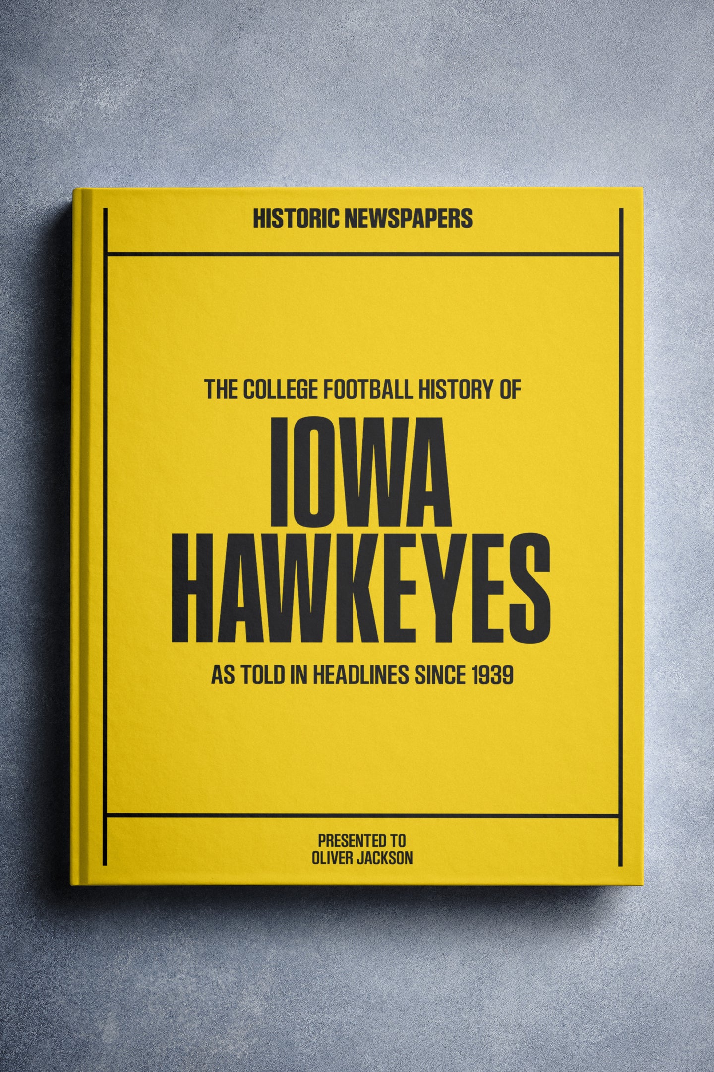 FOLLOW the story of the Iowa Hawkeyes from 1939 onwards, told through original newspaper reports as they were published at the time. From winning the 1957 Rose Bowl, to the 12–10 win over No. 2 Michigan in 1985, and the thrilling Capital One Bowl win in 2005. Choose from a range of book covers and personalise your book with a name and message to create a lasting keepsake. A piece of Hawkeyes history to gift, share, and relive.