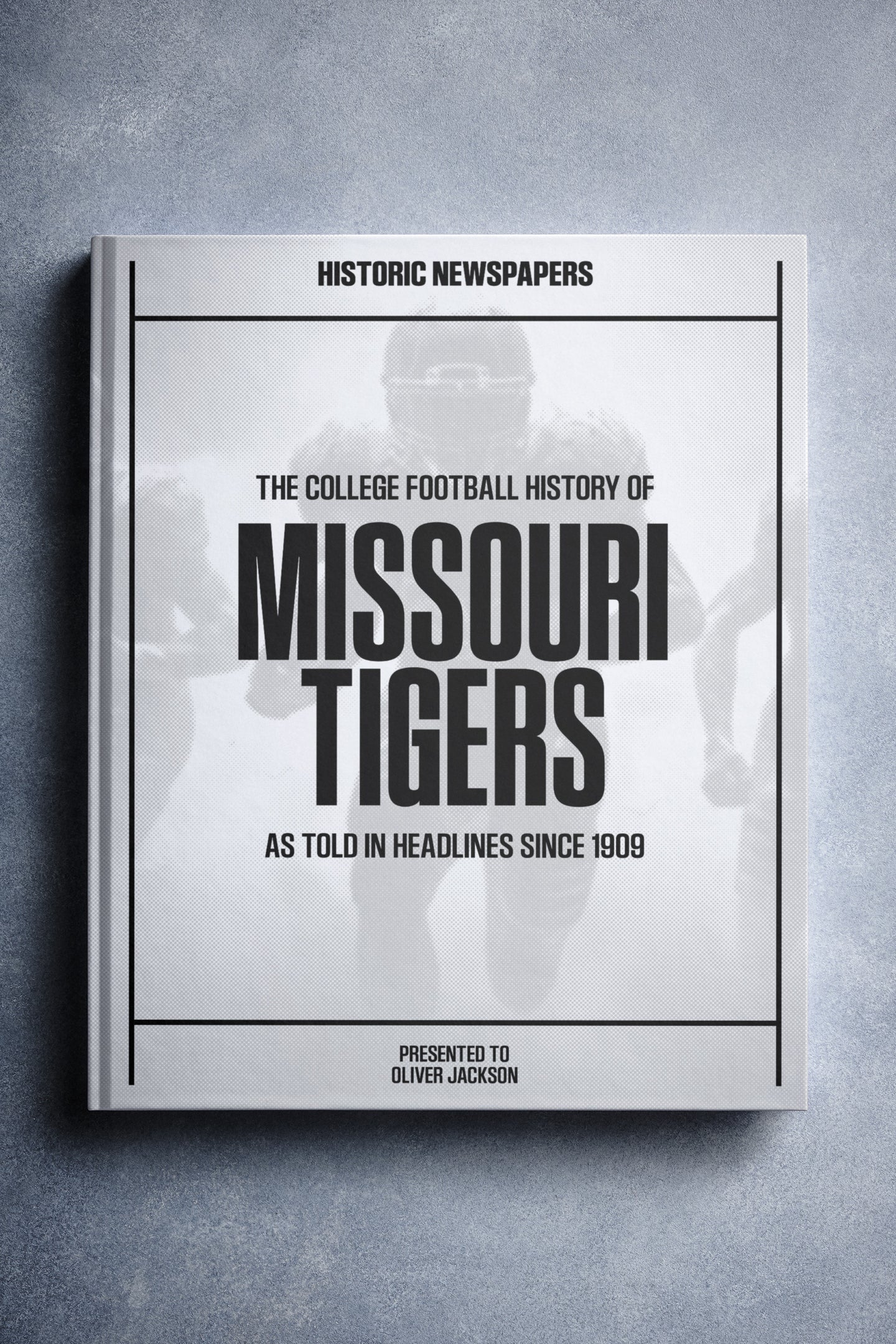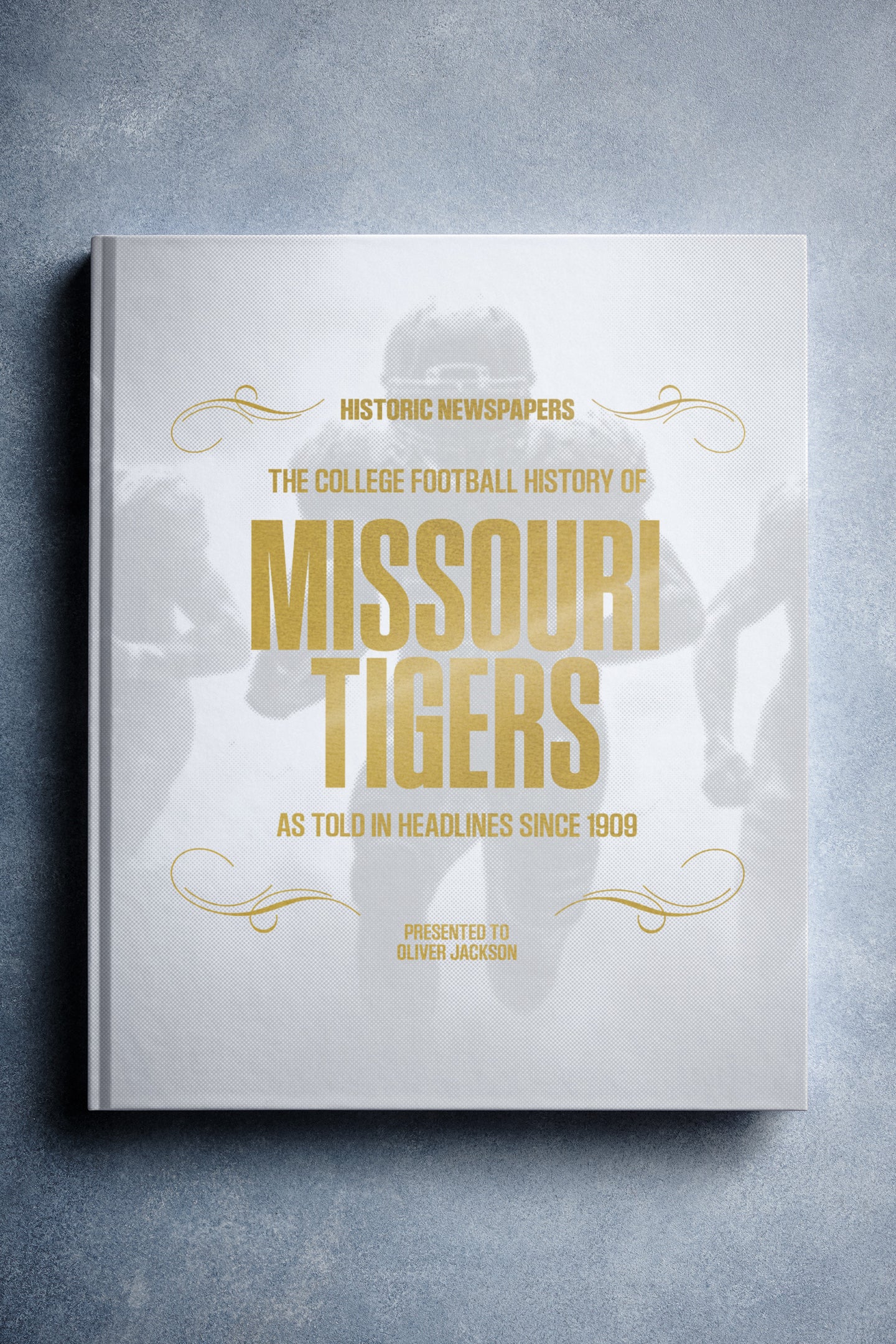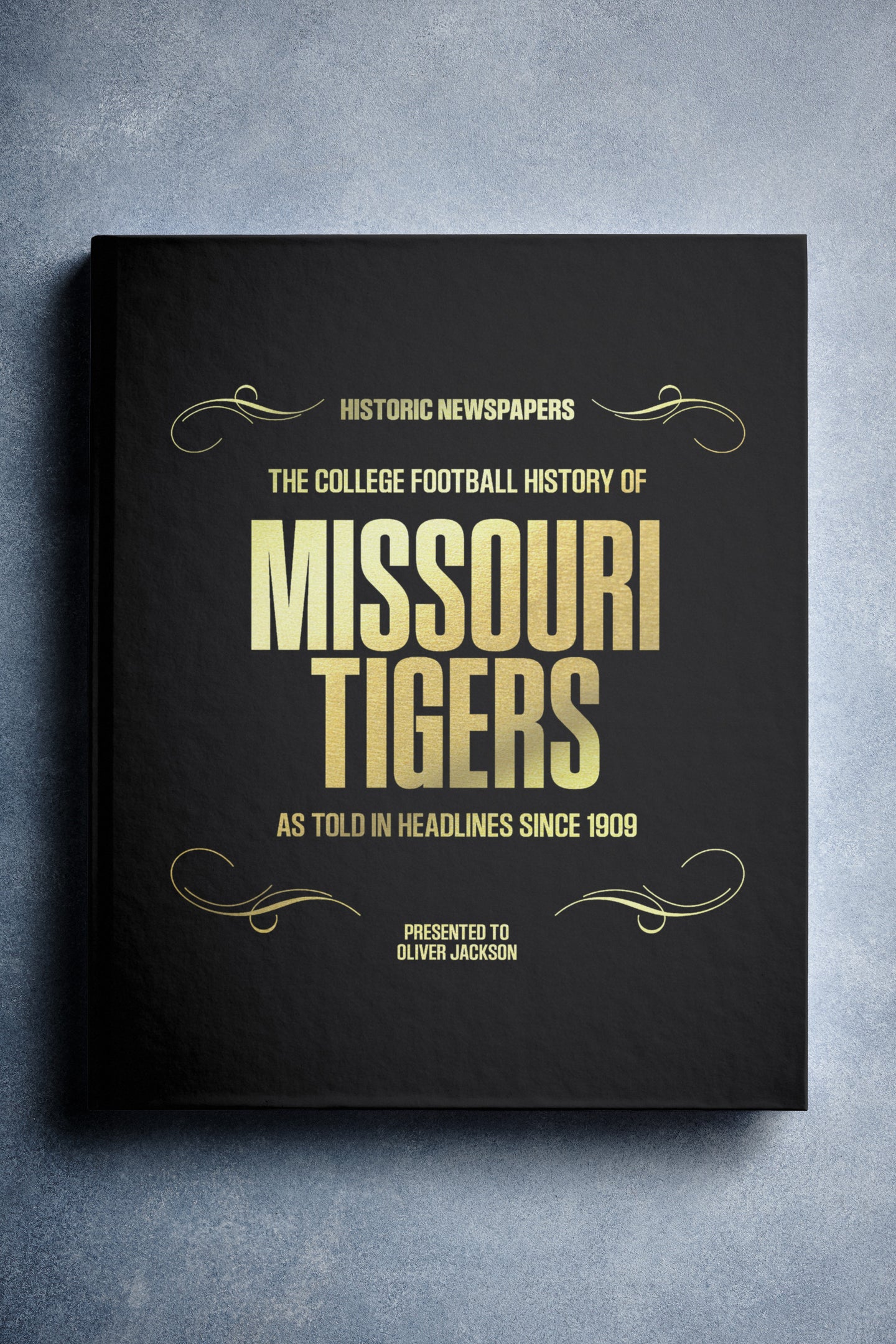 This coffee-table book features 150 pages of authentic newspaper reports about The History of the Missouri Tigers College Football Team. It comes with a choice of covers and the option to have the recipient’s name printed on the cover for free.