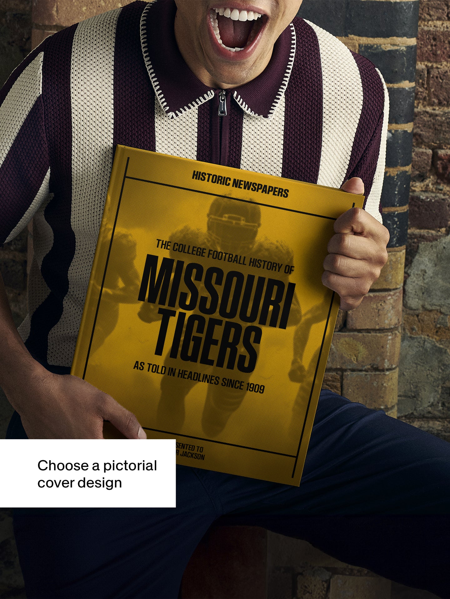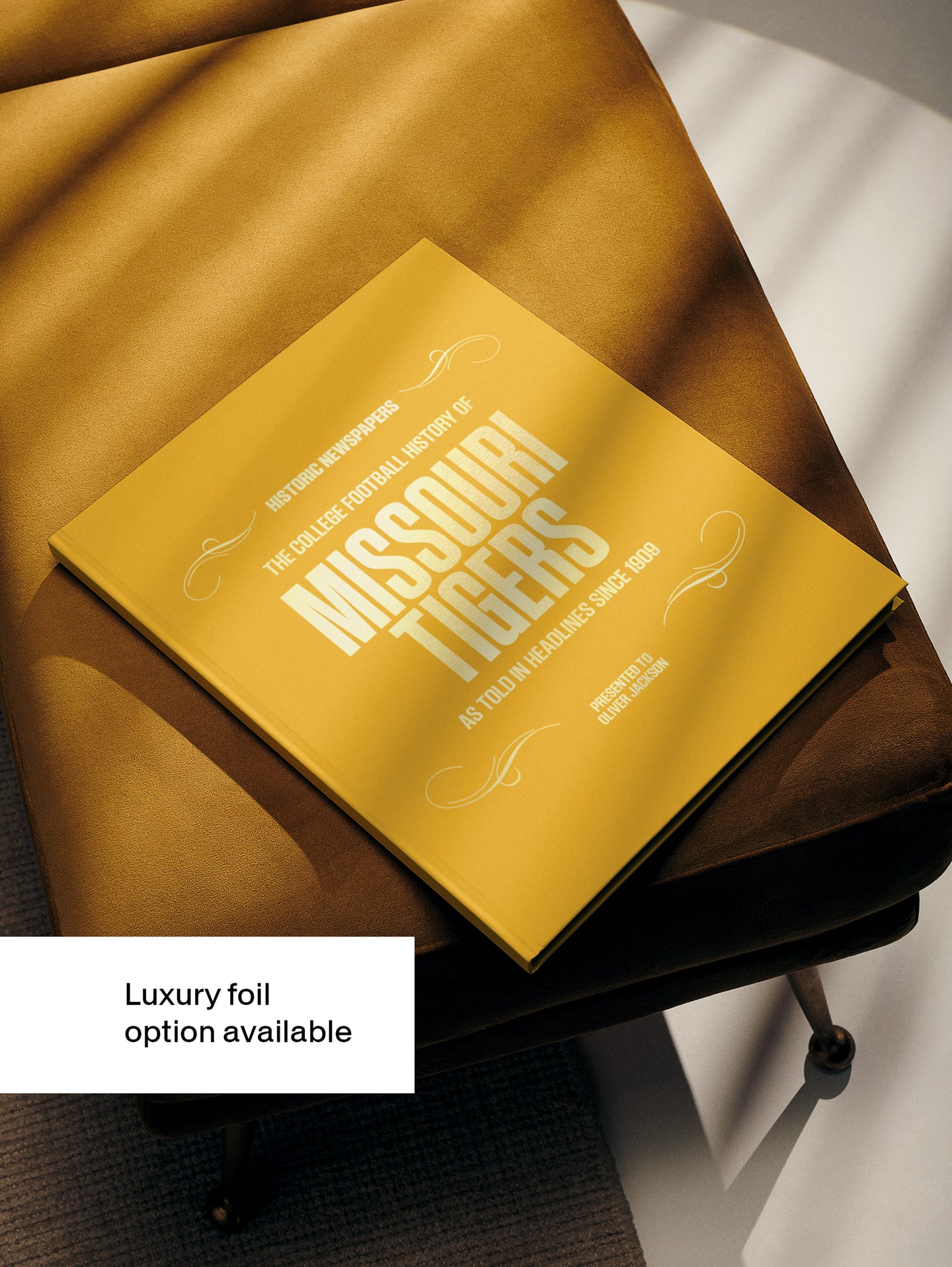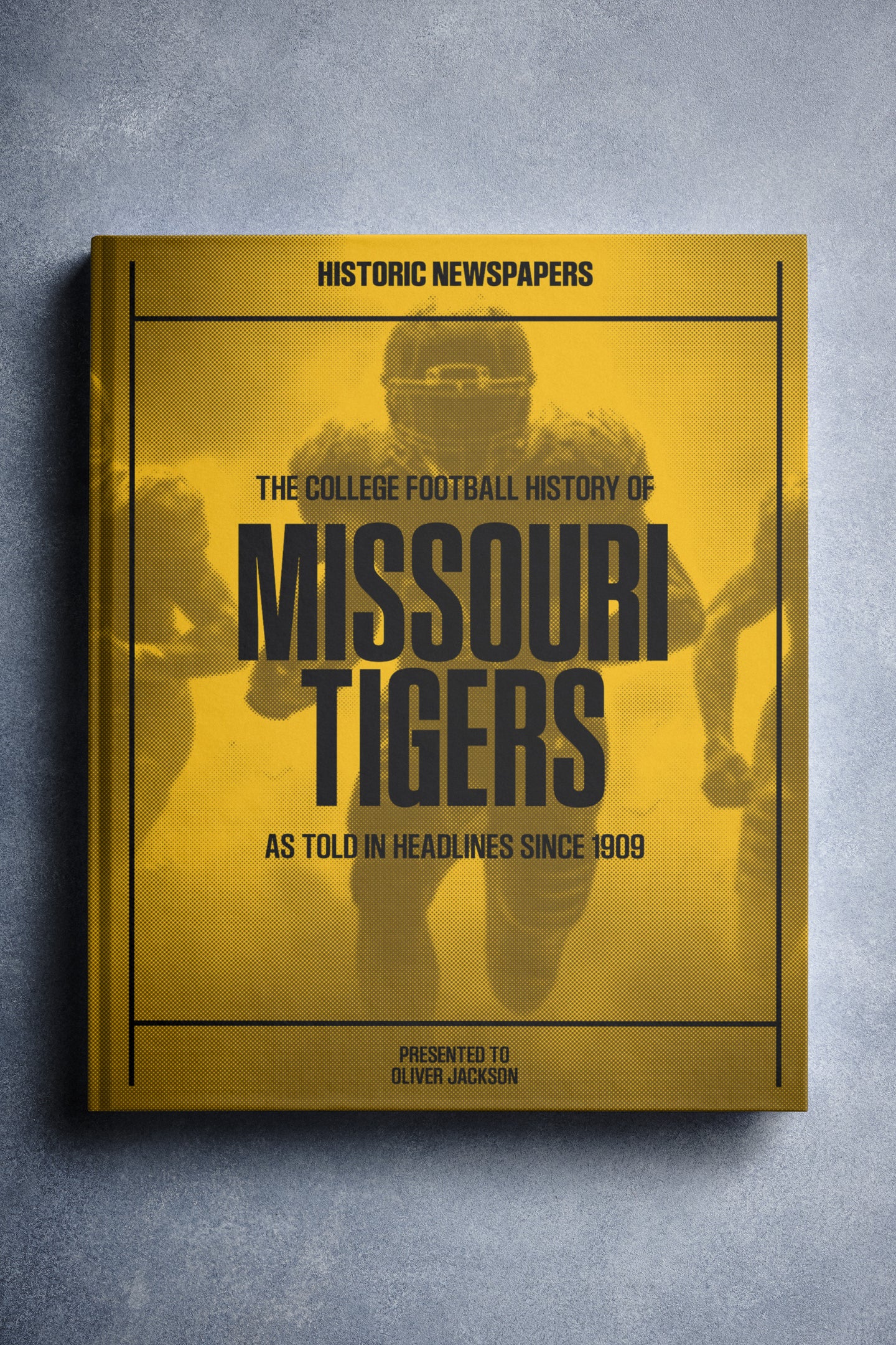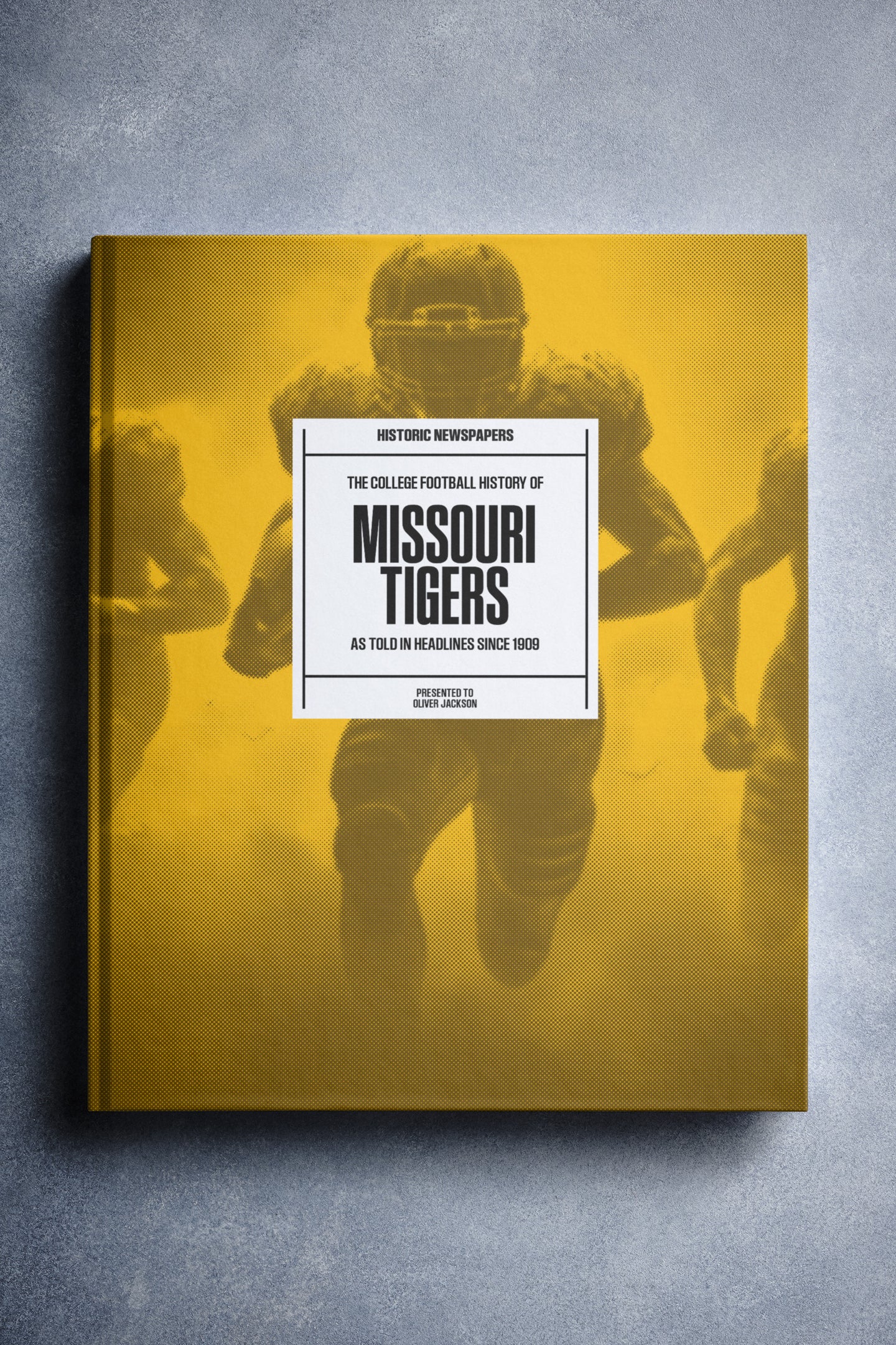 This coffee-table book features 150 pages of authentic newspaper reports about The History of the Missouri Tigers College Football Team. It comes with a choice of covers and the option to have the recipient’s name printed on the cover for free.