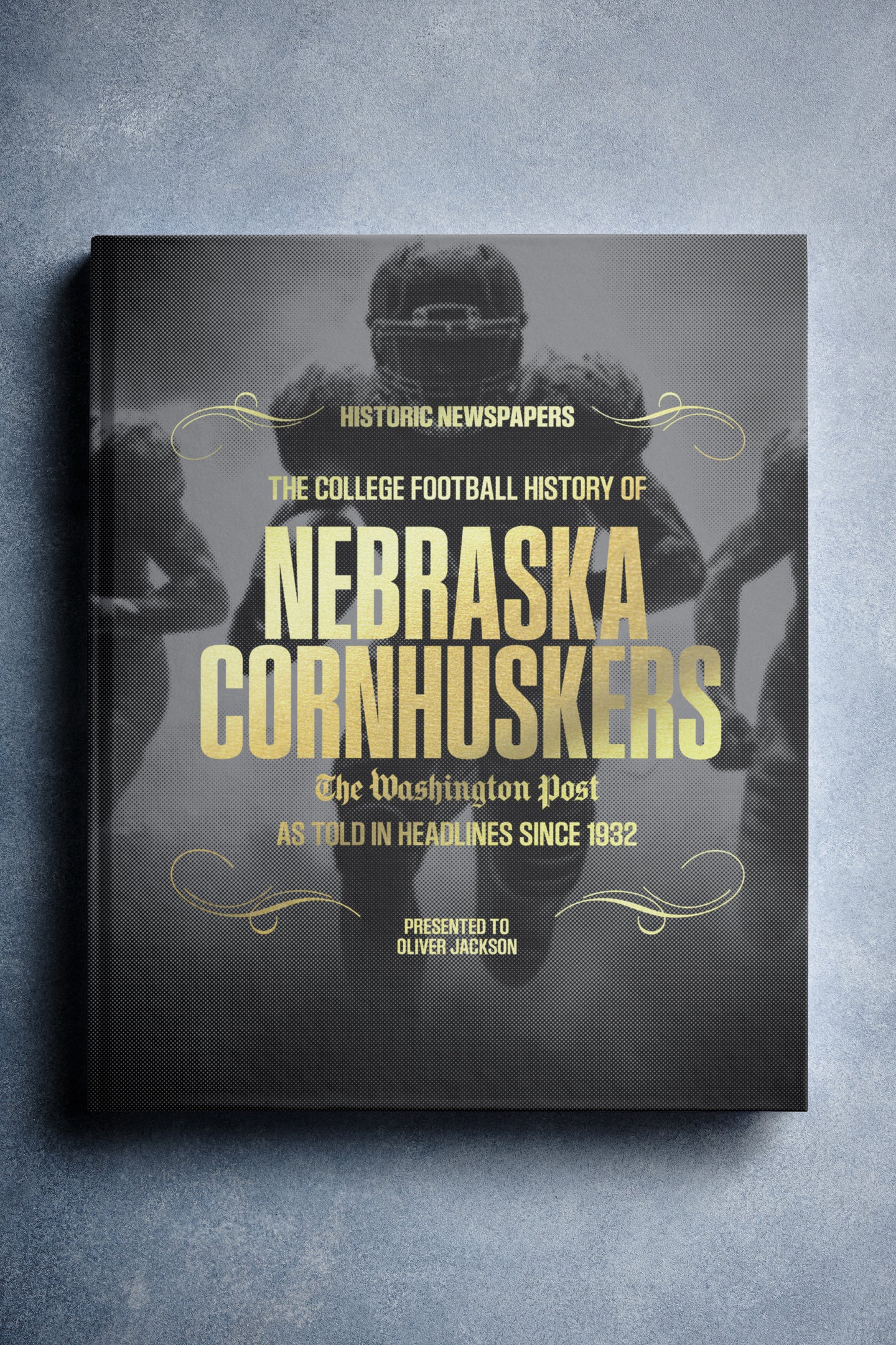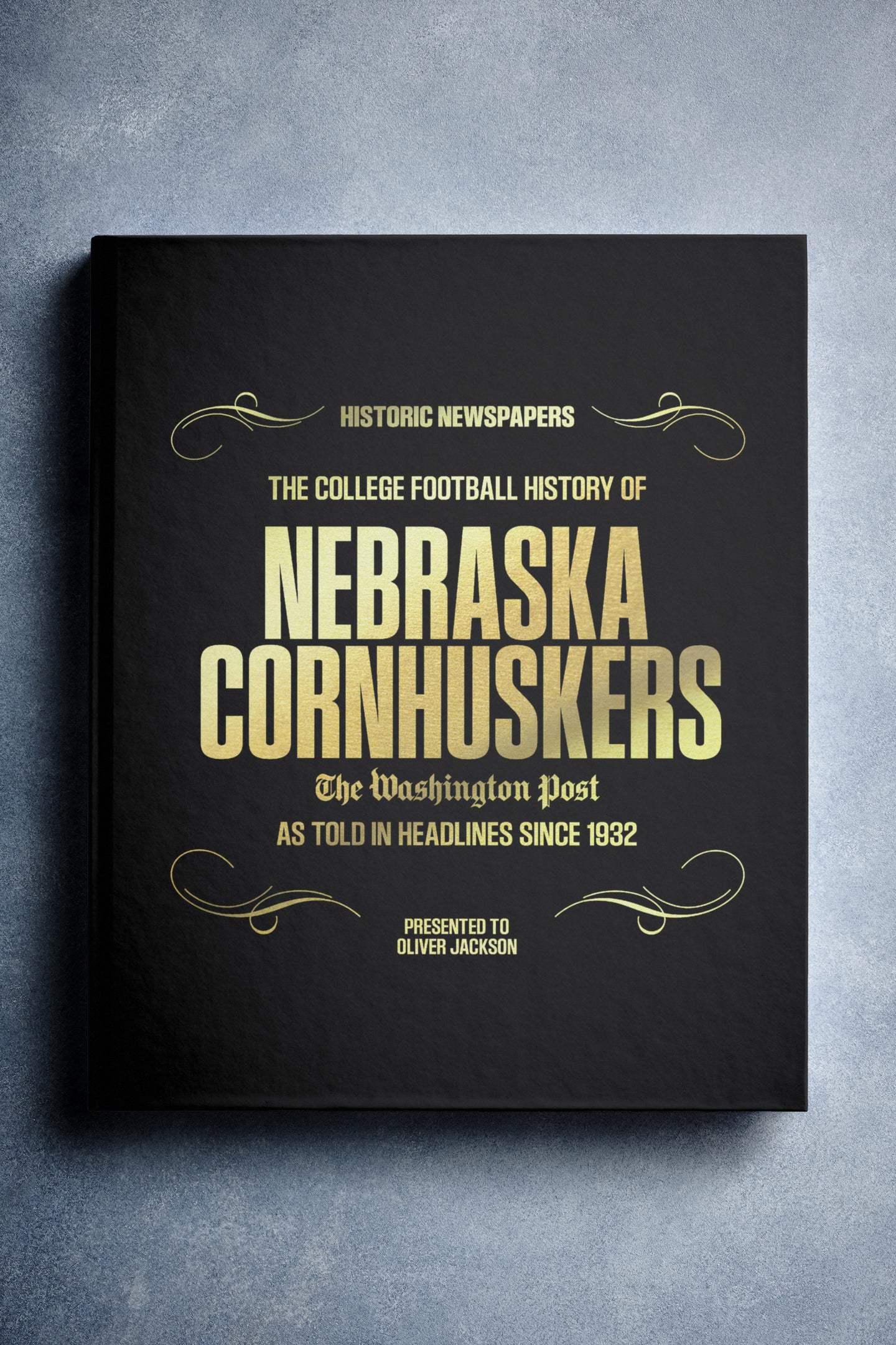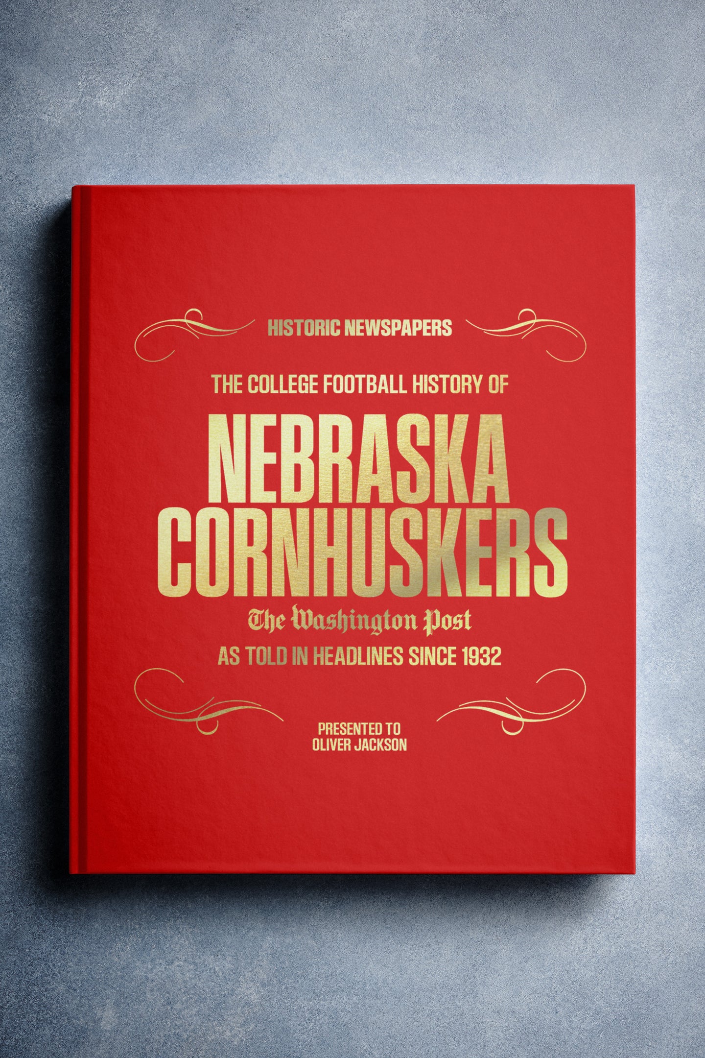 This coffee-table book features 160 pages of authentic Washington Post newspaper reports about The History of Nebraska Cornhuskers College Football. It comes with a choice of covers and the option to have the recipient’s name printed on the cover for free.