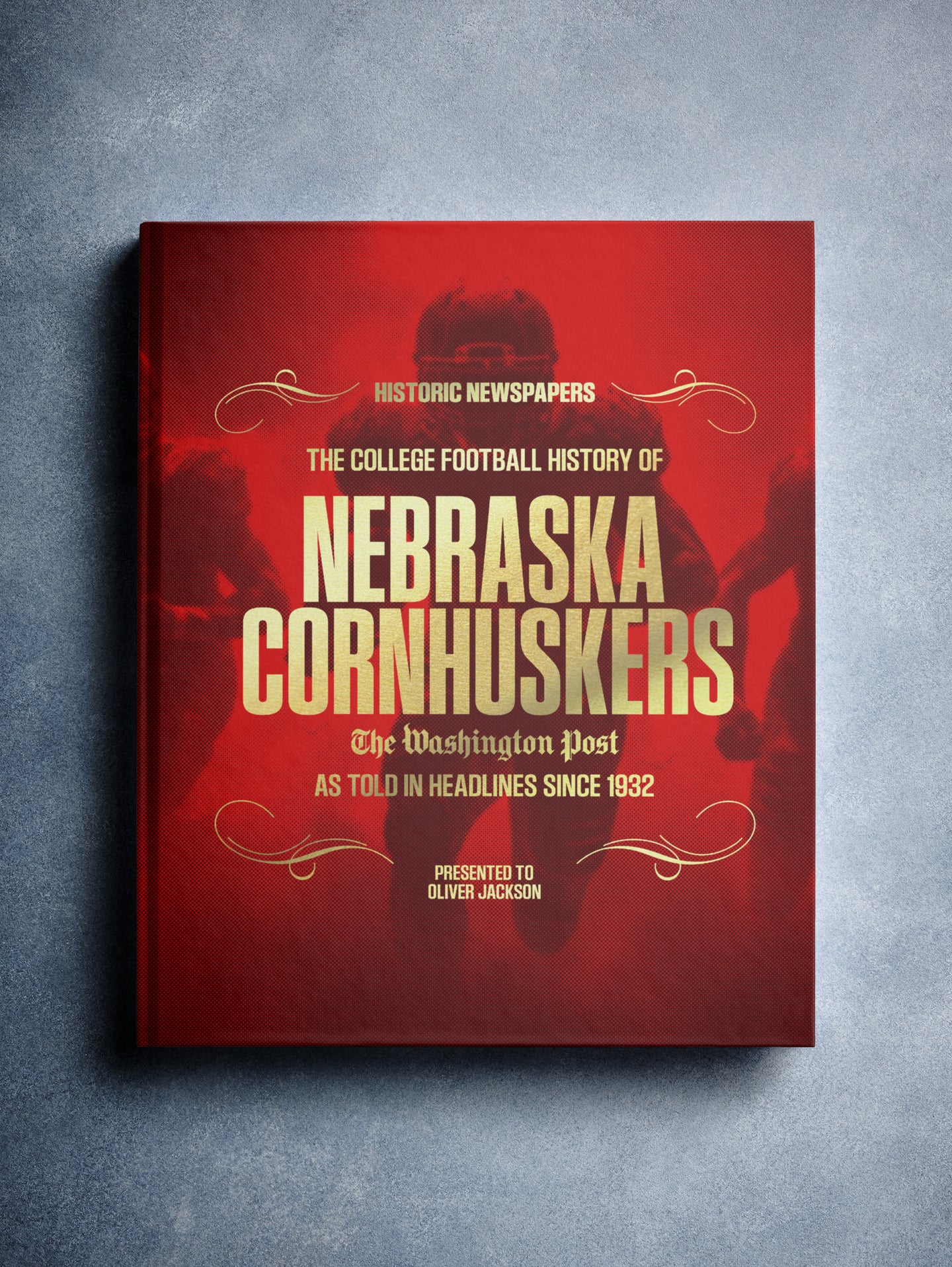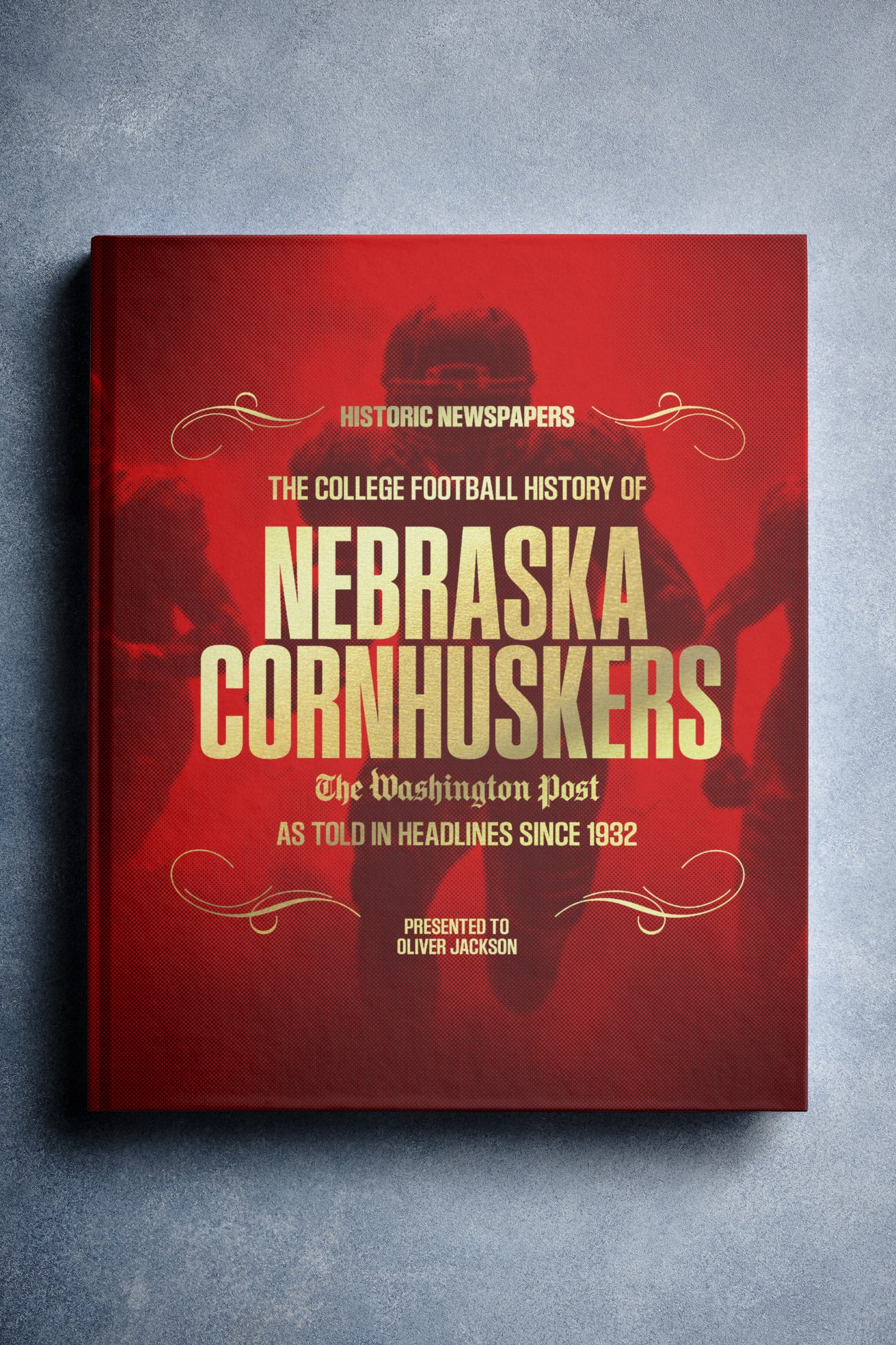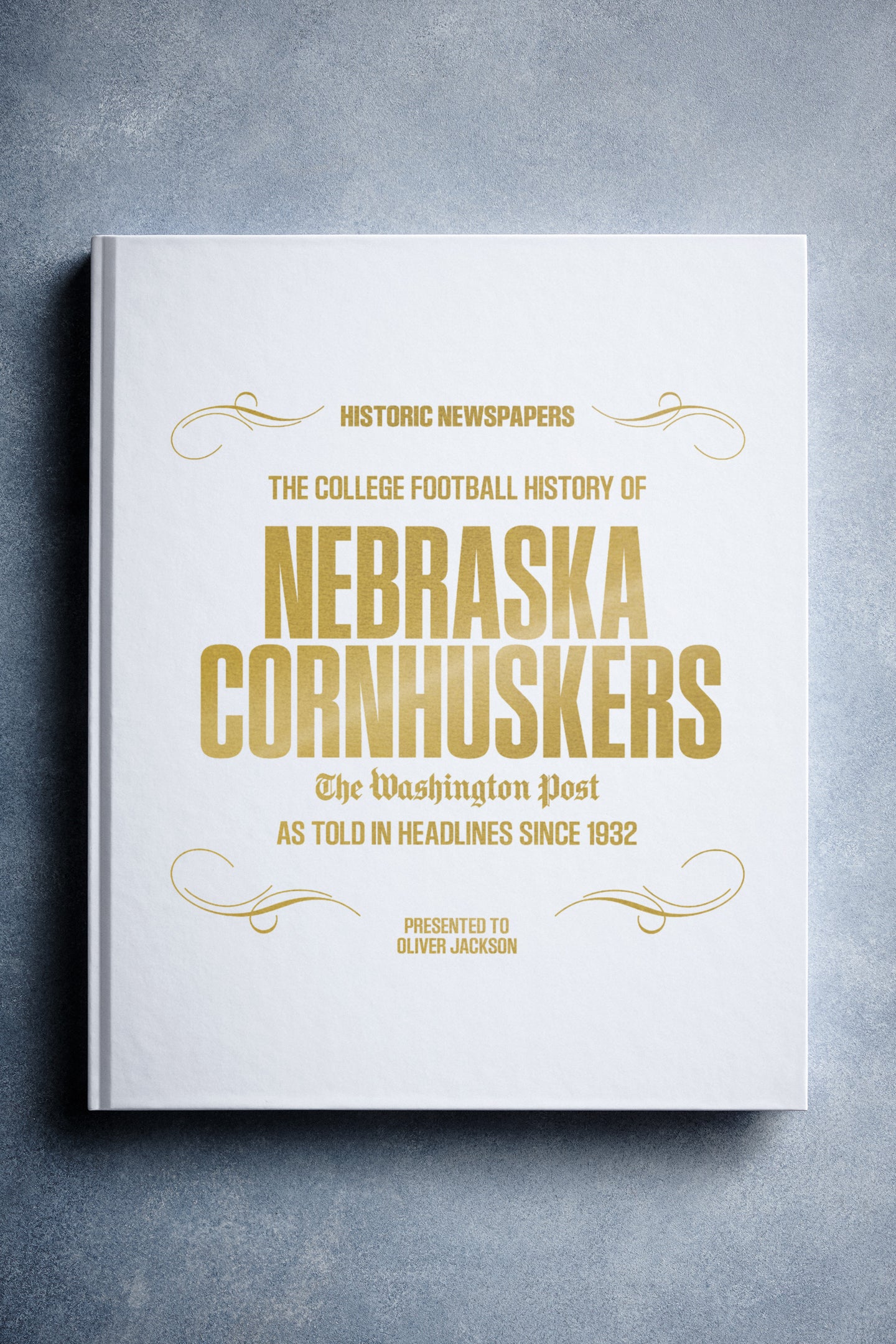 This coffee-table book features 160 pages of authentic Washington Post newspaper reports about The History of Nebraska Cornhuskers College Football. It comes with a choice of covers and the option to have the recipient’s name printed on the cover for free.