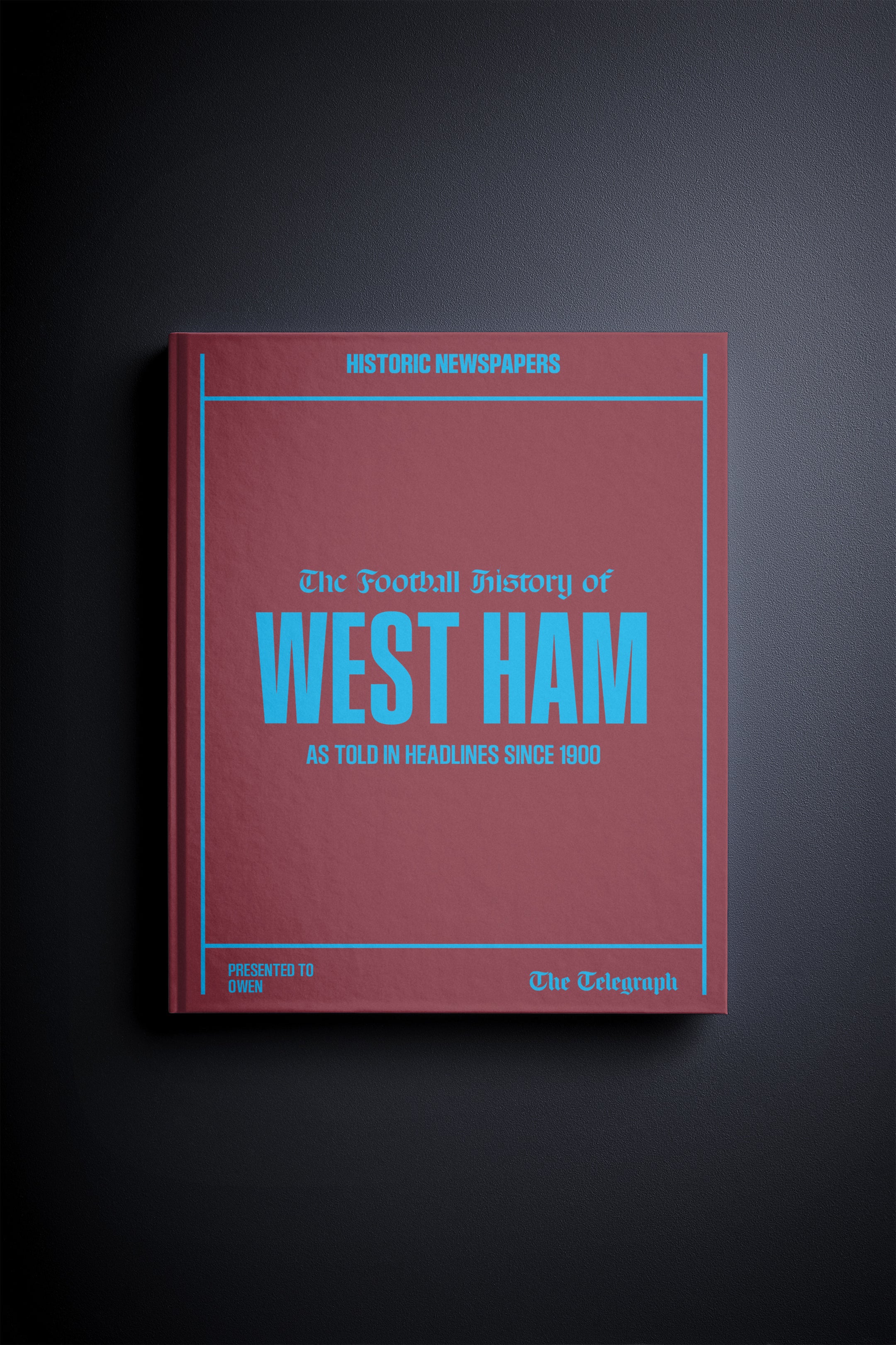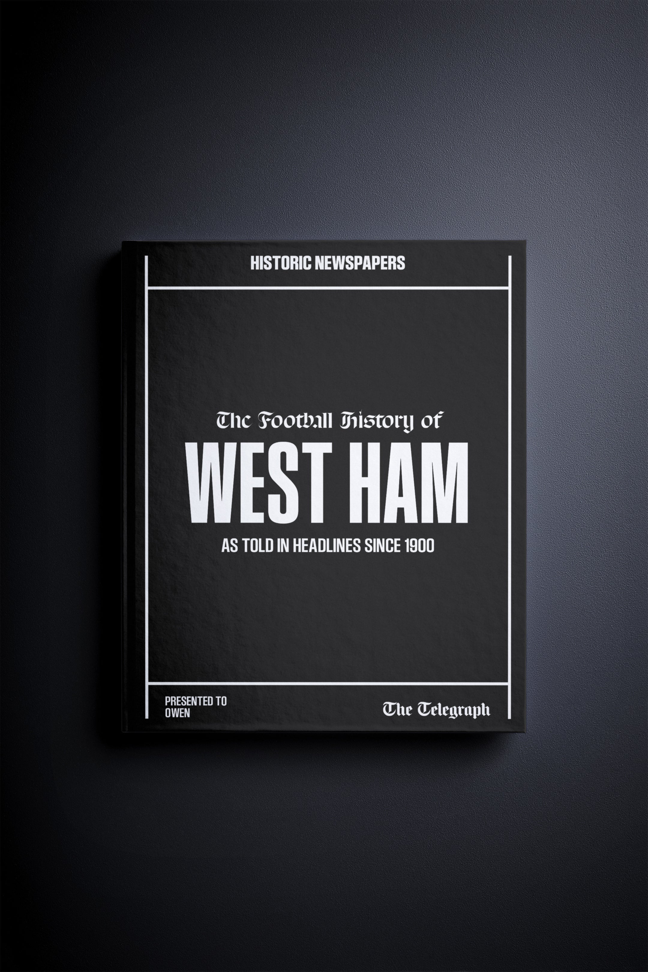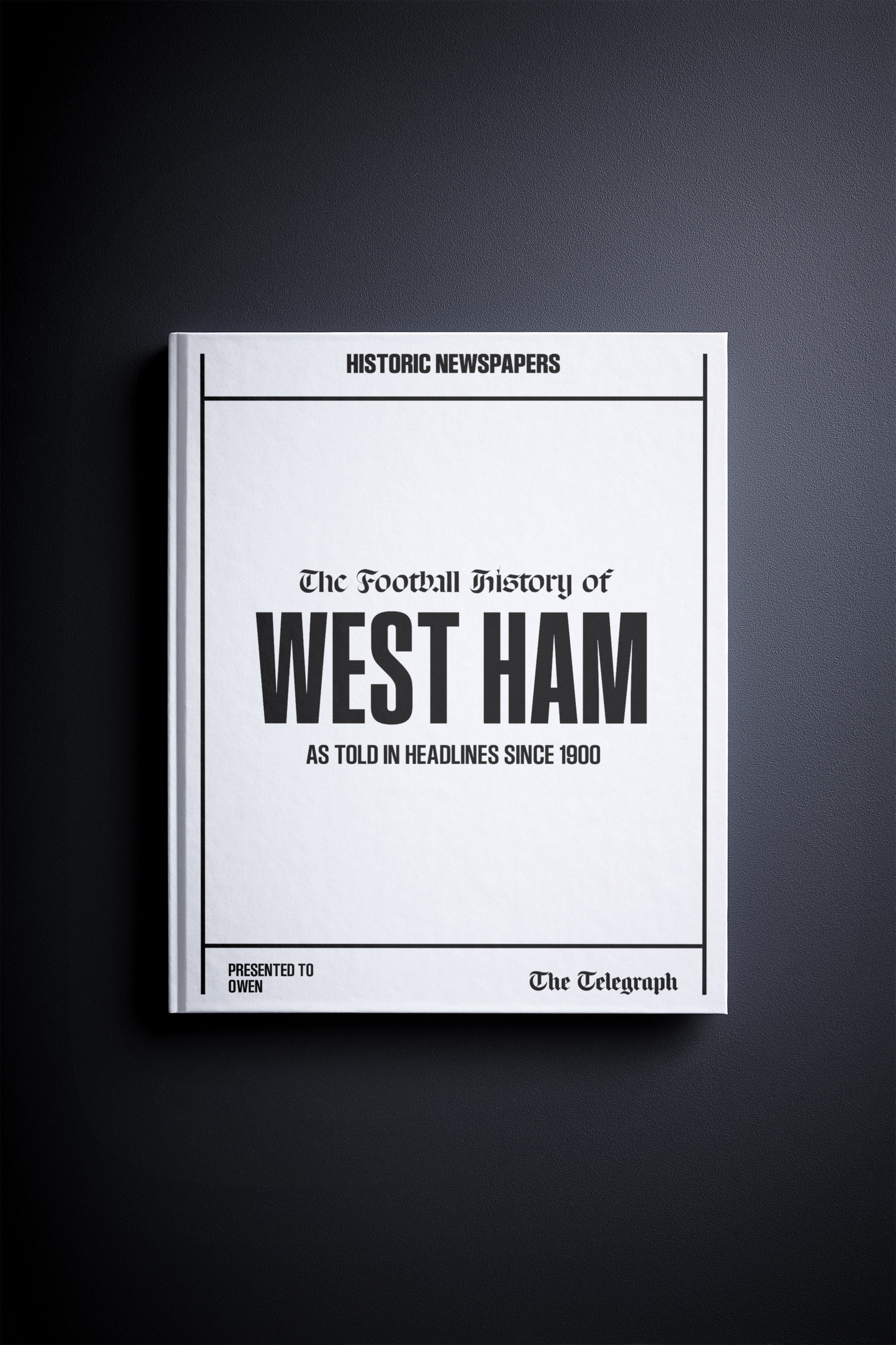 This personalised book features 150 pages of authentic Telegraph newspaper football reports about West Ham, from 1900 onwards. It comes with a choice of covers and the option to have the recipient’s name printed on the cover for free.