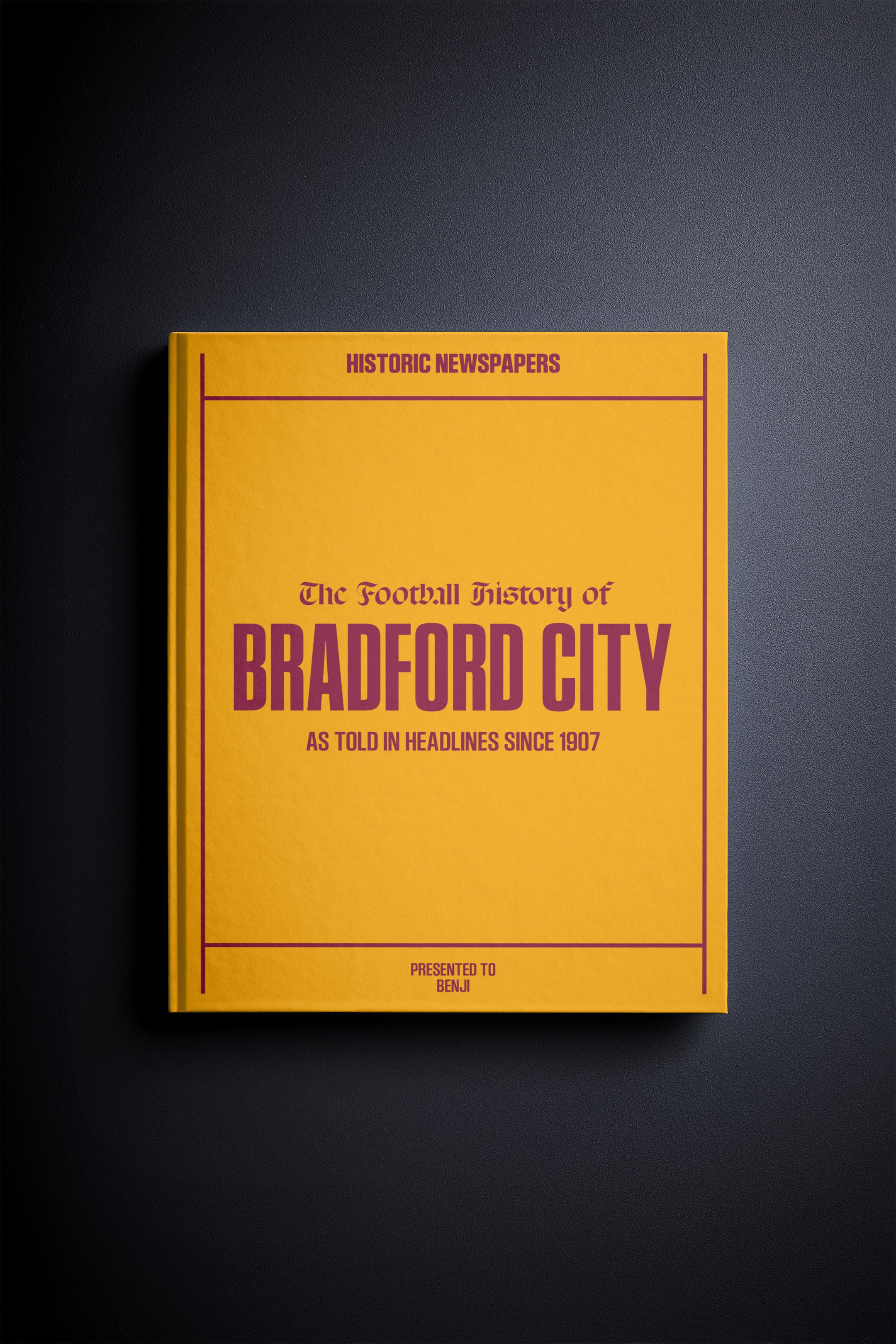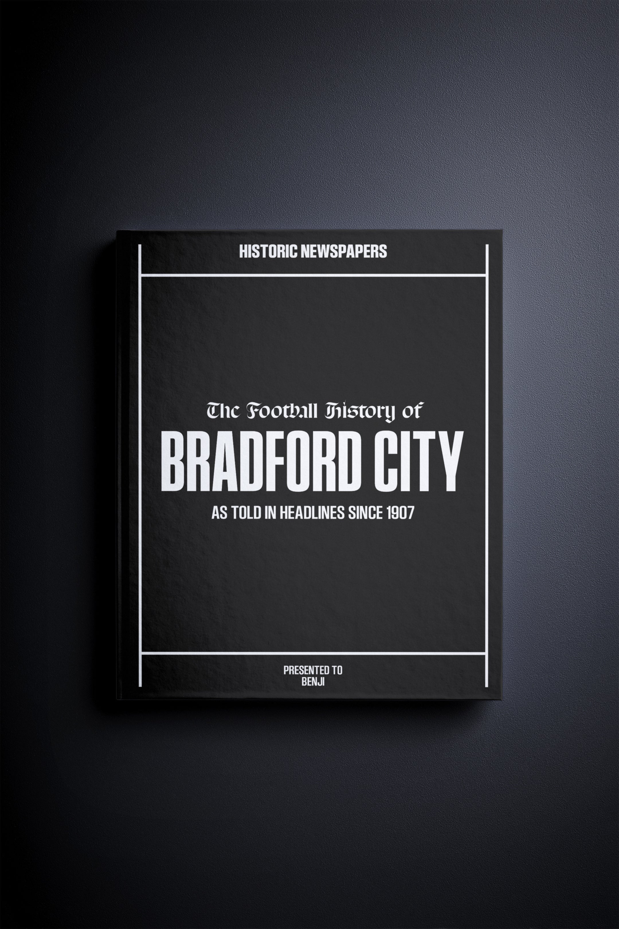 FOLLOW the story of Bradford City AFC from 1907 onwards, told through authentic newspaper reports. Relive The 1911 FA Cup Final victory at Old Trafford, the rise of the club, the Premier League years of 1999 – 2001 and more. Choose a cover and personalise your book with a name and message to create a unique gift.