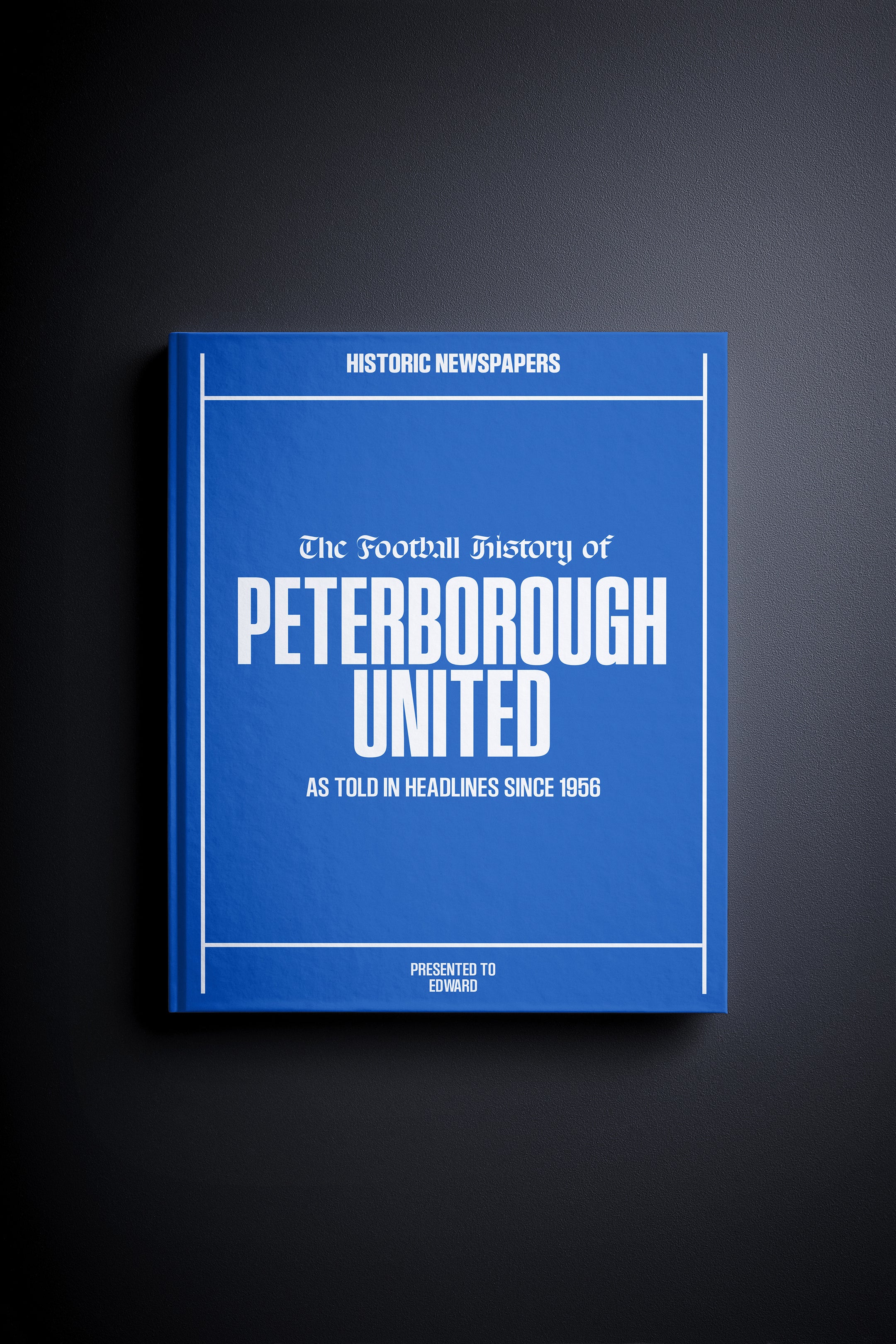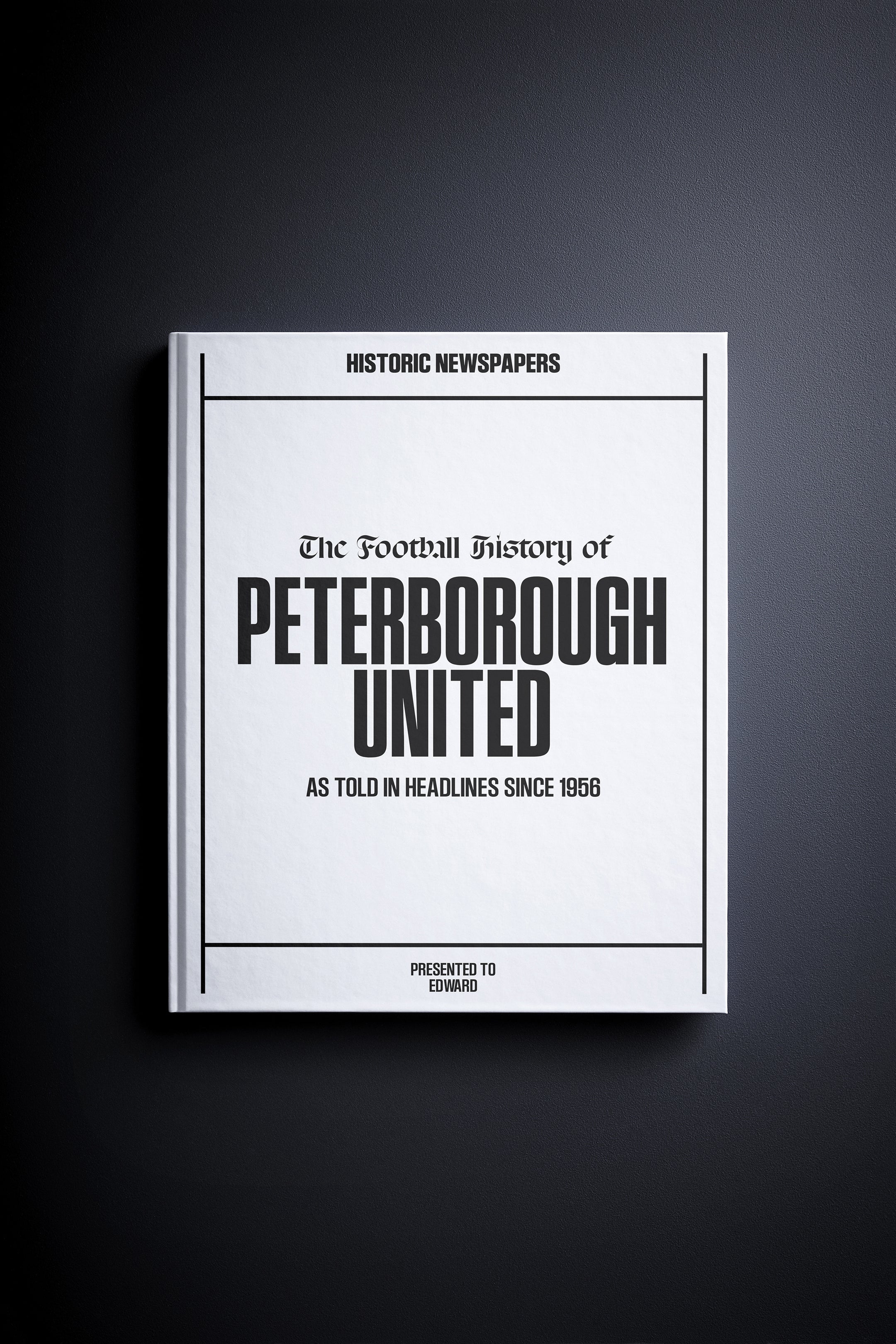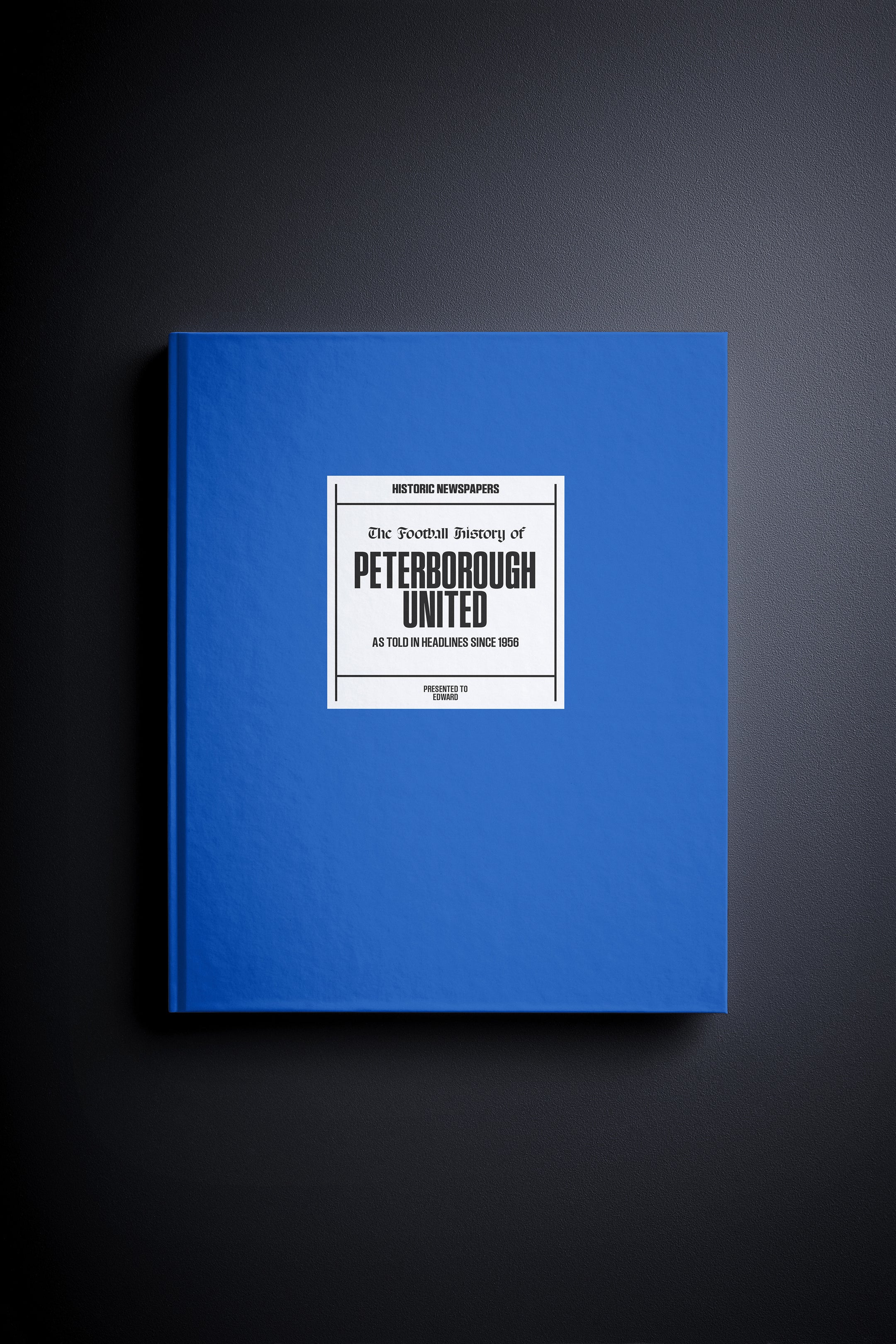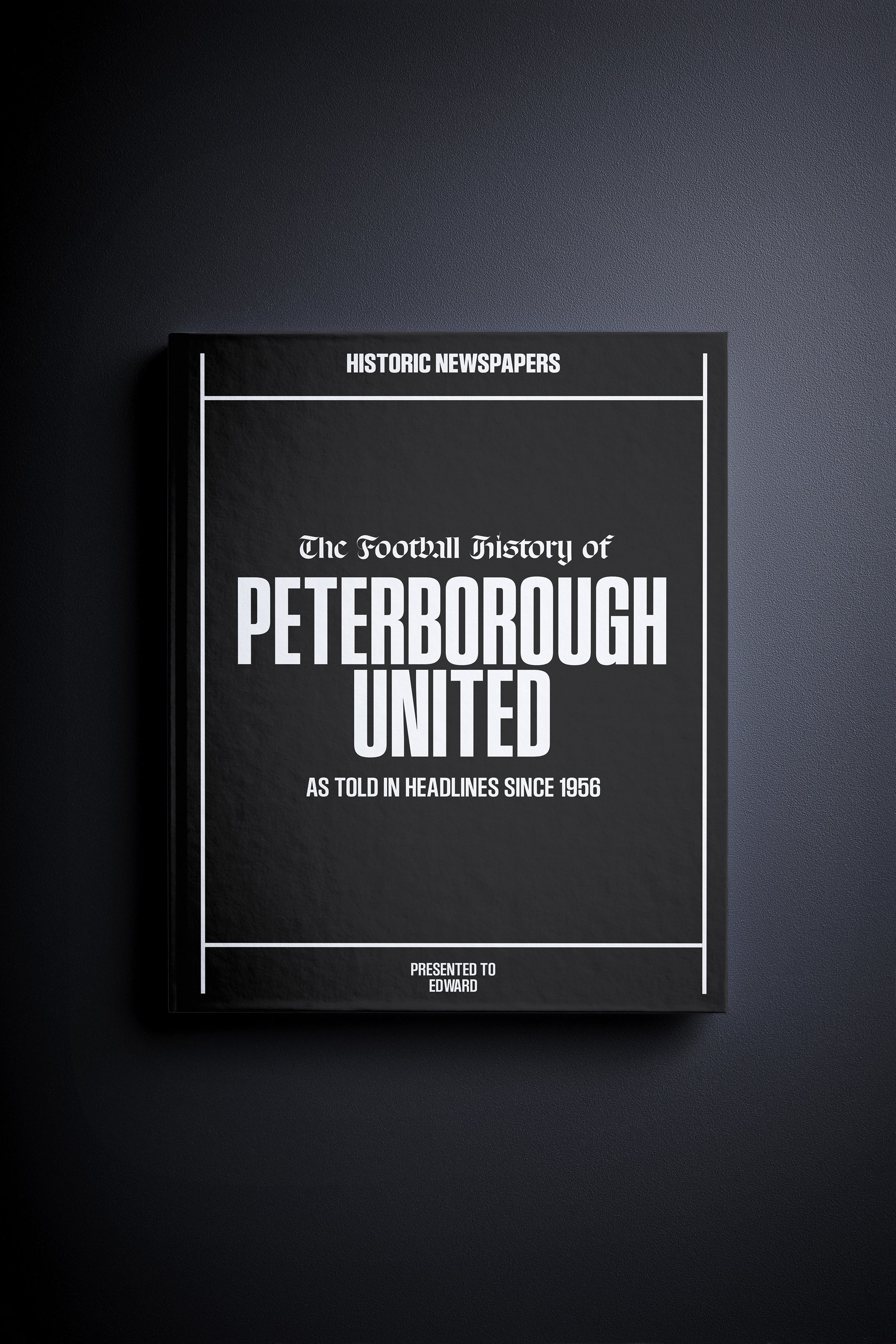 UPDATED to include the 2025 EFL Trophy win!! This personalised book features 138 pages of authentic newspaper football reports about Peterborough United, from 1956 onwards. It comes with a choice of covers and the option to have the recipient’s name printed on the cover for free.