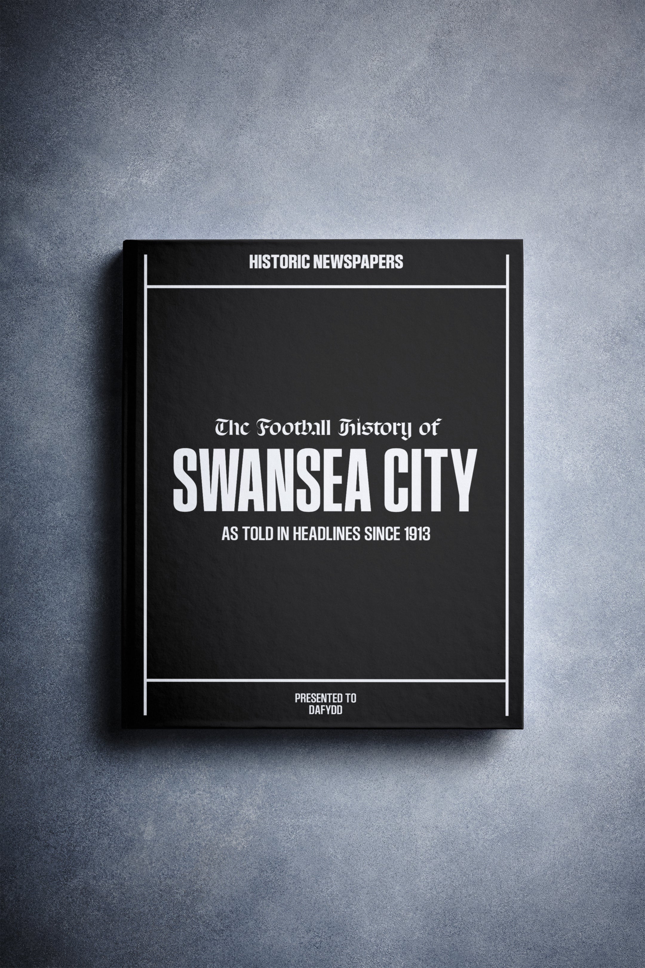 This personalised book features 140 pages of authentic newspaper football reports about Swansea City, from 1913 onwards. It comes with a choice of covers and the option to have the recipient’s name printed on the cover for free.