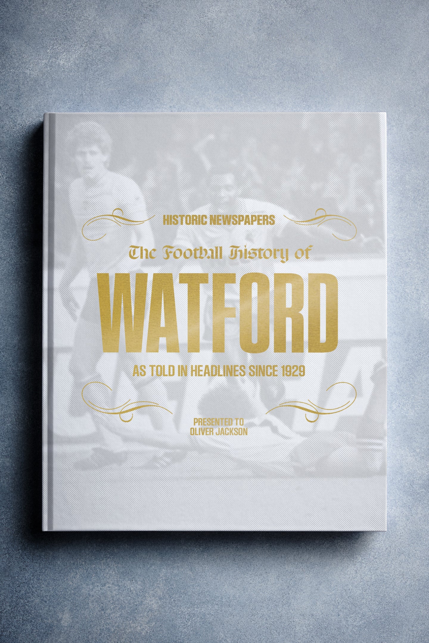 This personalised book features 140 pages of authentic newspaper football reports about Watford, from 1929 onwards. It comes with a choice of covers and the option to have the recipient’s name printed on the cover for free.