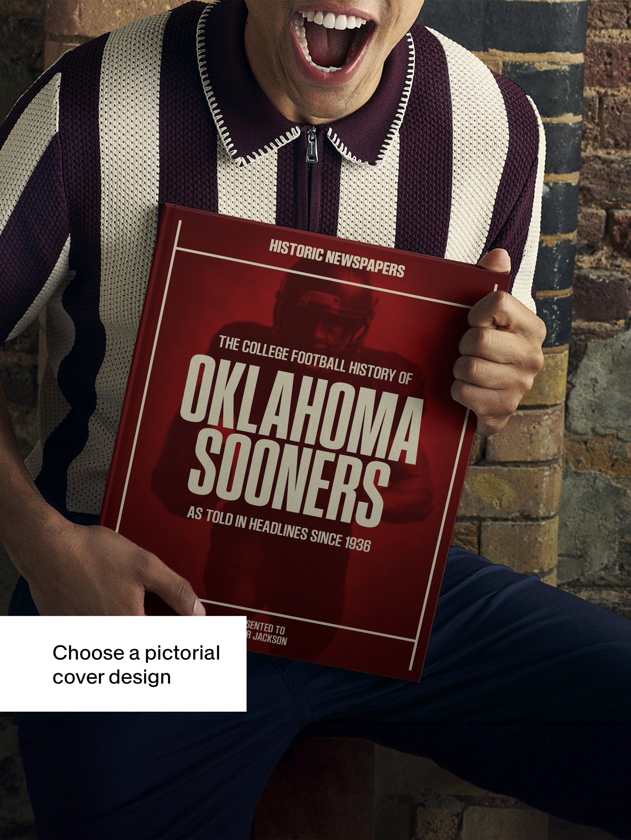 This coffee-table book features over 160 pages of authentic Oklahoman newspaper reports about The History of College Football. It comes with a choice of covers and the option to have the recipient’s name printed on the cover for free.