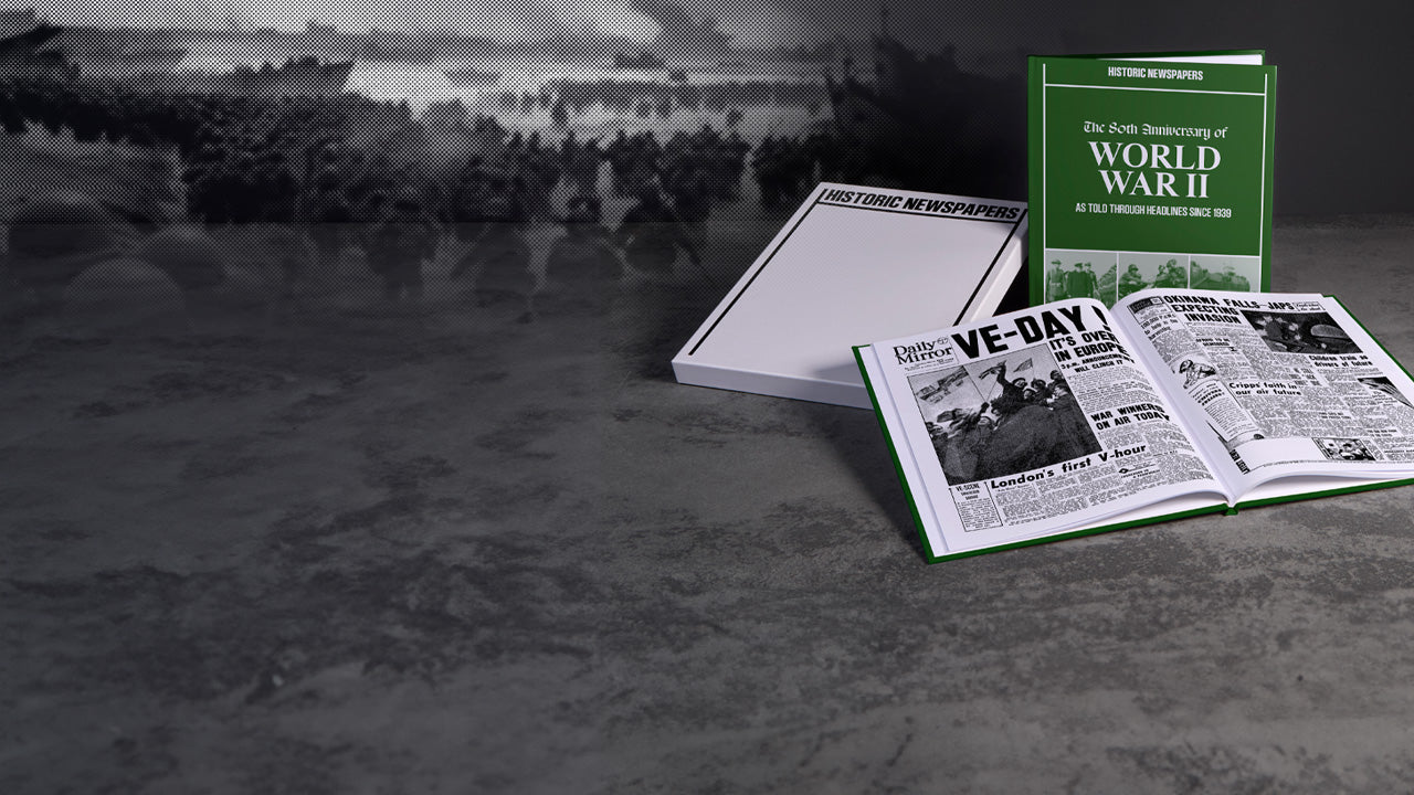 AT HISTORIC NEWSPAPERS, browse our shelves for authentic newspapers from decades past and personalised gift books featuring curated headlines that capture defining moments in history, culture, sports, and more.
