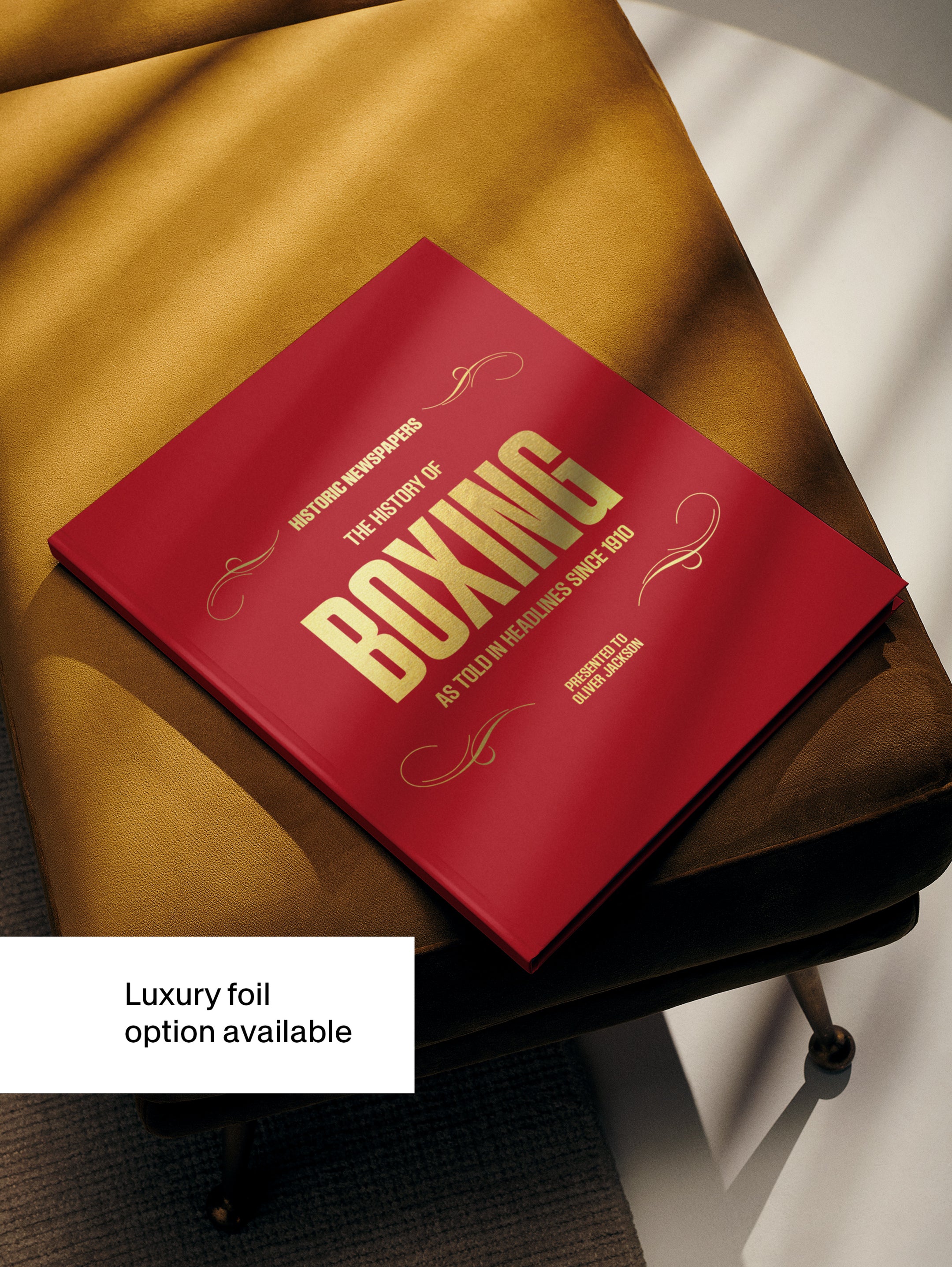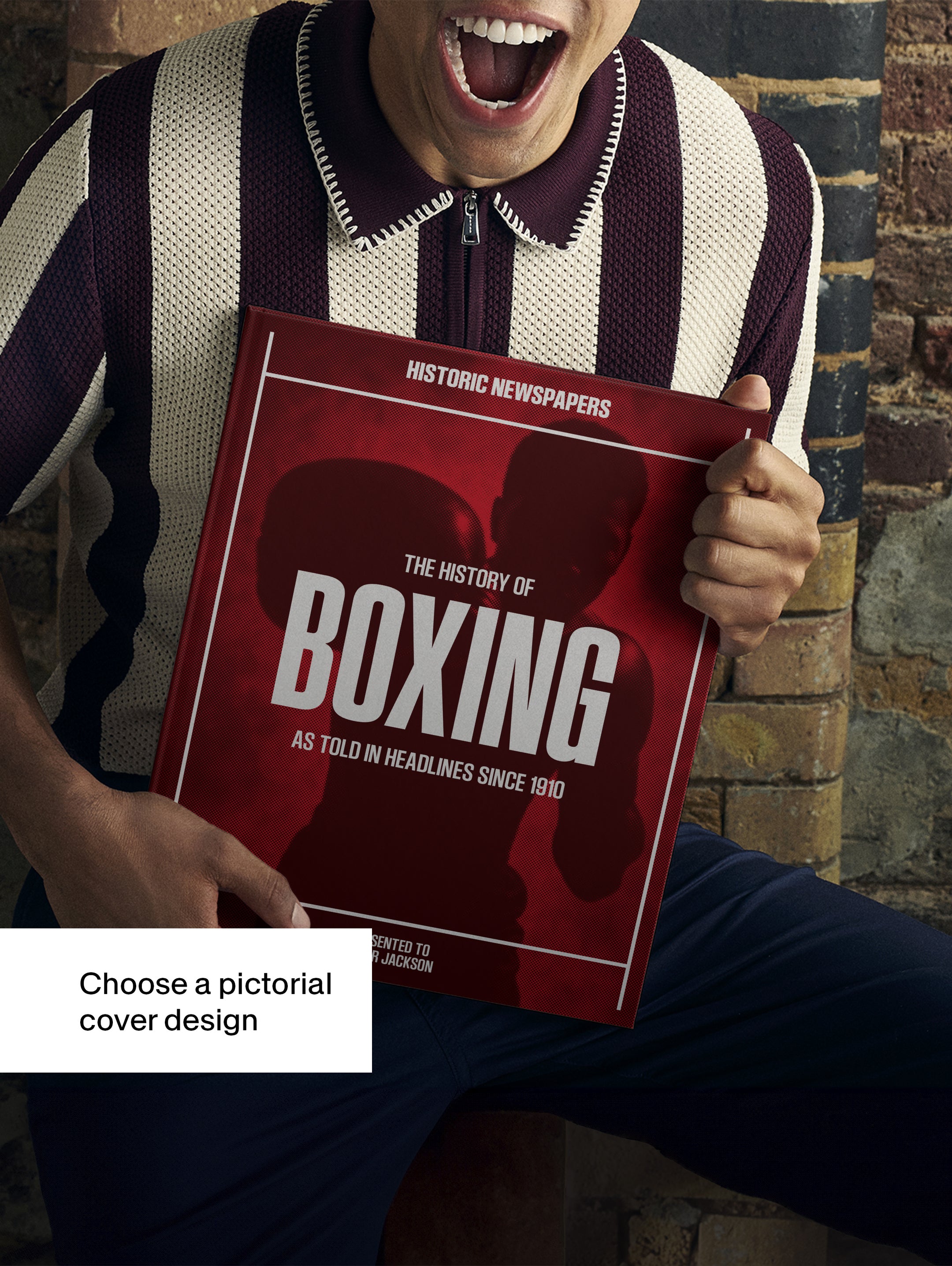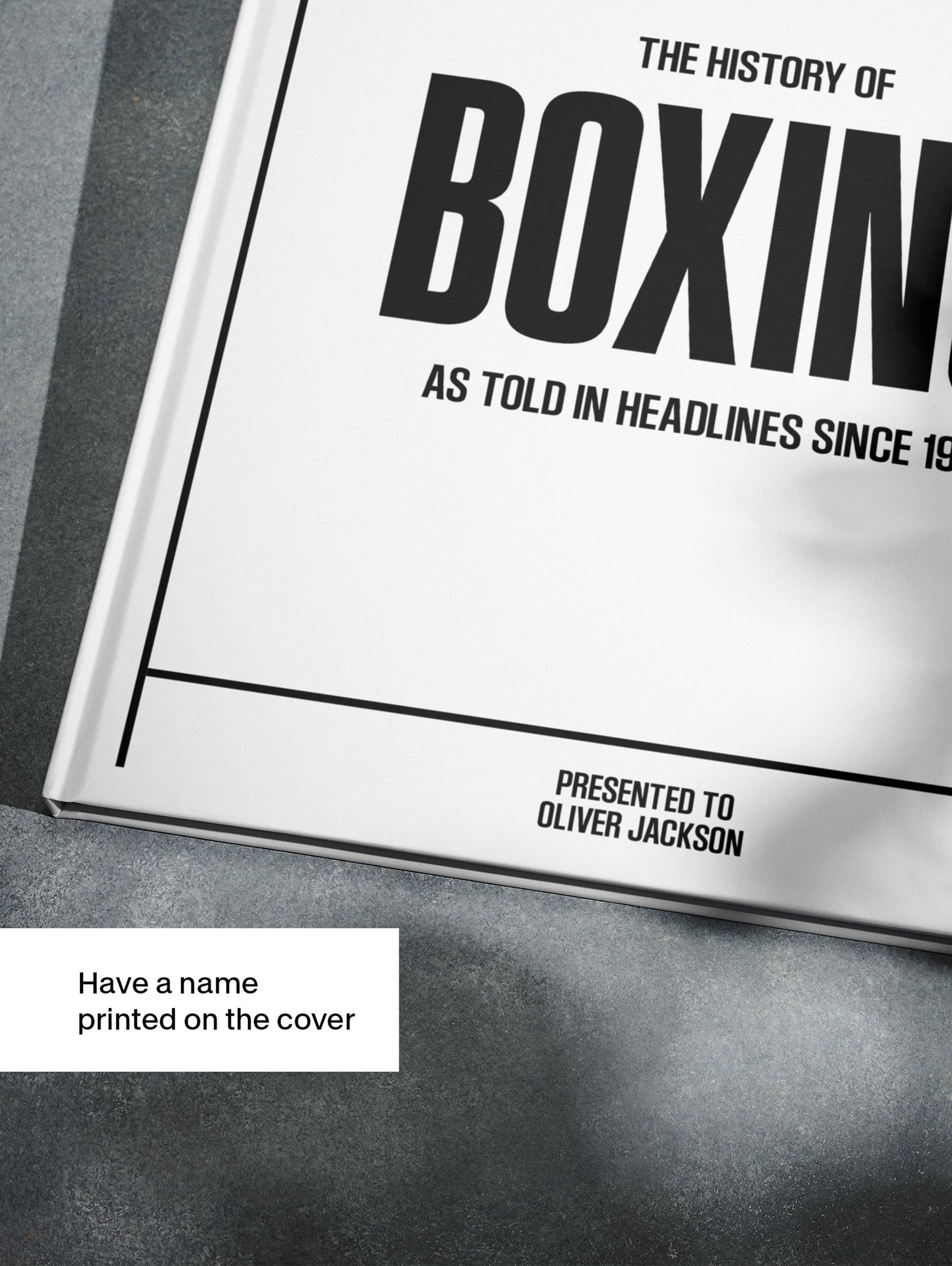 FOLLOW the story of Boxing from 1910, told through original newspaper reports. Relive the golden era of Clay / Ali, Frazier, and Foreman to the thrilling reigns of Tyson, Lewis, and Holyfield and the greatest championship bouts. Choose a cover and personalise your book with a name and message to create a unique gift.