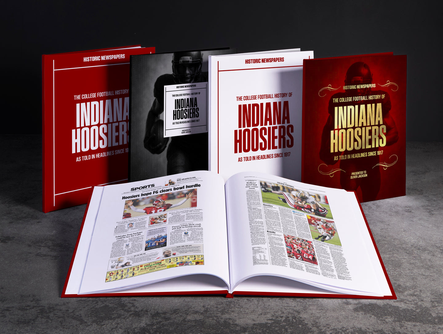 This coffee-table book features 150+ pages of authentic newspaper reports about The History of the Indiana Hoosiers College Football Team. It comes with a choice of covers and the option to have the recipient’s name printed on the cover for free.