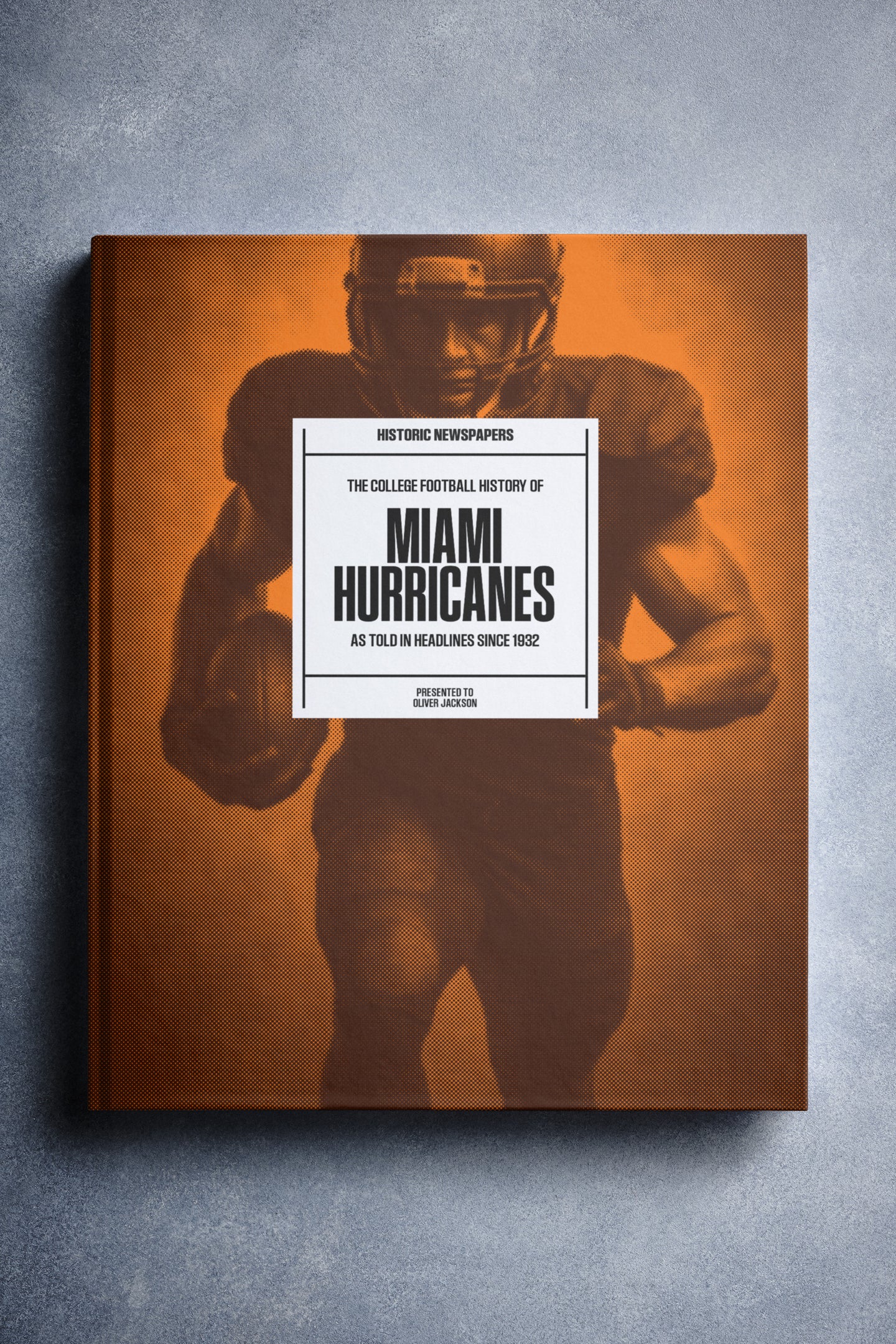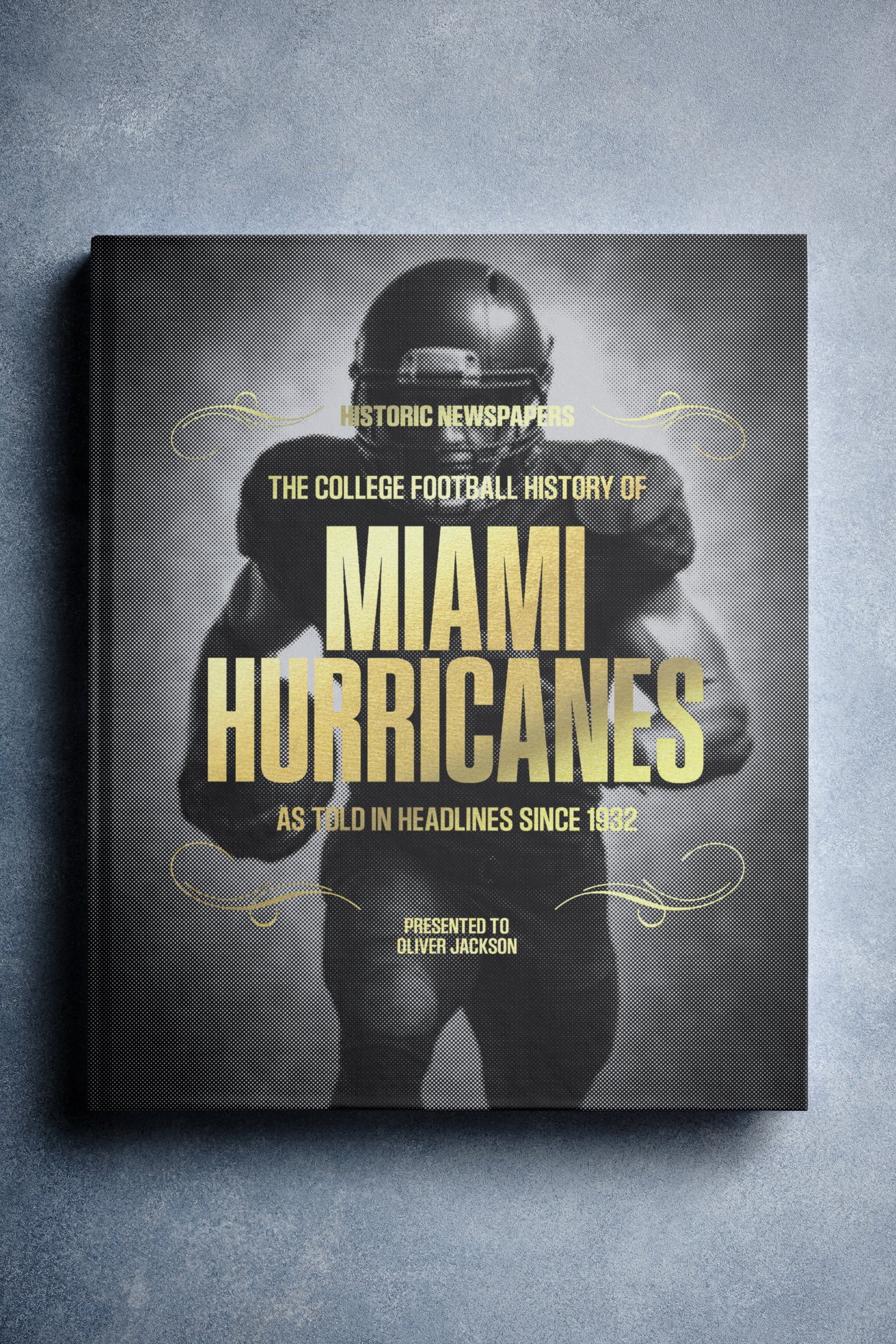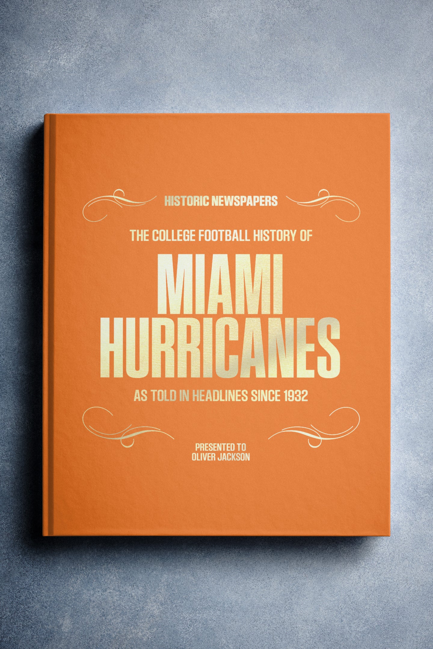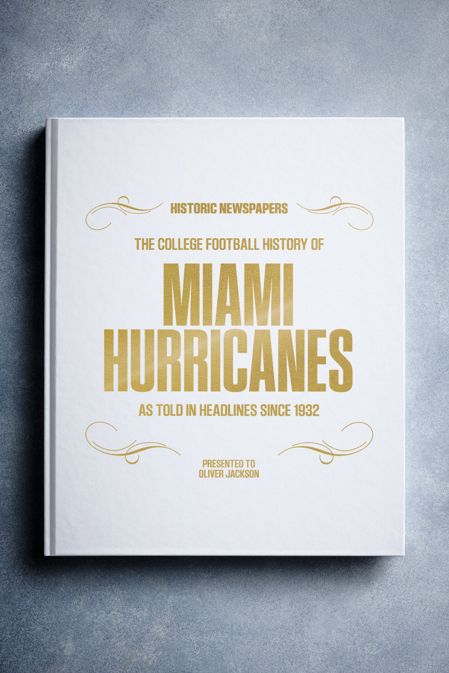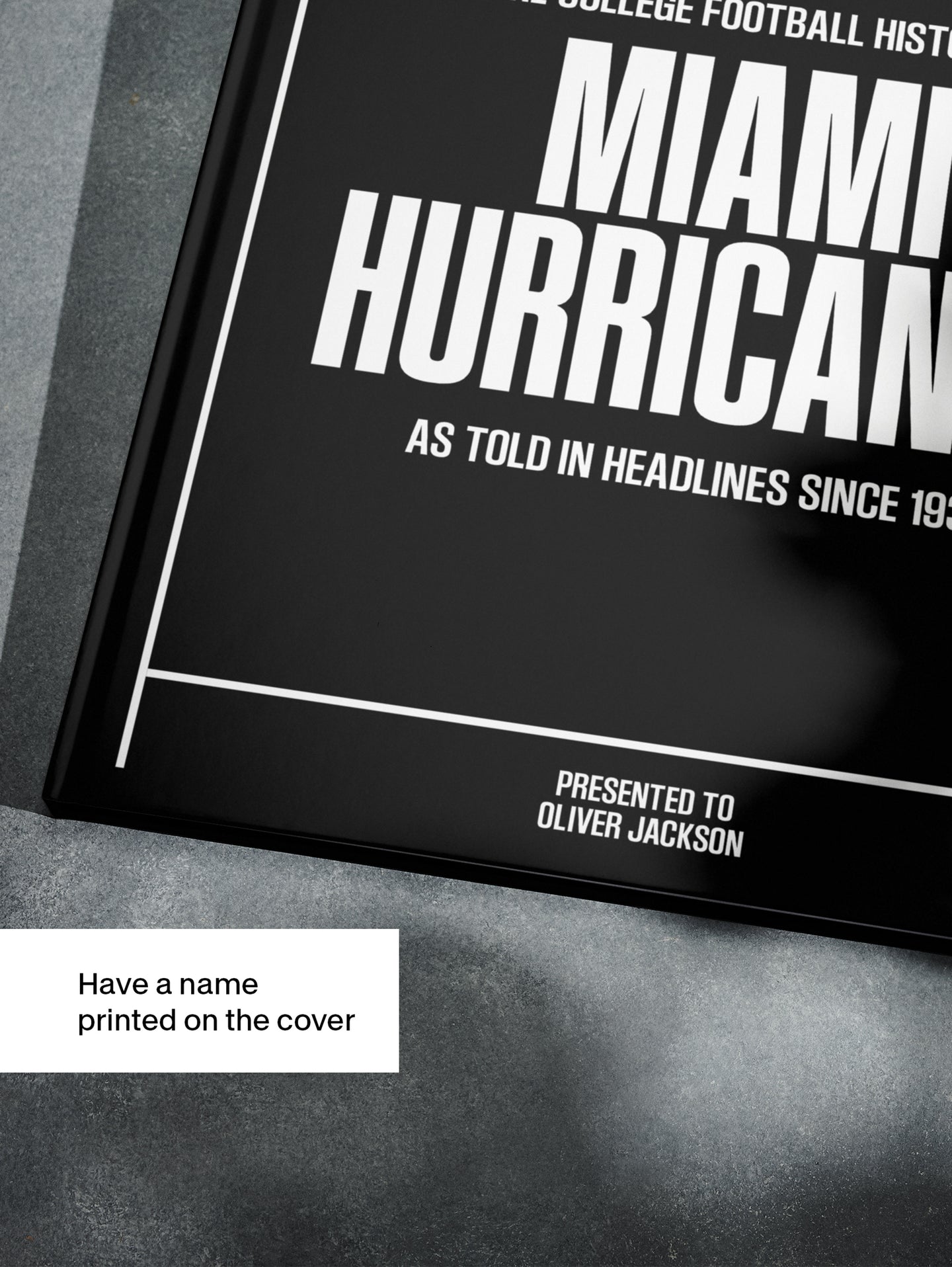FOLLOW the story of the Miami Hurricanes from 1932 onwards, told through original newspaper reports. Relive historic moments — from the first national title in 1983, to the 1987 ‘Catholics vs. Convicts’ Game vs. Notre Dame, and the Perfect Season in 2001 loaded with future NFL stars. Choose from a range of book covers and personalise your book with a name and message to create a lasting keepsake. A piece of Us history to gift, share, and relive.