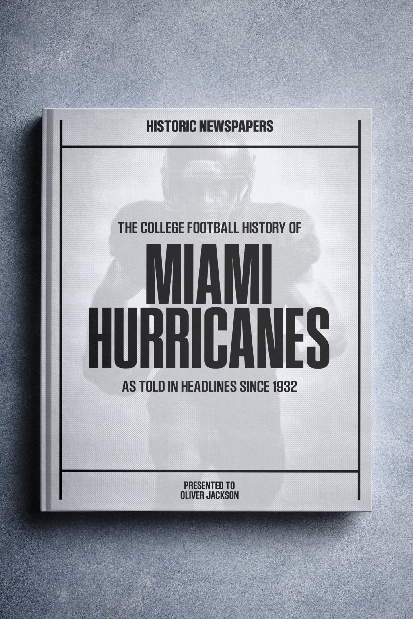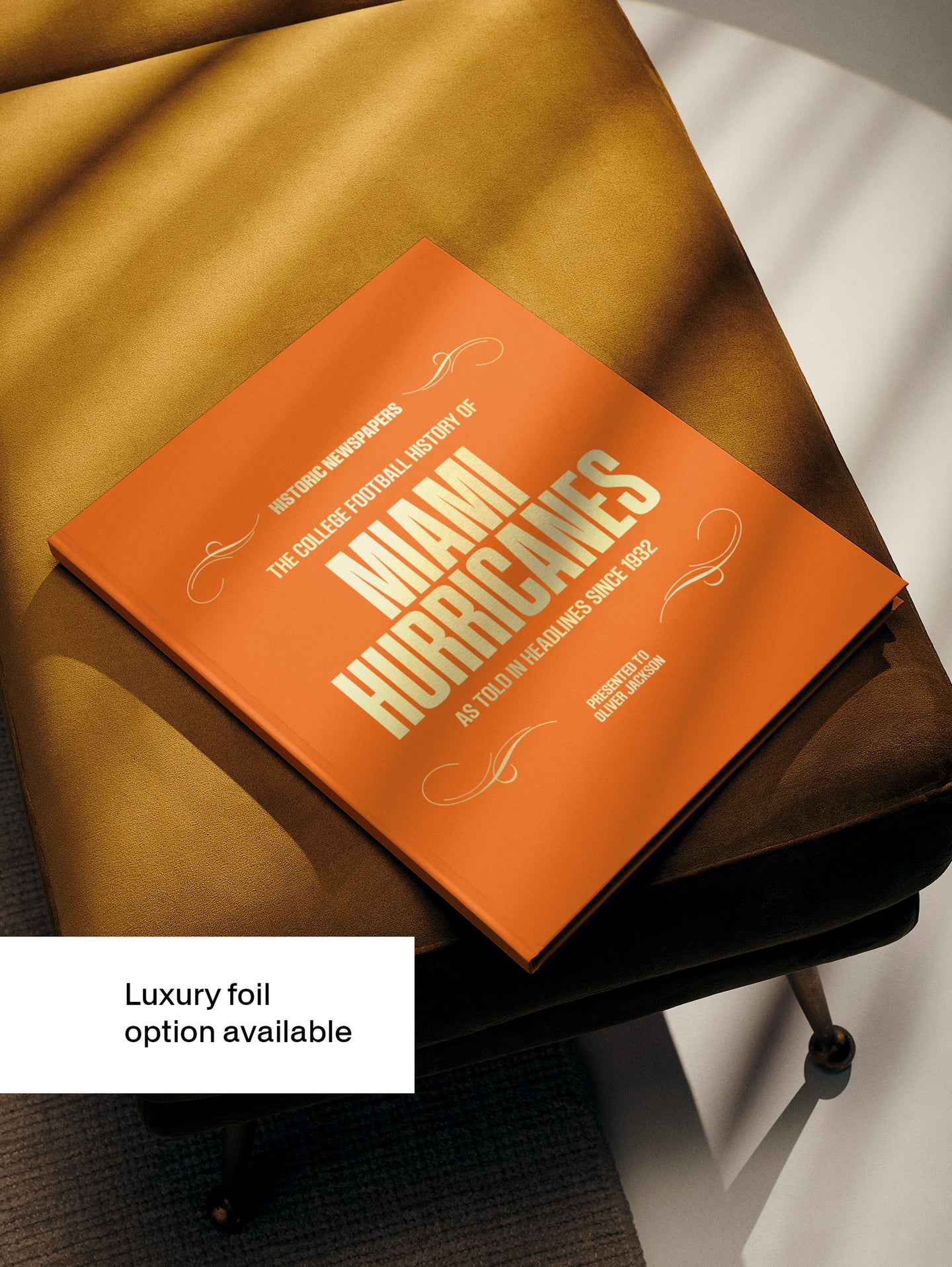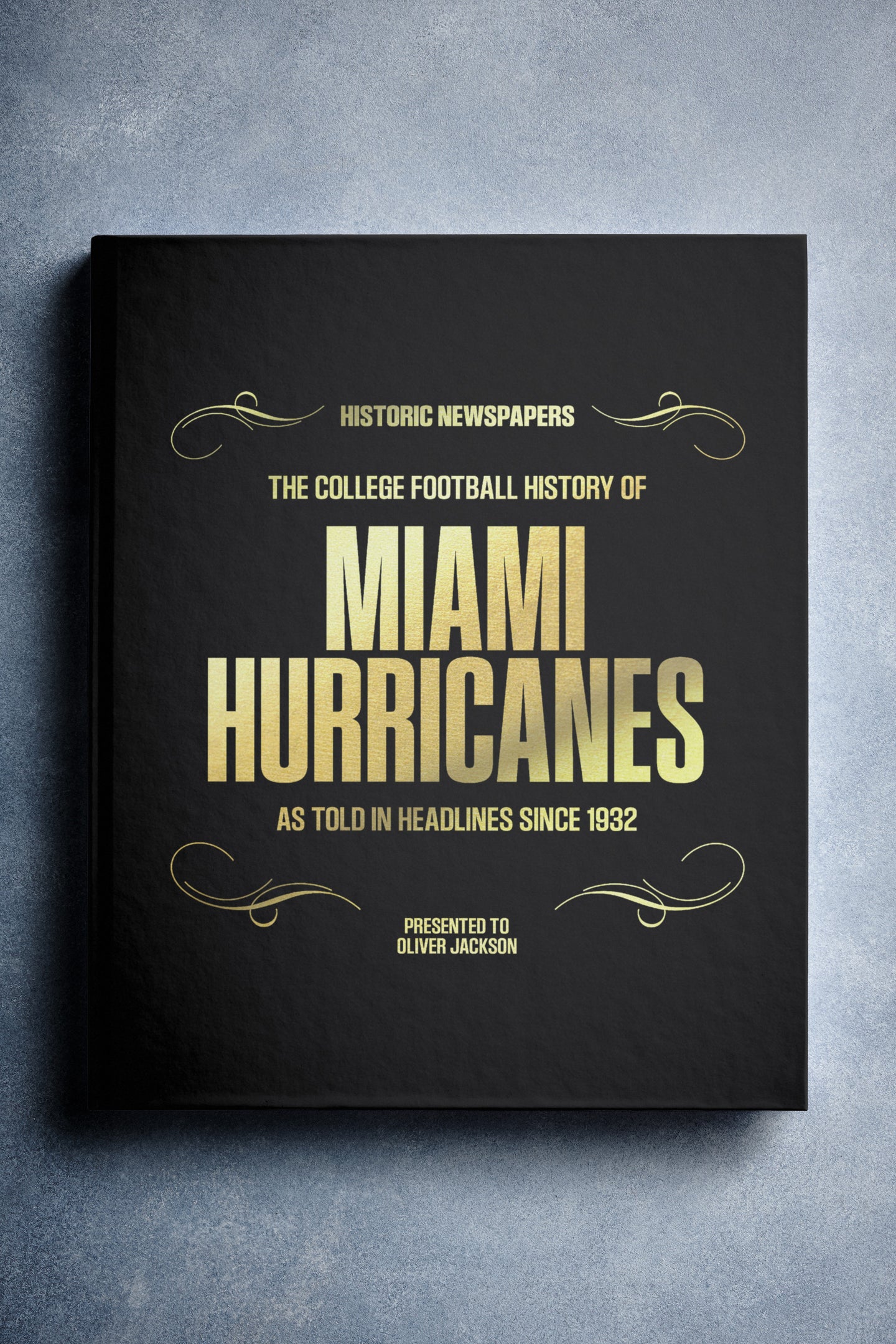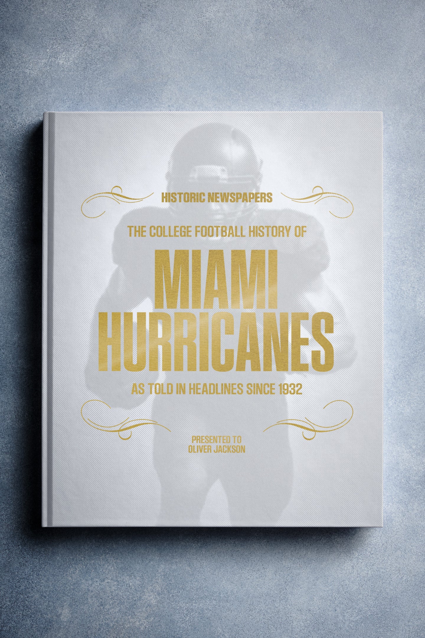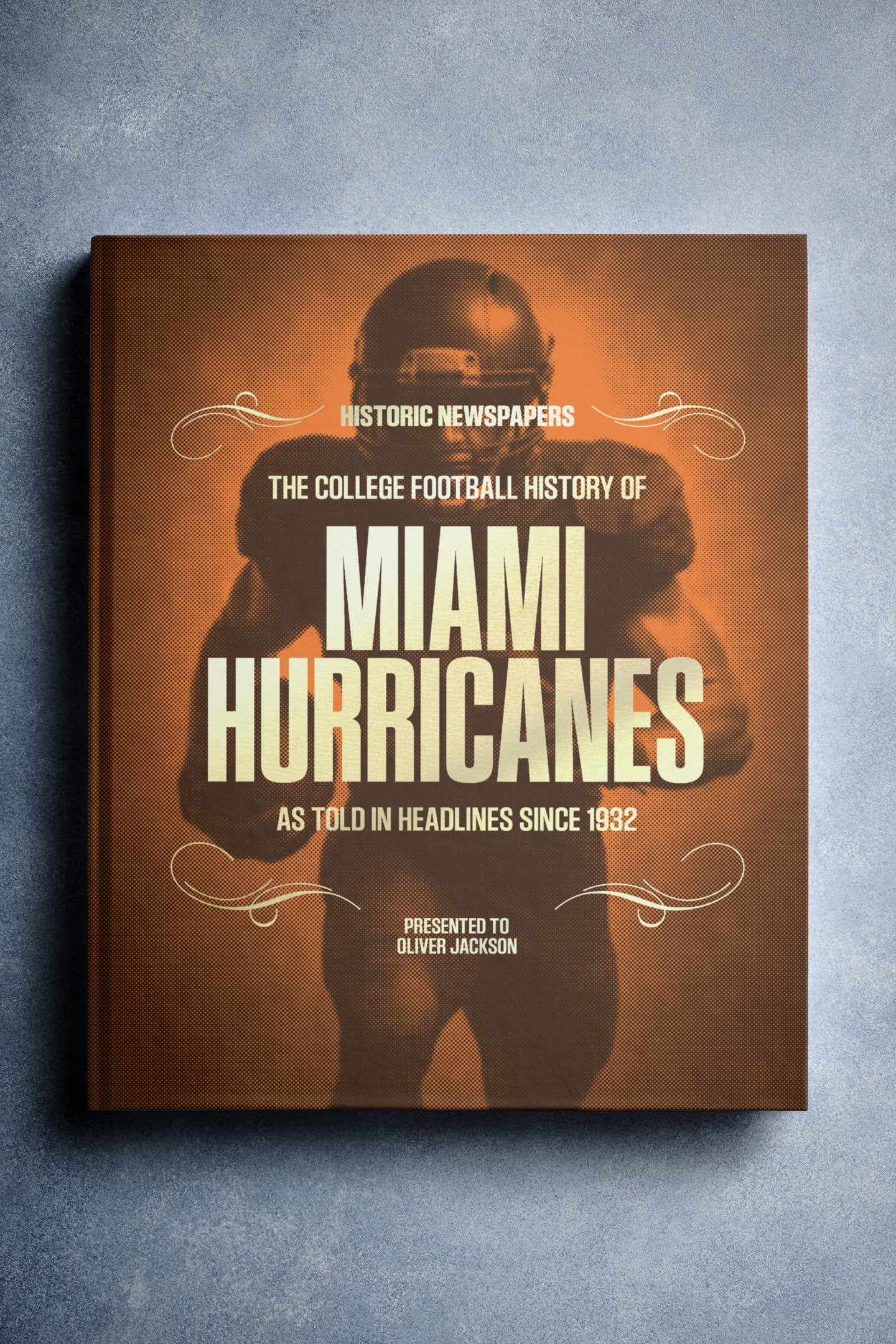 FOLLOW the story of the Miami Hurricanes from 1932 onwards, told through original newspaper reports. Relive historic moments — from the first national title in 1983, to the 1987 ‘Catholics vs. Convicts’ Game vs. Notre Dame, and the Perfect Season in 2001 loaded with future NFL stars. Choose from a range of book covers and personalise your book with a name and message to create a lasting keepsake. A piece of Us history to gift, share, and relive.