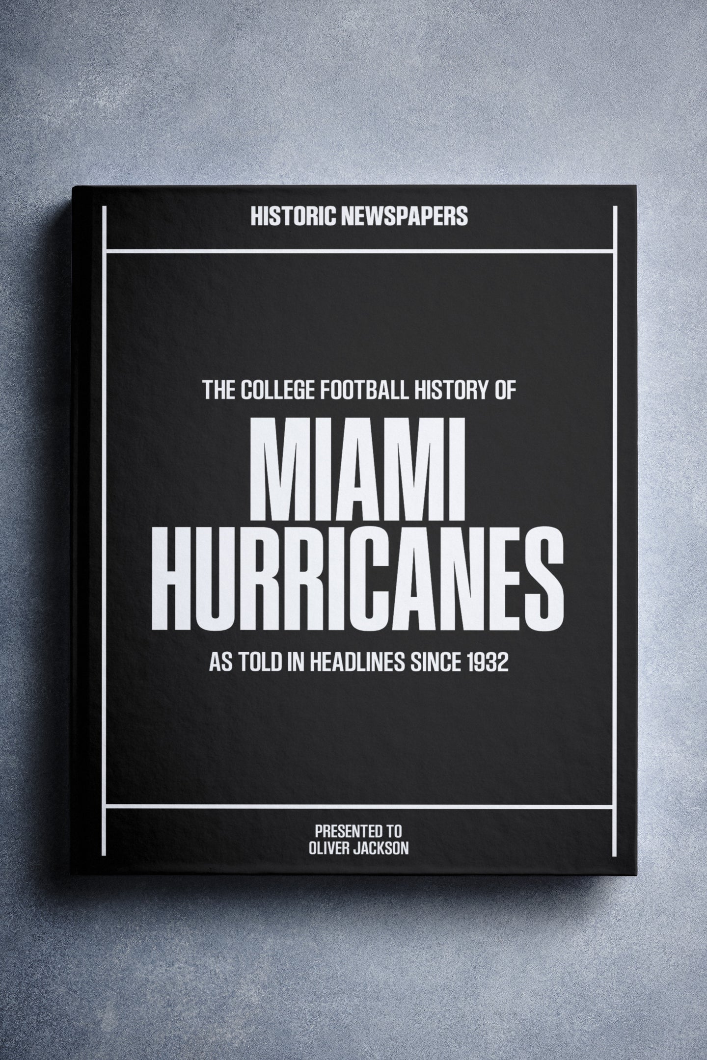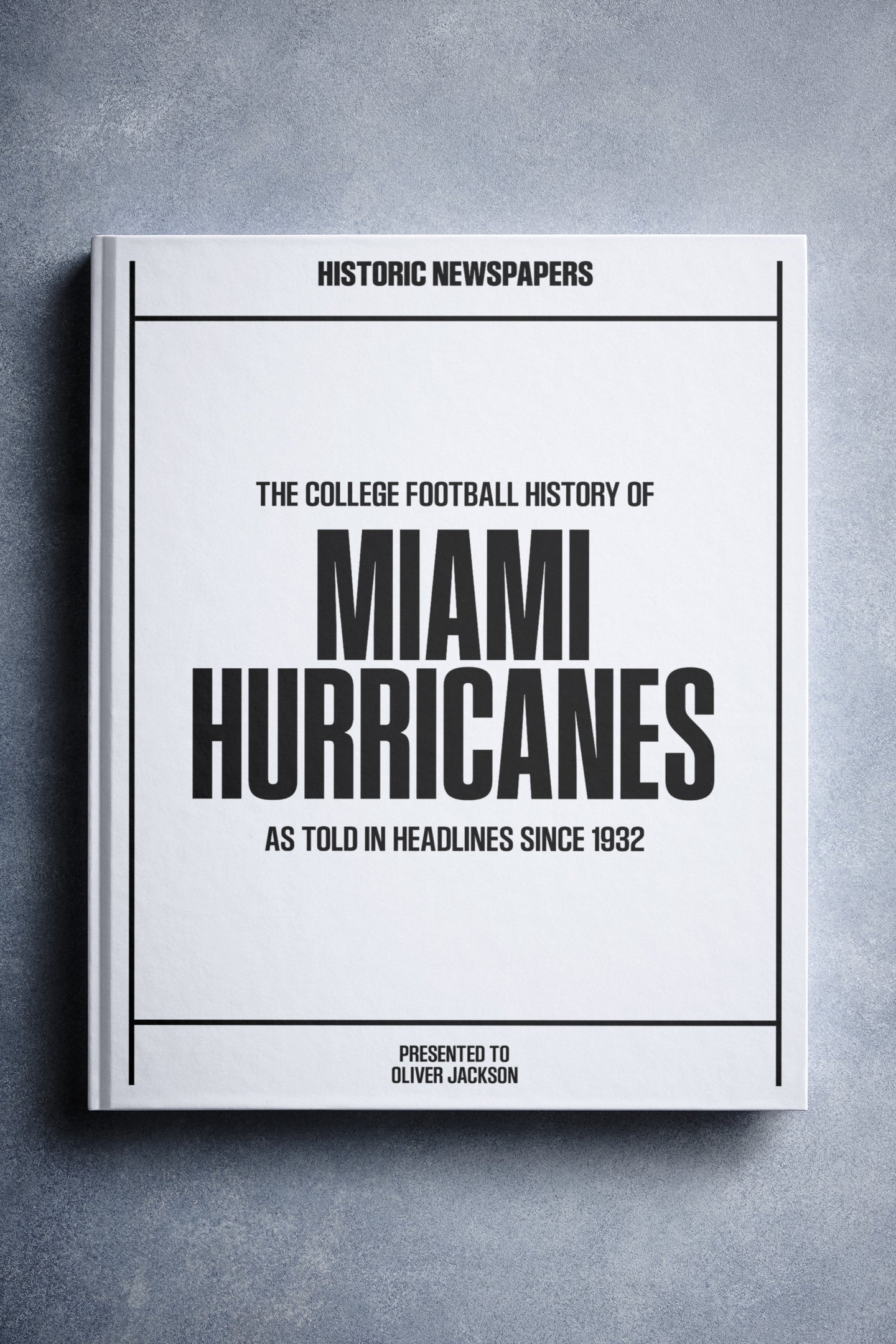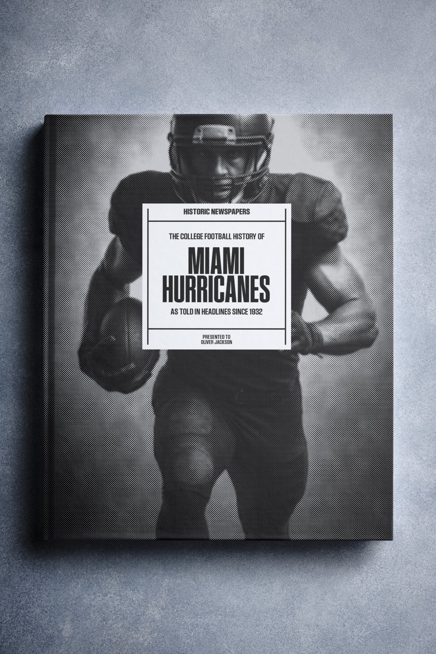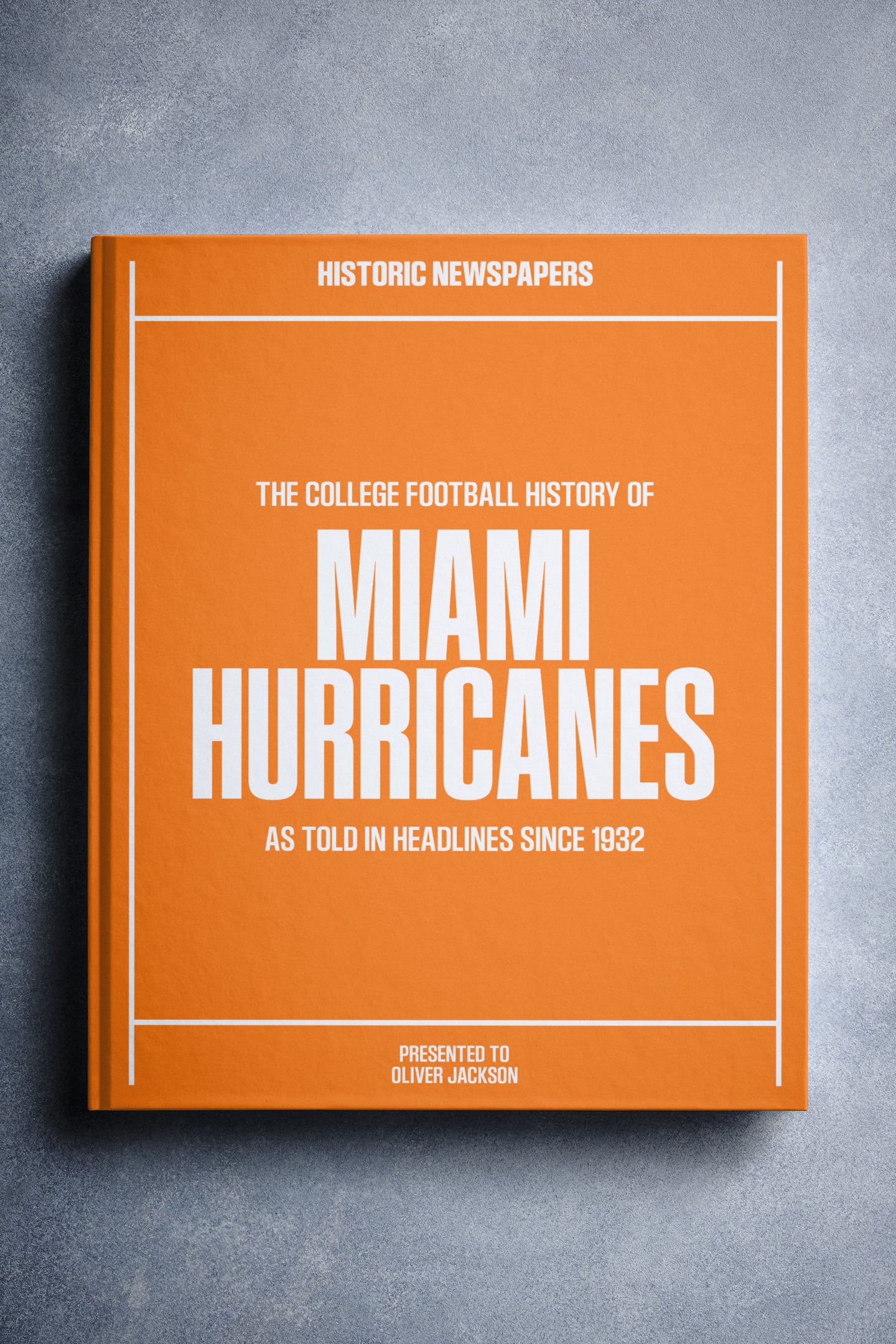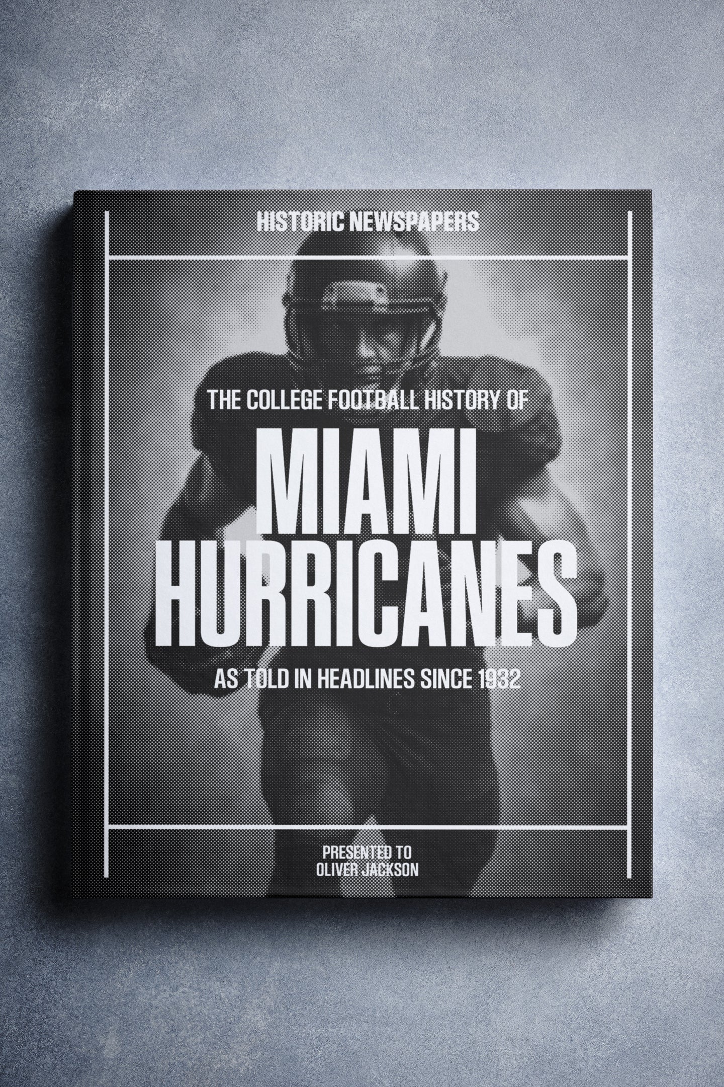 FOLLOW the story of the Miami Hurricanes from 1932 onwards, told through original newspaper reports. Relive historic moments — from the first national title in 1983, to the 1987 ‘Catholics vs. Convicts’ Game vs. Notre Dame, and the Perfect Season in 2001 loaded with future NFL stars. Choose from a range of book covers and personalise your book with a name and message to create a lasting keepsake. A piece of Us history to gift, share, and relive.
