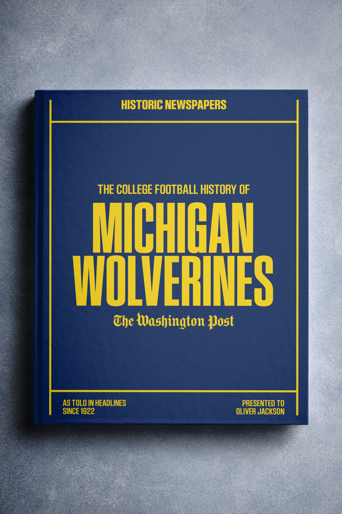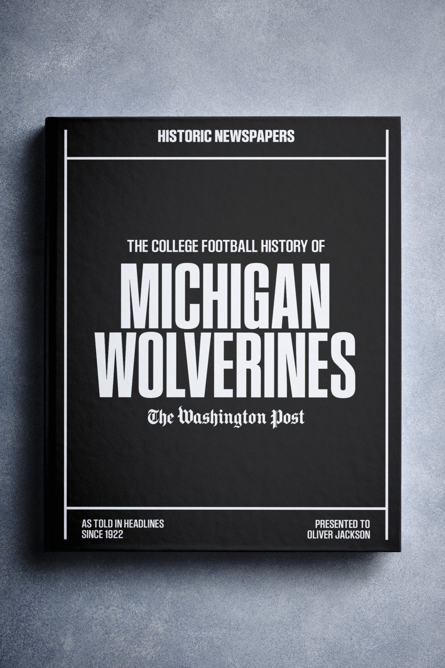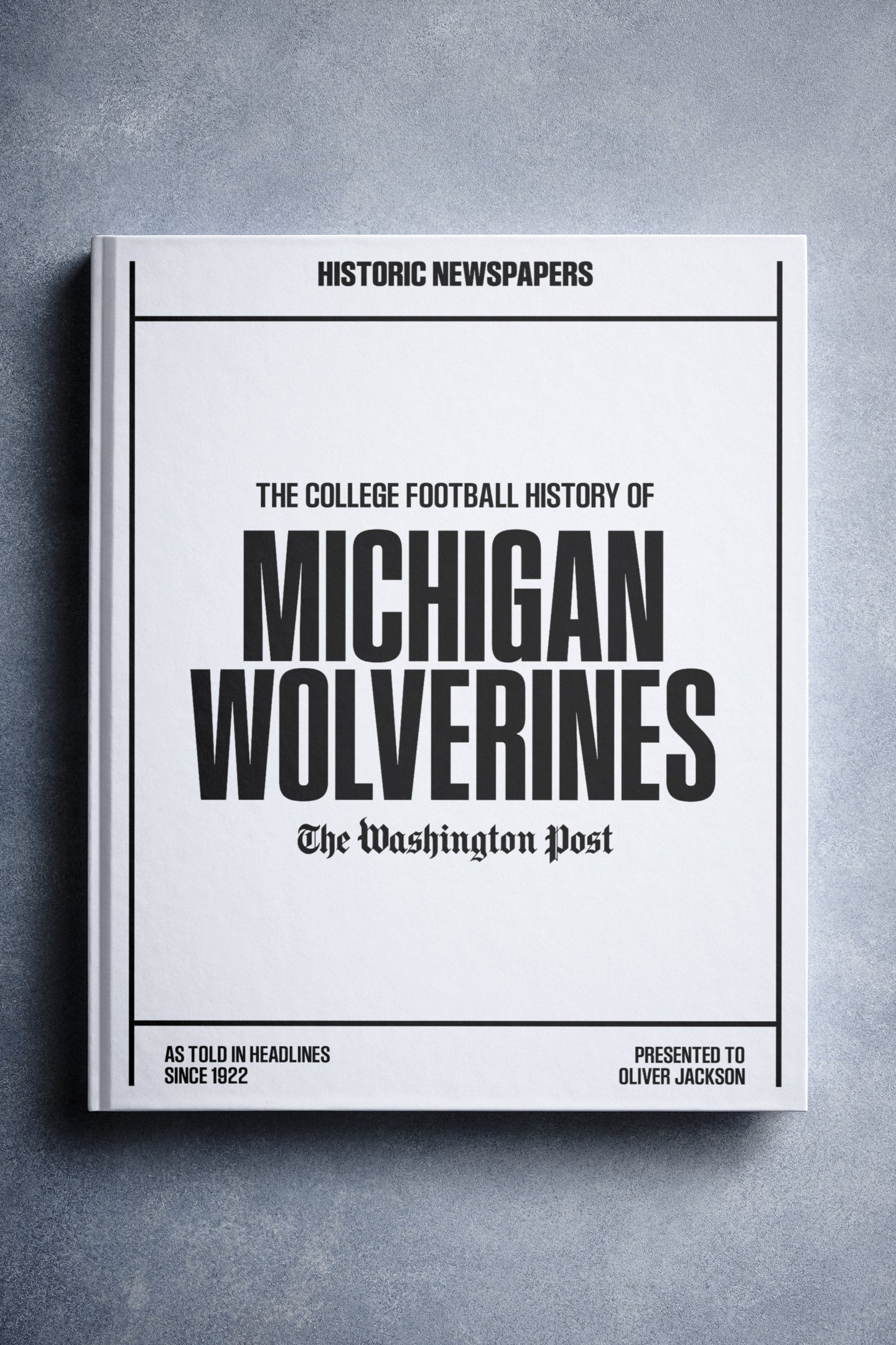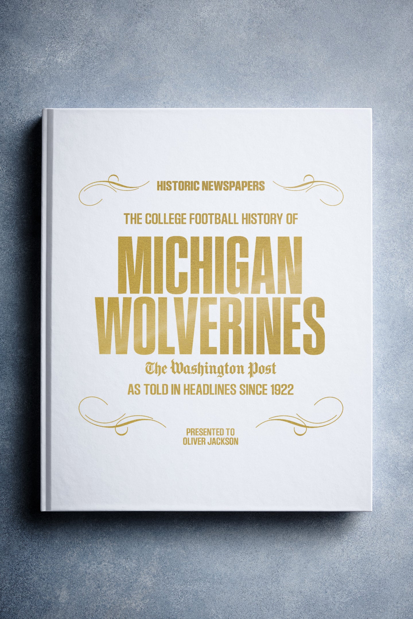 FOLLOW the story of the Michigan Wolverines from 1922 onwards, told through original newspaper reports. Relive historic moments — from the 1997 National Championship Season, to the 2021 win over Ohio State, and the 2024 undefeated 15 – 0 Season. Choose from a range of book covers and personalise your book with a name and message to create a lasting keepsake. A piece of Wolverines history to gift, share, and relive.