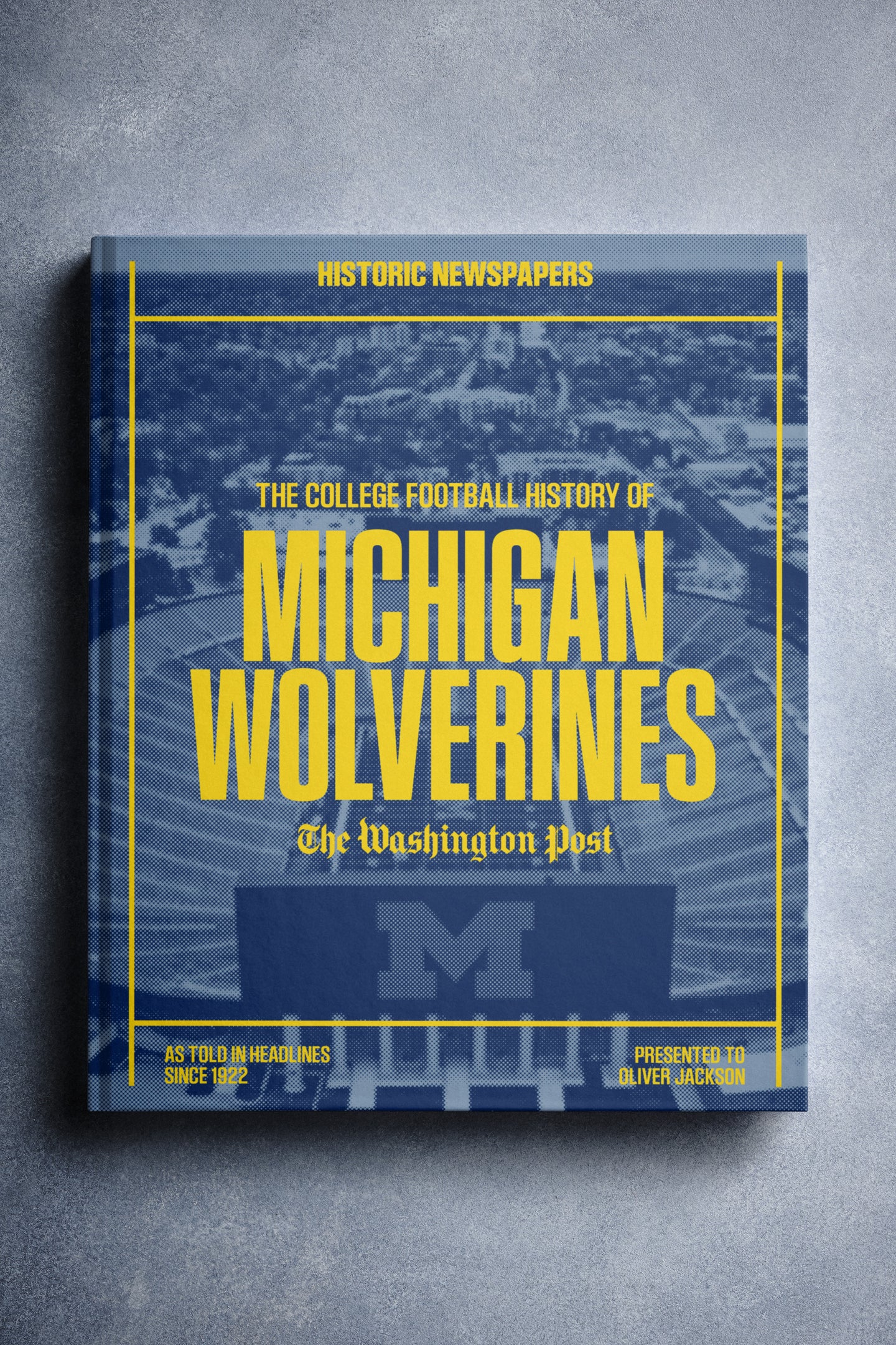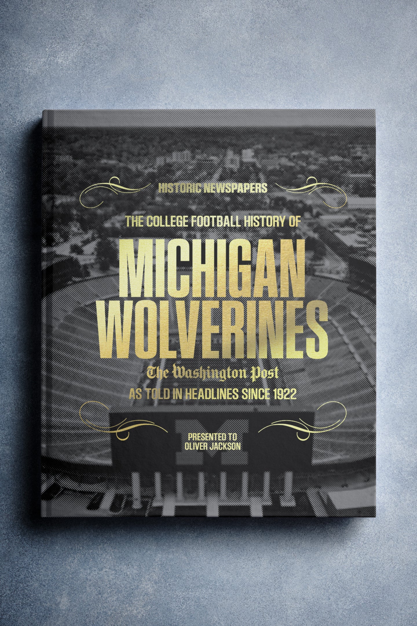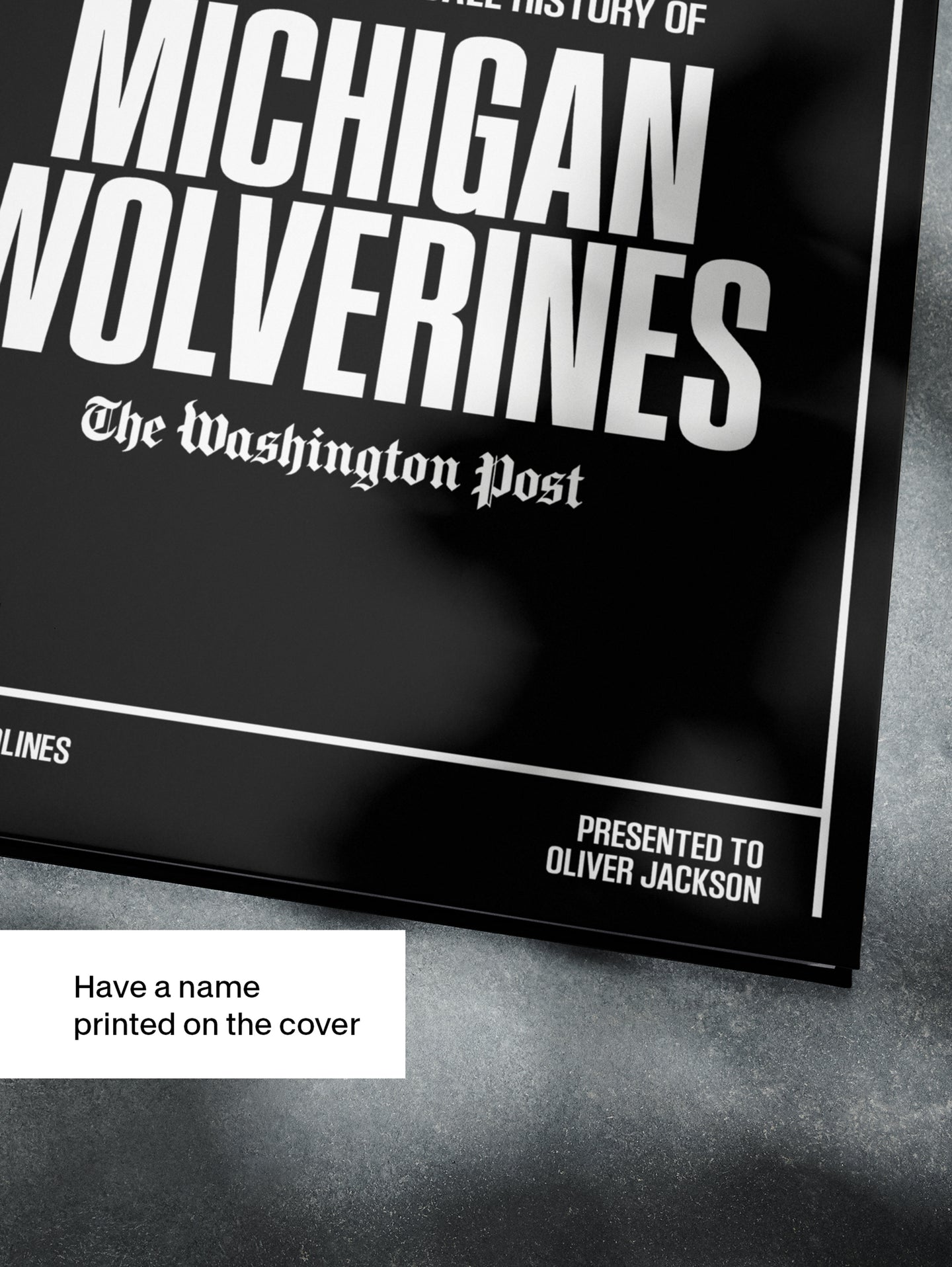FOLLOW the story of the Michigan Wolverines from 1922 onwards, told through original newspaper reports. Relive historic moments — from the 1997 National Championship Season, to the 2021 win over Ohio State, and the 2024 undefeated 15 – 0 Season. Choose from a range of book covers and personalise your book with a name and message to create a lasting keepsake. A piece of Wolverines history to gift, share, and relive.