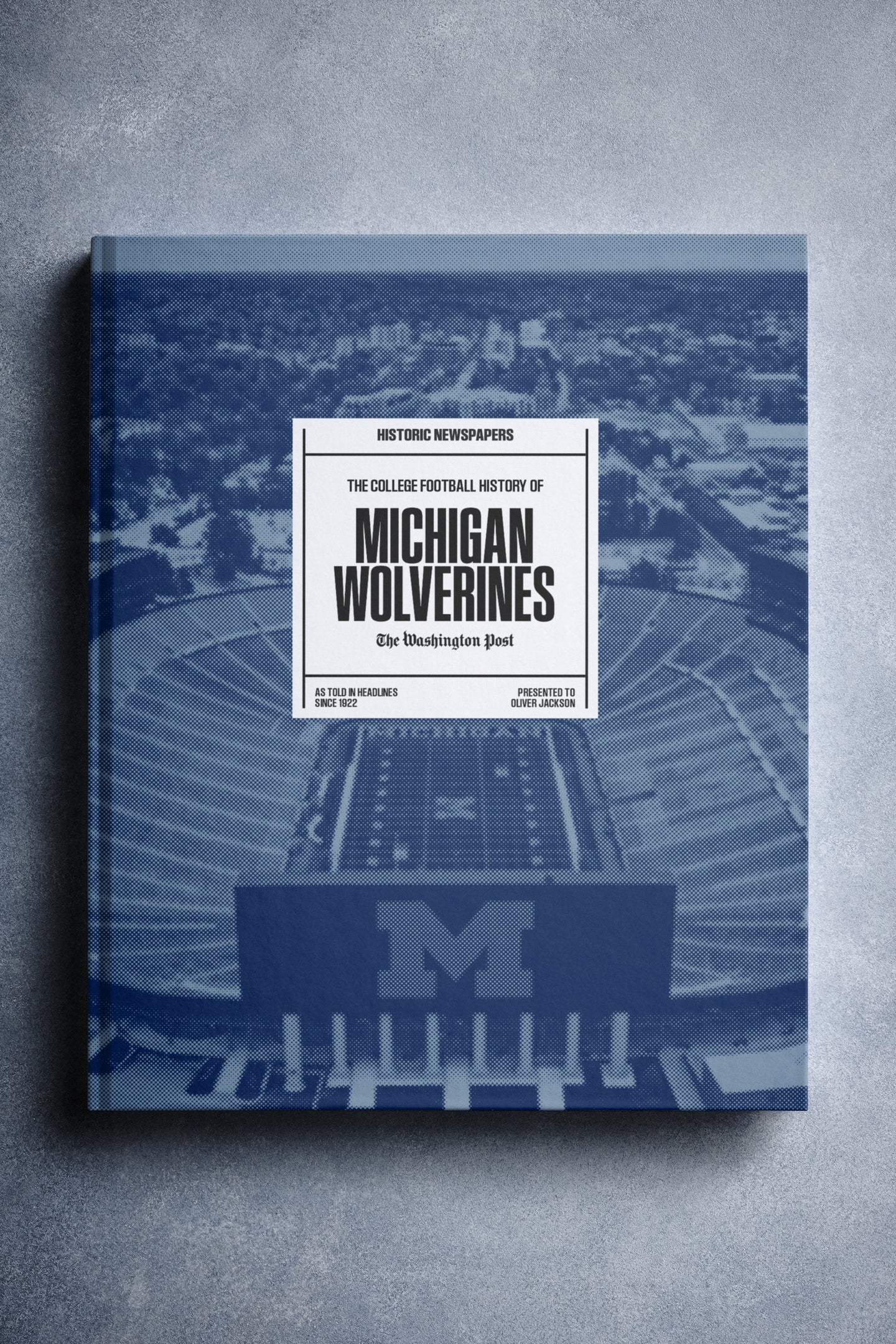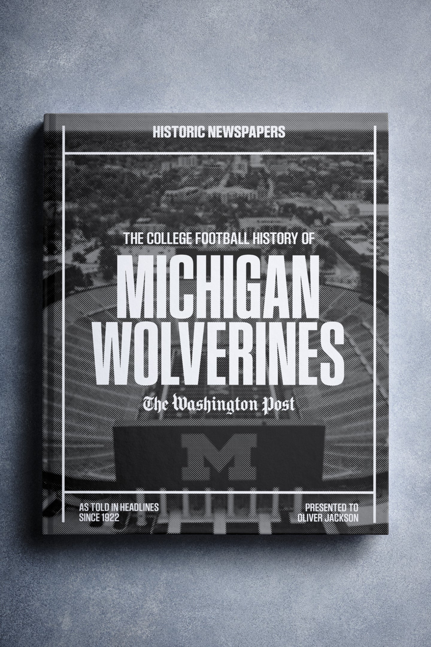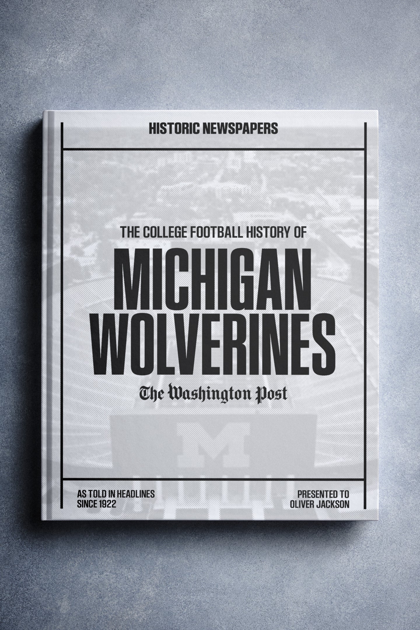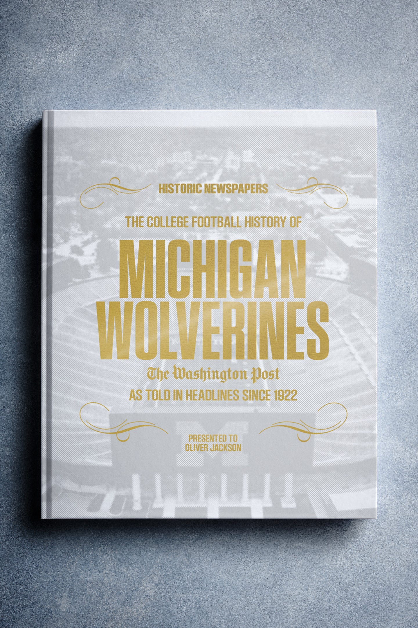 FOLLOW the story of the Michigan Wolverines from 1922 onwards, told through original newspaper reports. Relive historic moments — from the 1997 National Championship Season, to the 2021 win over Ohio State, and the 2024 undefeated 15 – 0 Season. Choose from a range of book covers and personalise your book with a name and message to create a lasting keepsake. A piece of Wolverines history to gift, share, and relive.