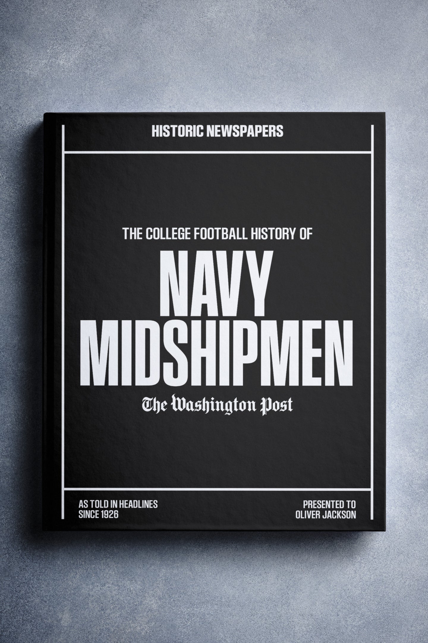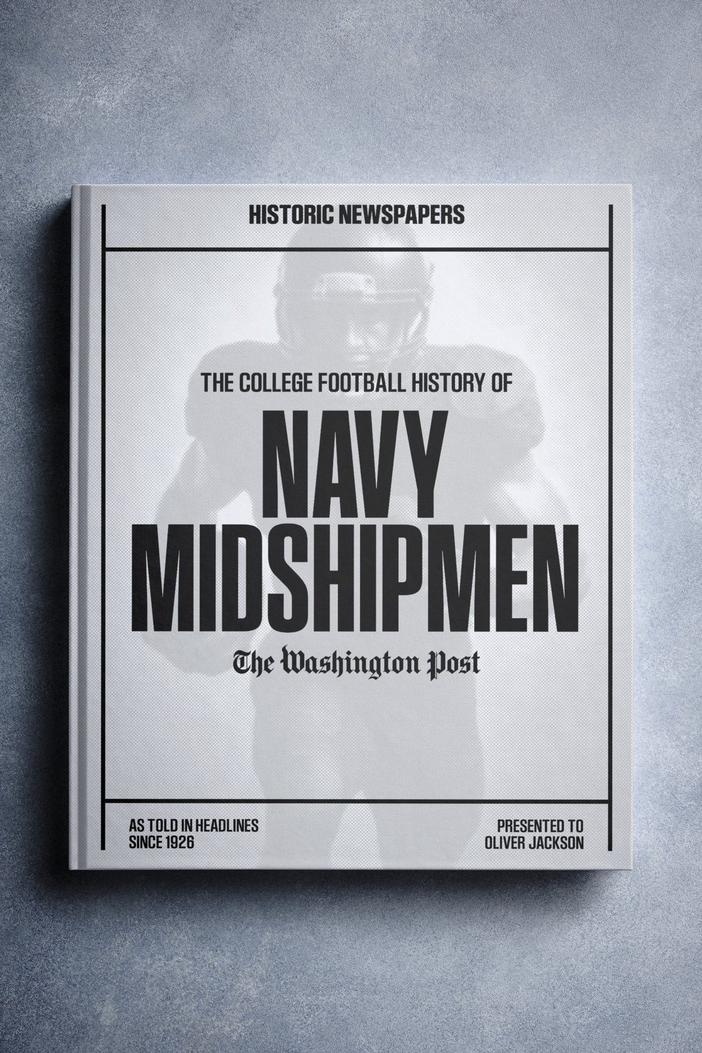 This coffee-table book features over 150 pages of authentic Washington Post newspaper reports about The History of Navy Midshipmen College Football. It comes with a choice of covers and the option to have the recipient’s name printed on the cover for free.
