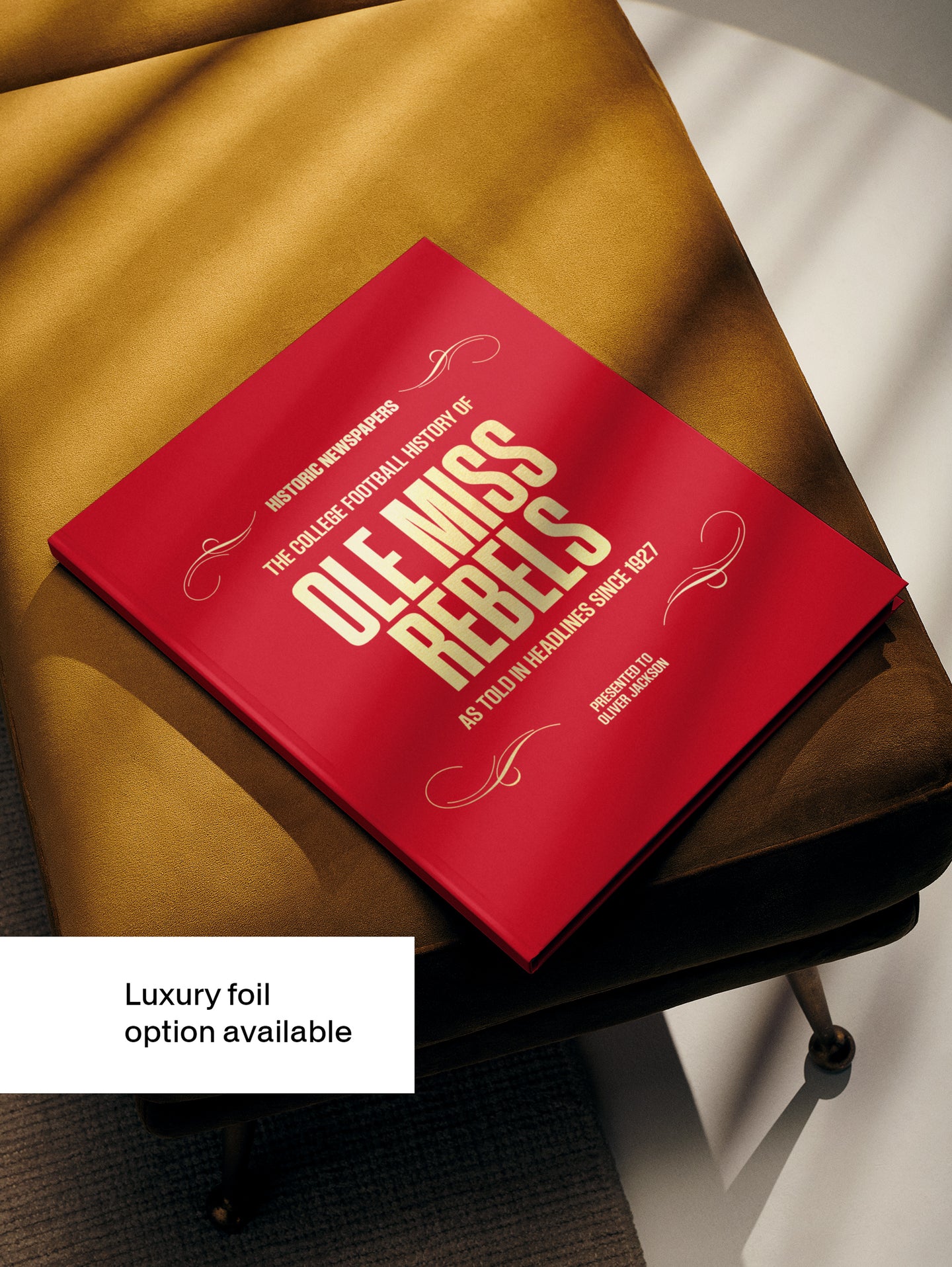 This coffee-table book features 170 pages of authentic Clarion Ledger newspaper reports about The History of Ole Miss Rebels College Football. It comes with a choice of covers and the option to have the recipient’s name printed on the cover for free.