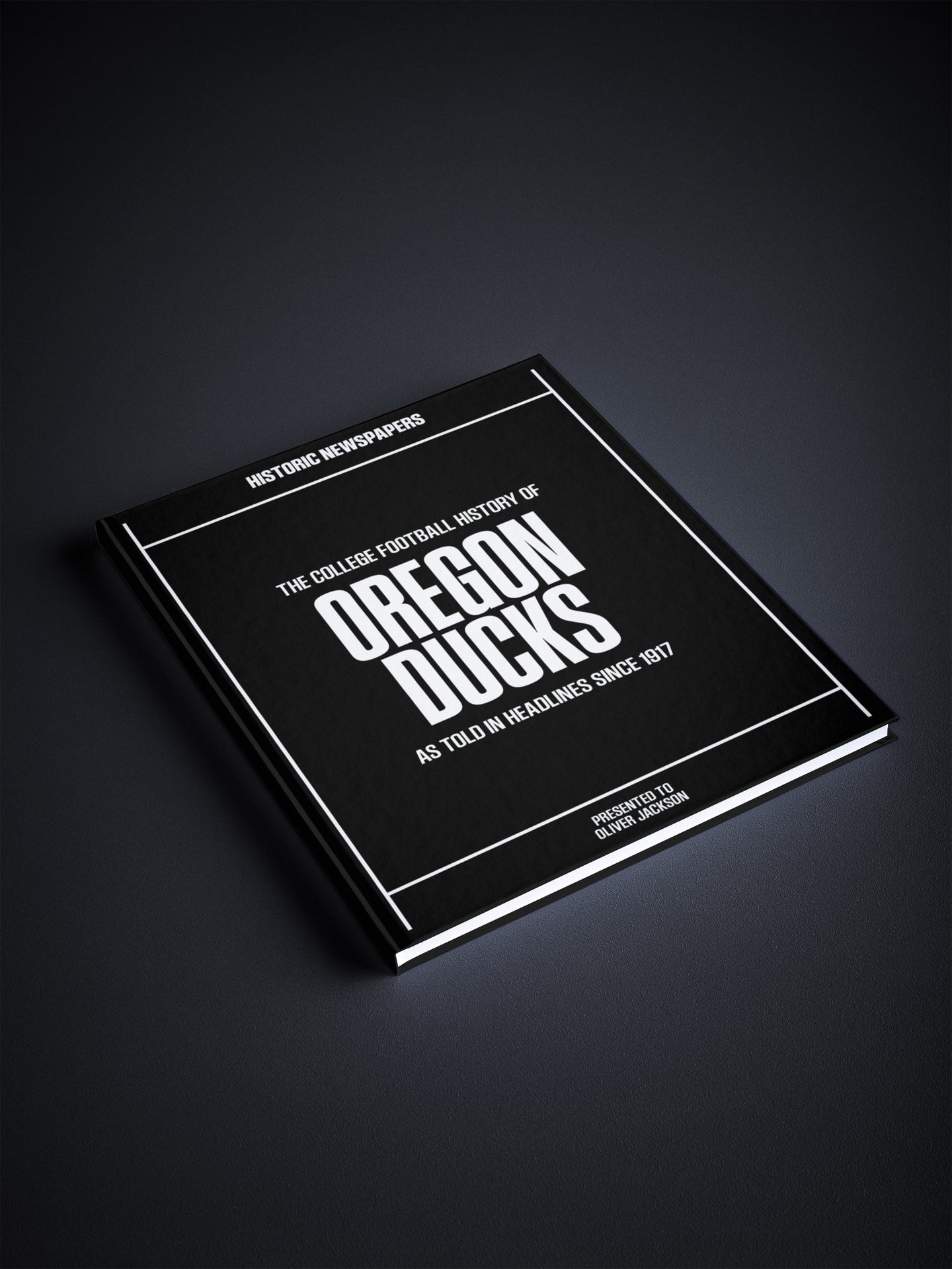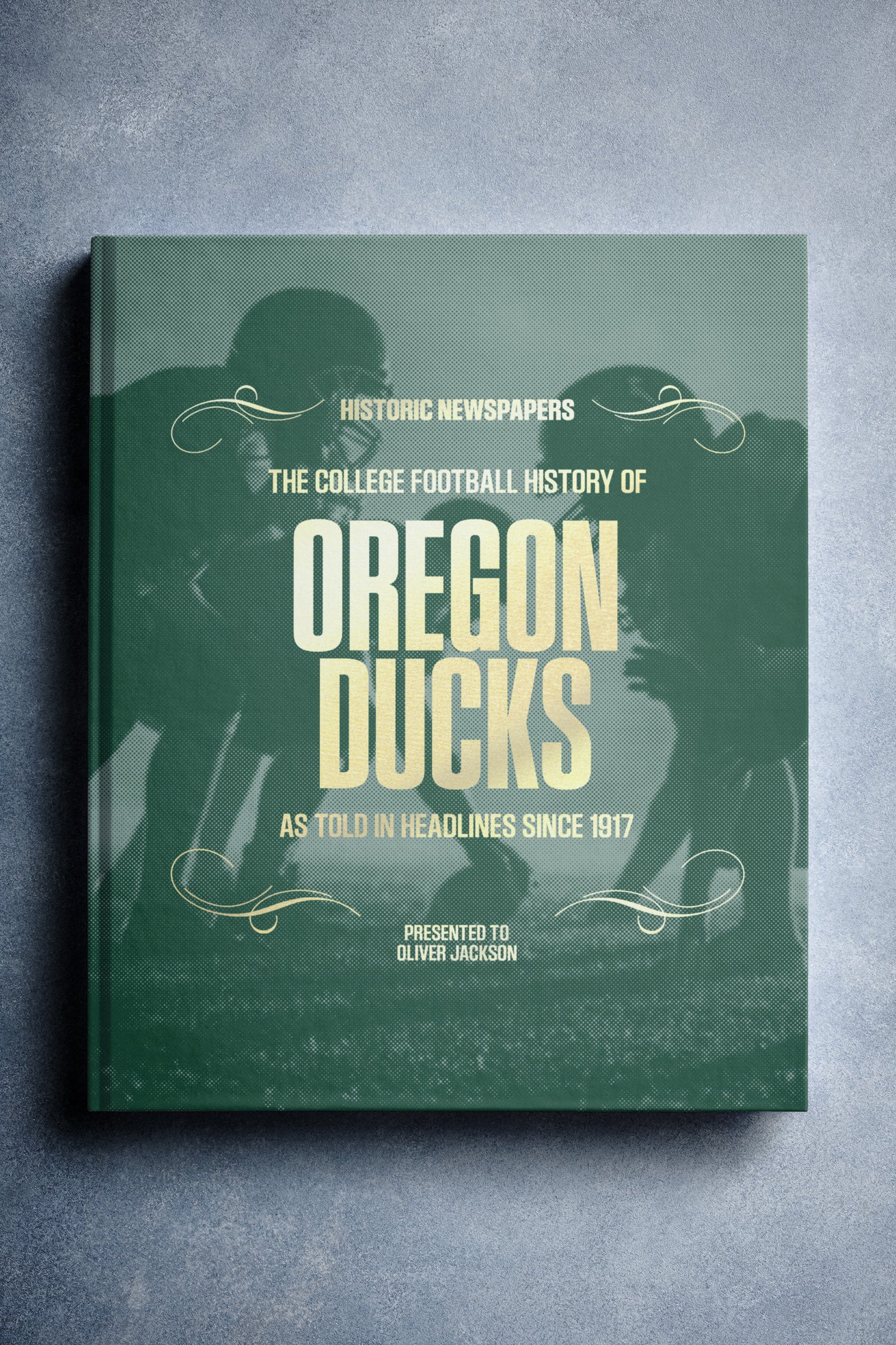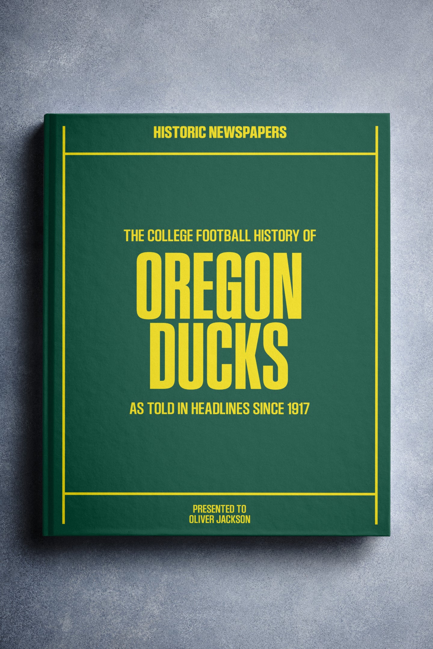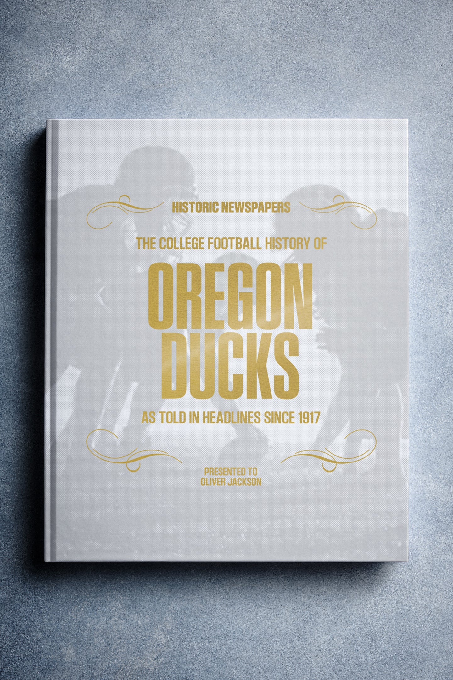 This coffee-table book features over 160 pages of authentic Register Guard and The Statesman Journal newspaper reports about The History of Oregon Ducks College Football. It comes with a choice of covers and the option to have the recipient’s name printed on the cover for free.