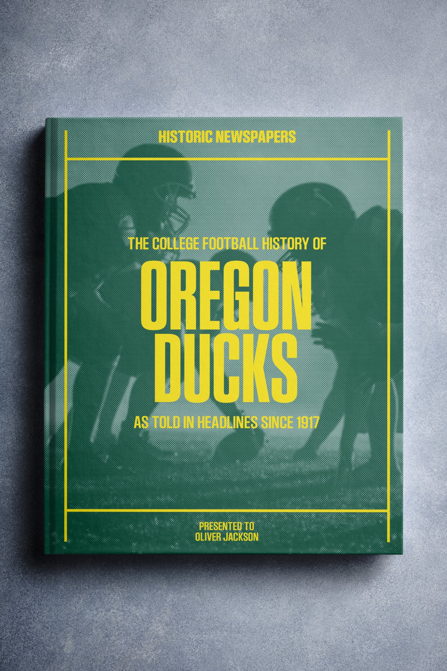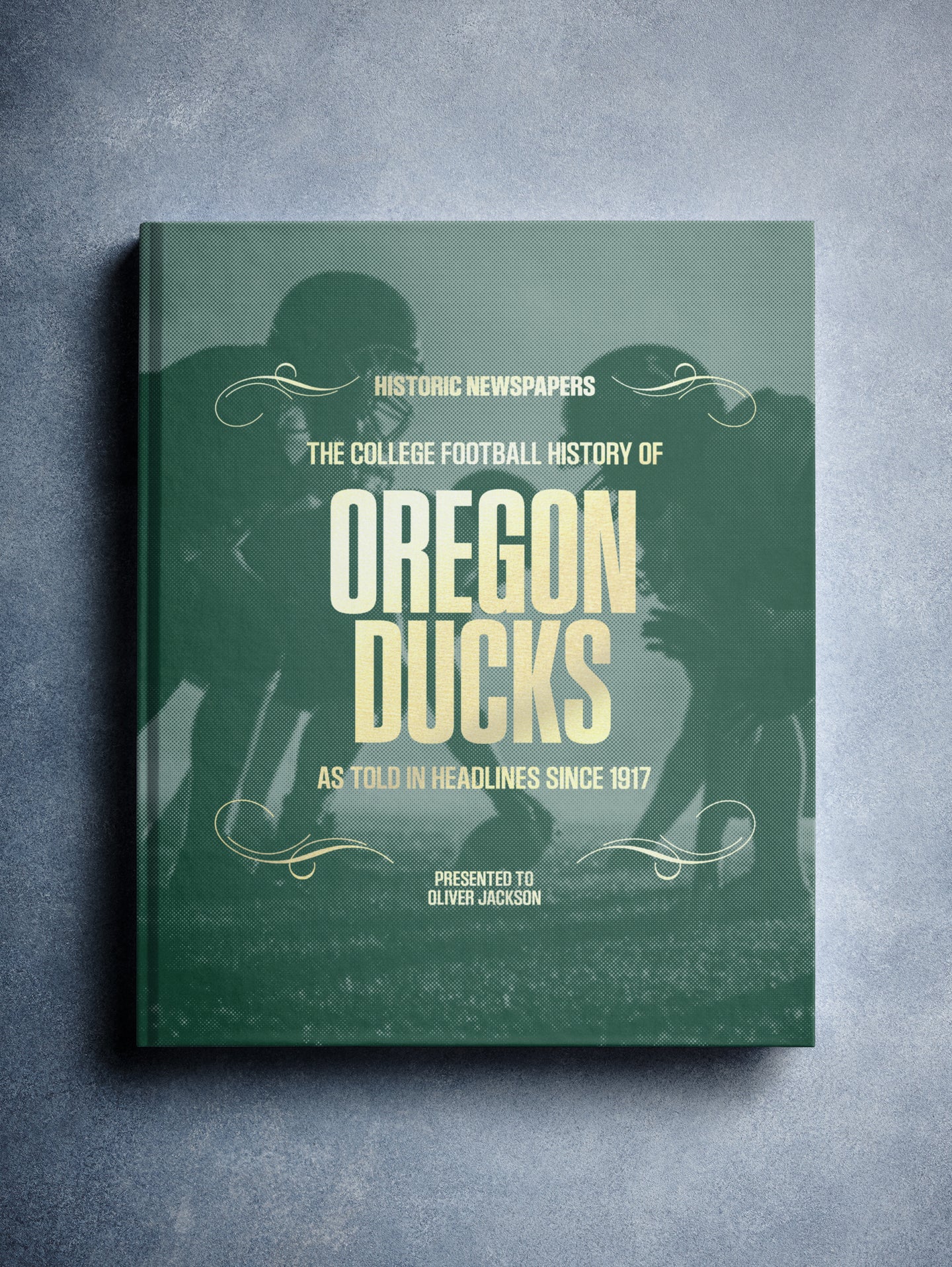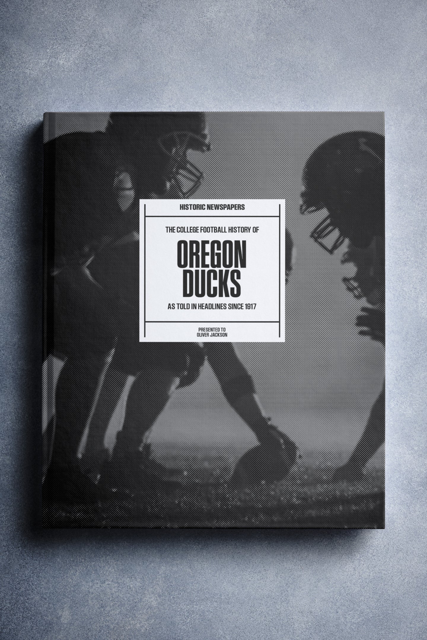 This coffee-table book features over 160 pages of authentic Register Guard and The Statesman Journal newspaper reports about The History of Oregon Ducks College Football. It comes with a choice of covers and the option to have the recipient’s name printed on the cover for free.
