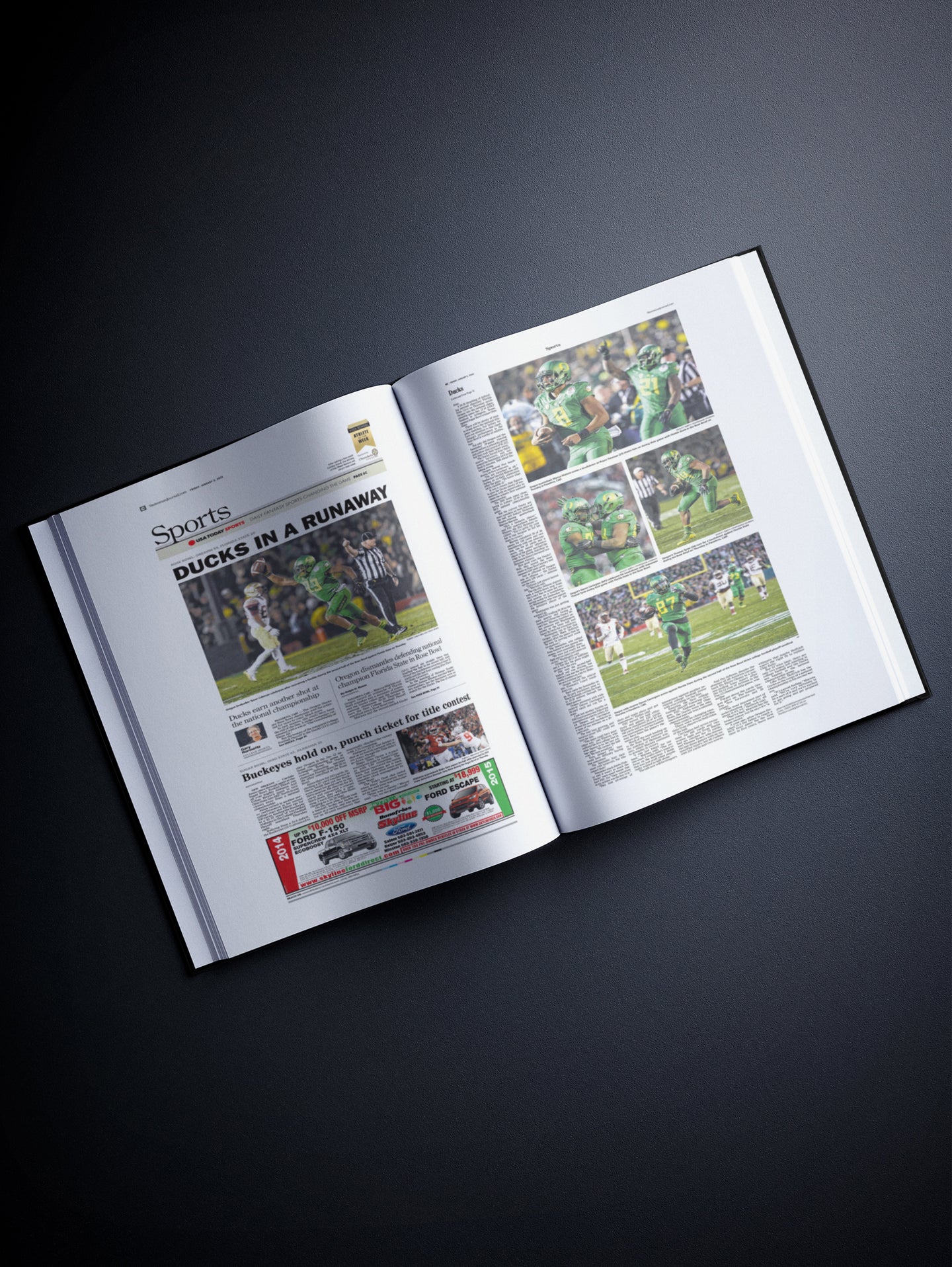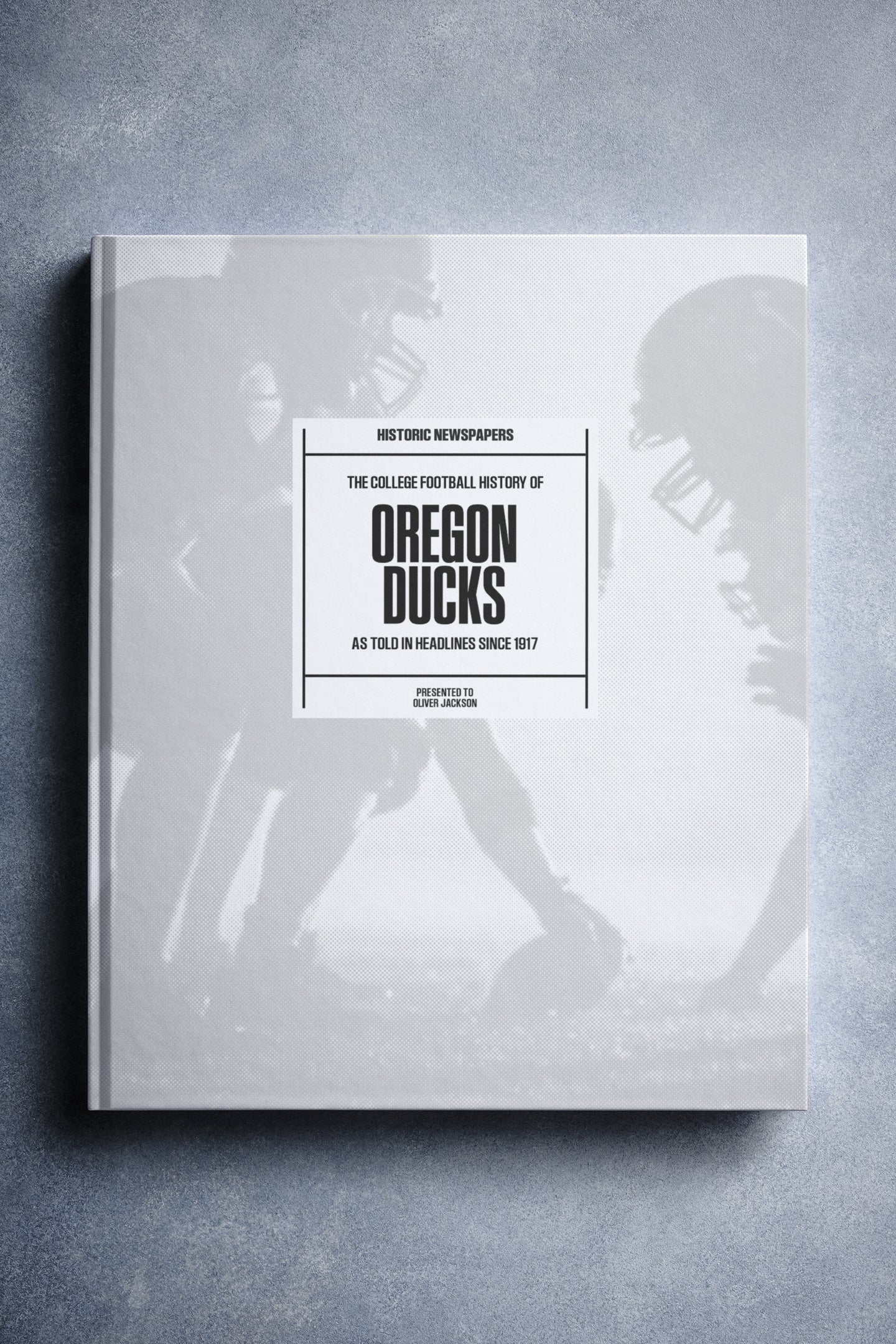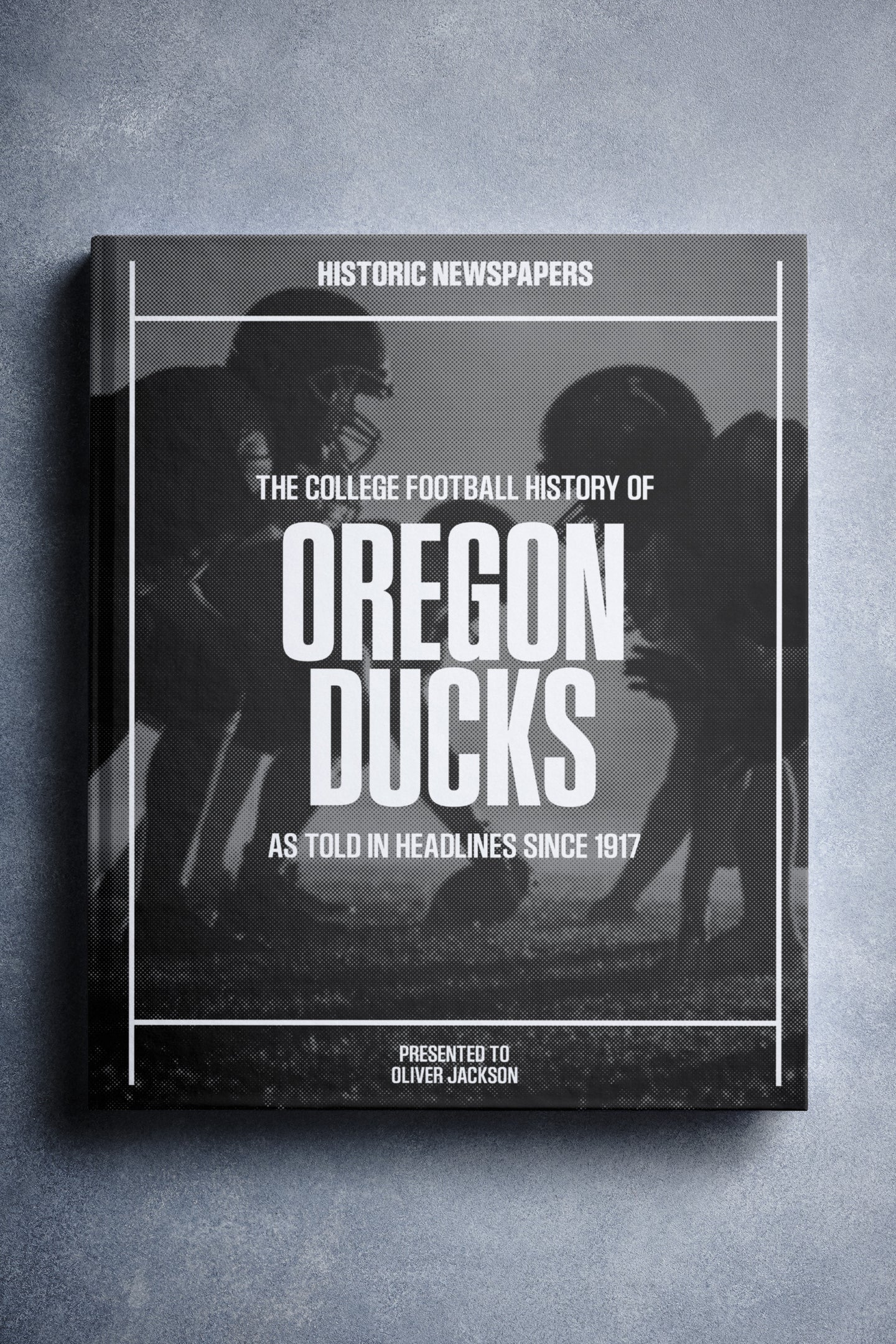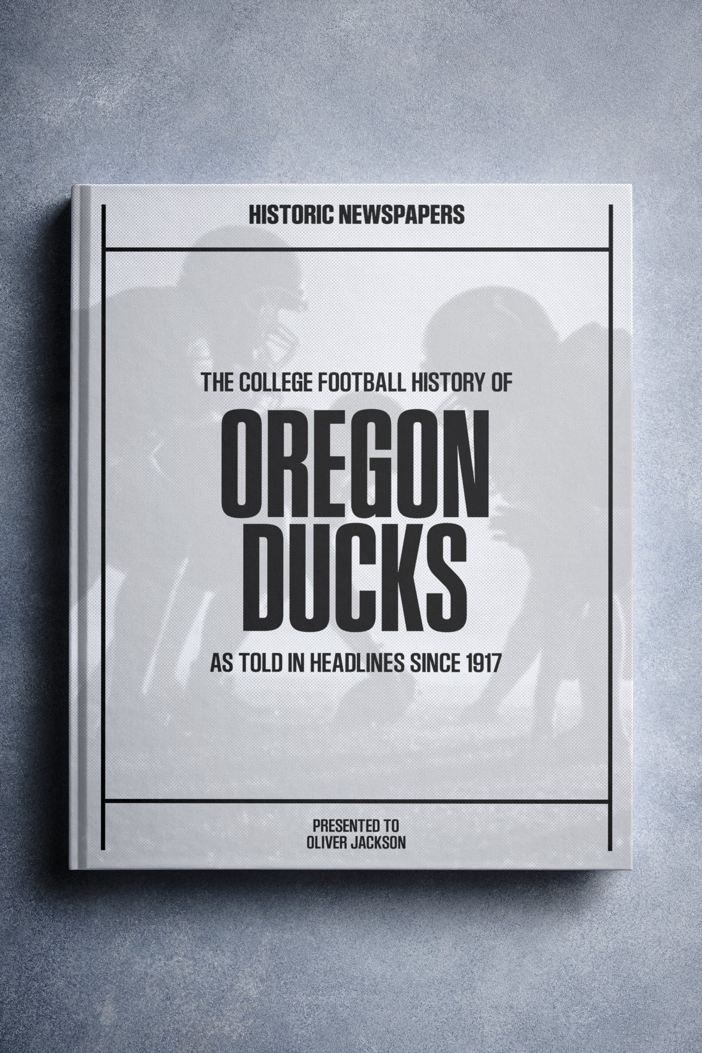 This coffee-table book features over 160 pages of authentic Register Guard and The Statesman Journal newspaper reports about The History of Oregon Ducks College Football. It comes with a choice of covers and the option to have the recipient’s name printed on the cover for free.
