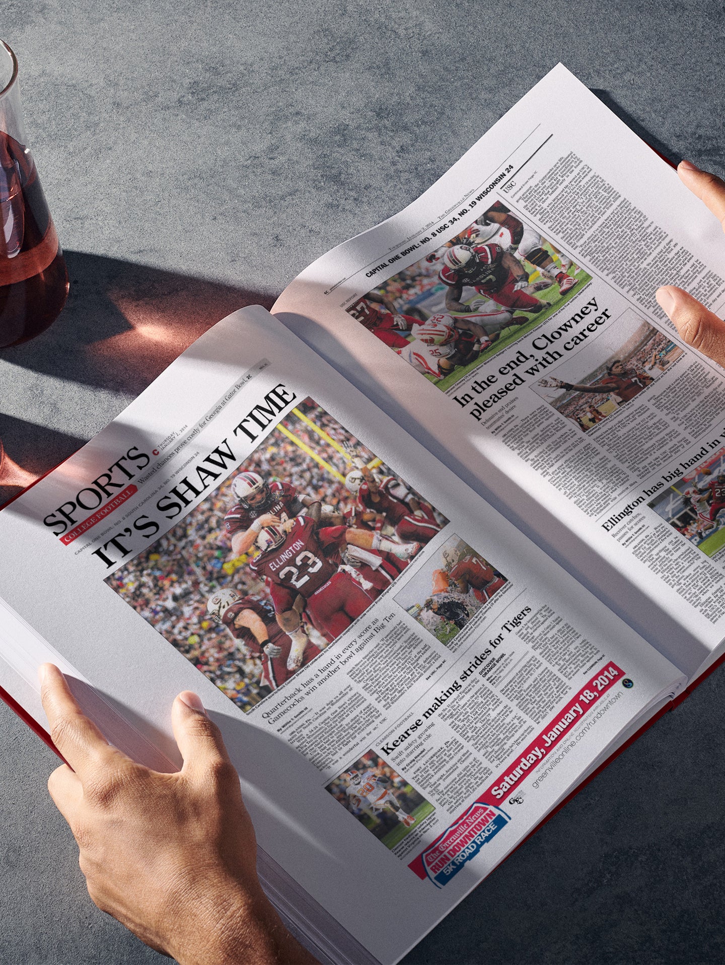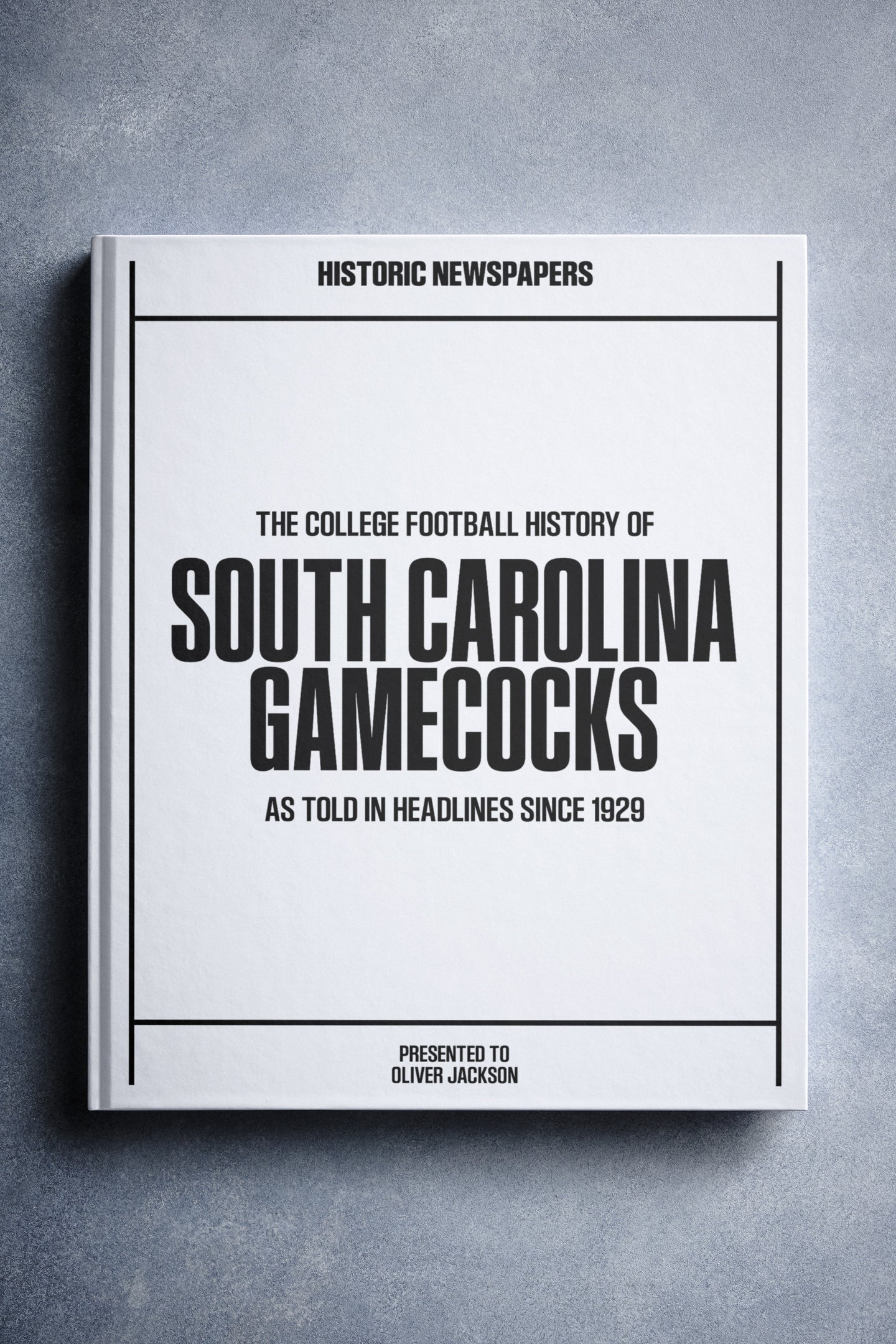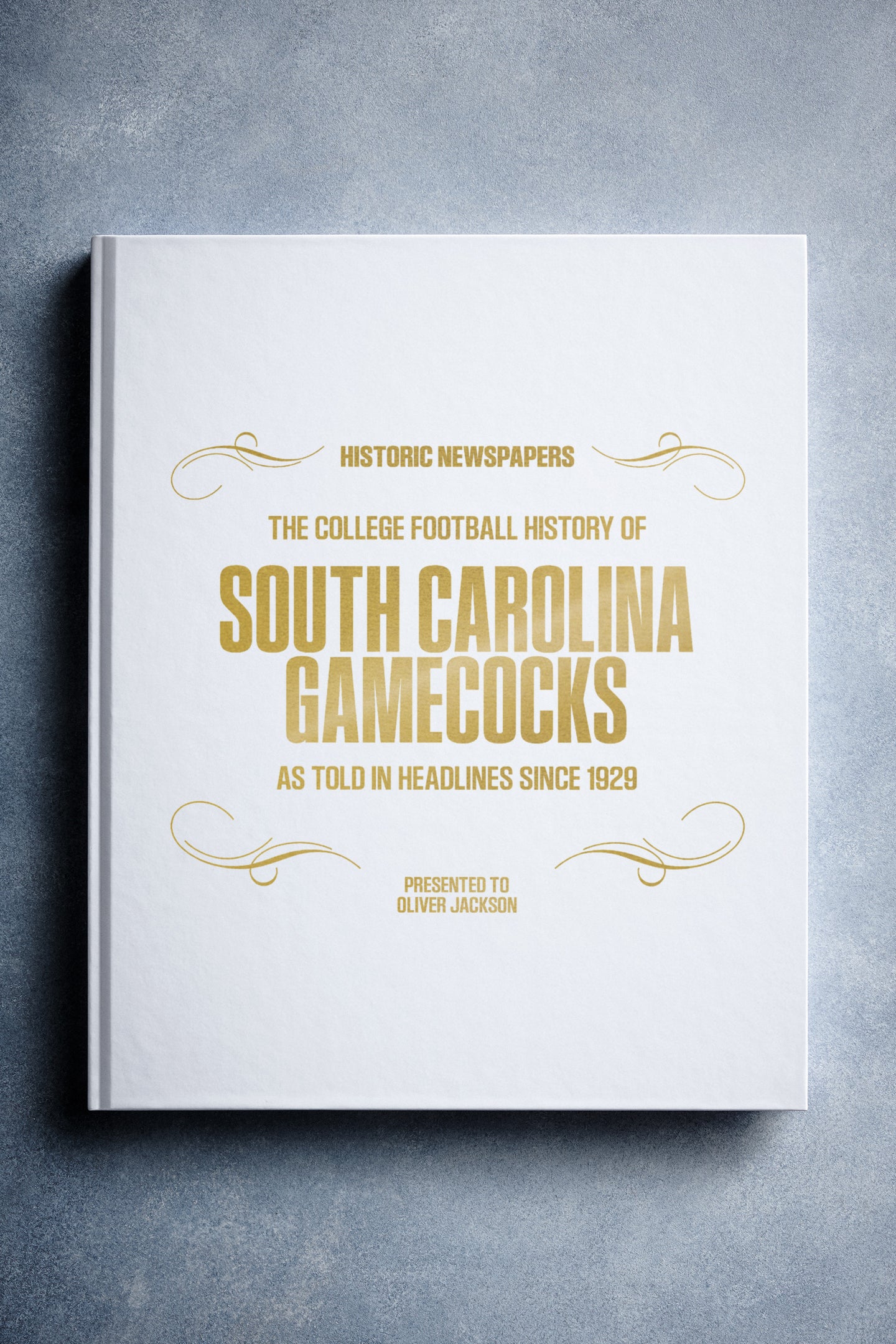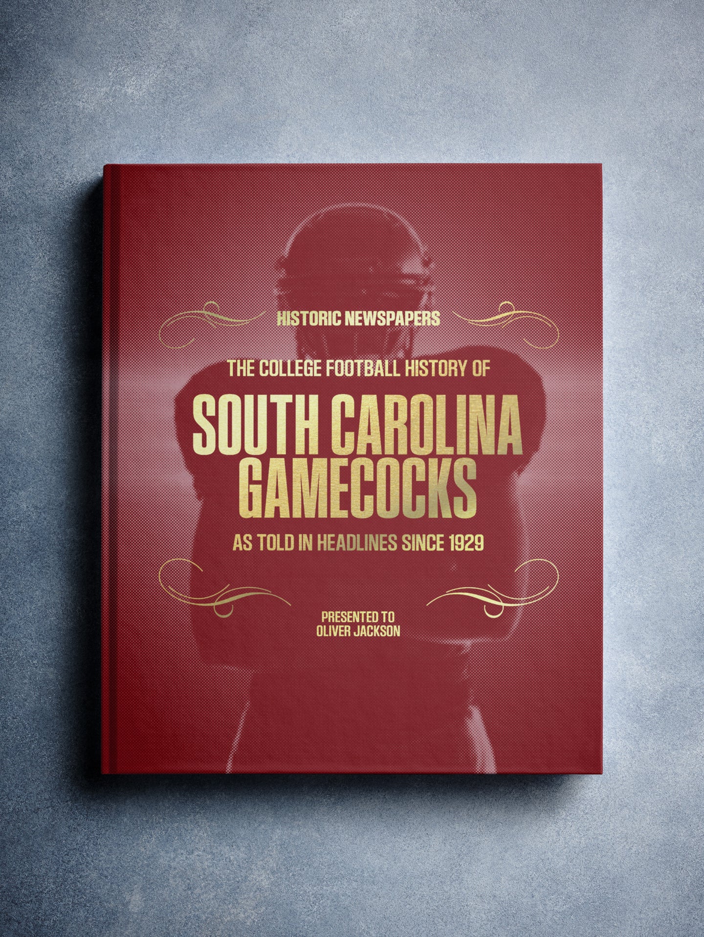 This coffee-table book features over 150 pages of authentic Greenville News and Independent-Mail newspaper reports about The History of South Carolina Gamecocks College Football. It comes with a choice of covers and the option to have the recipient’s name printed on the cover for free.