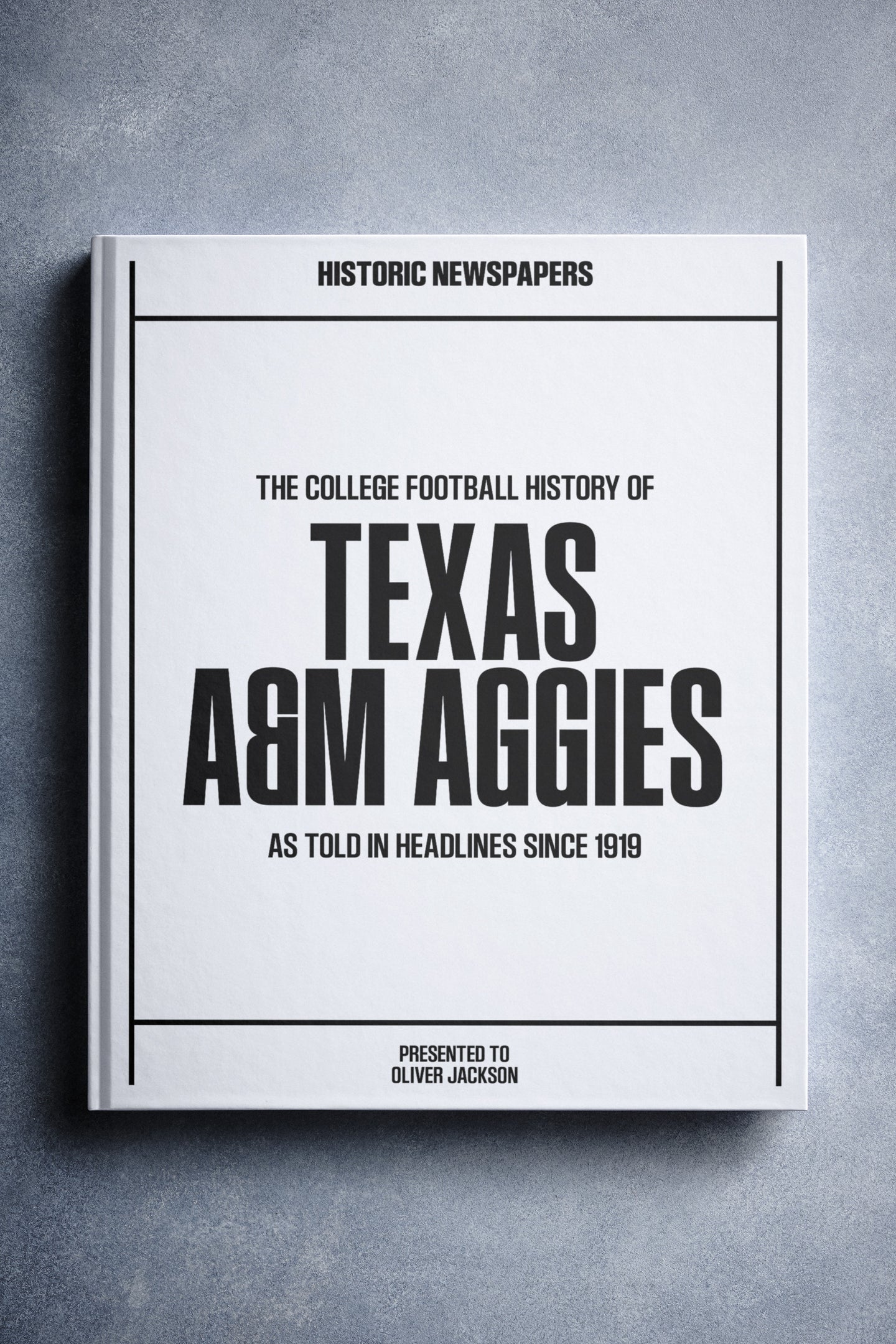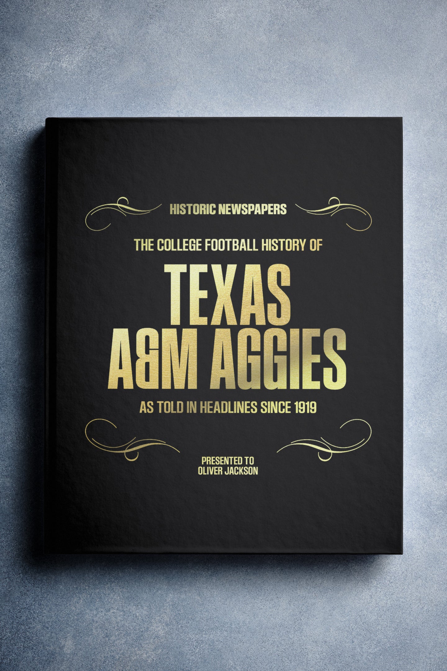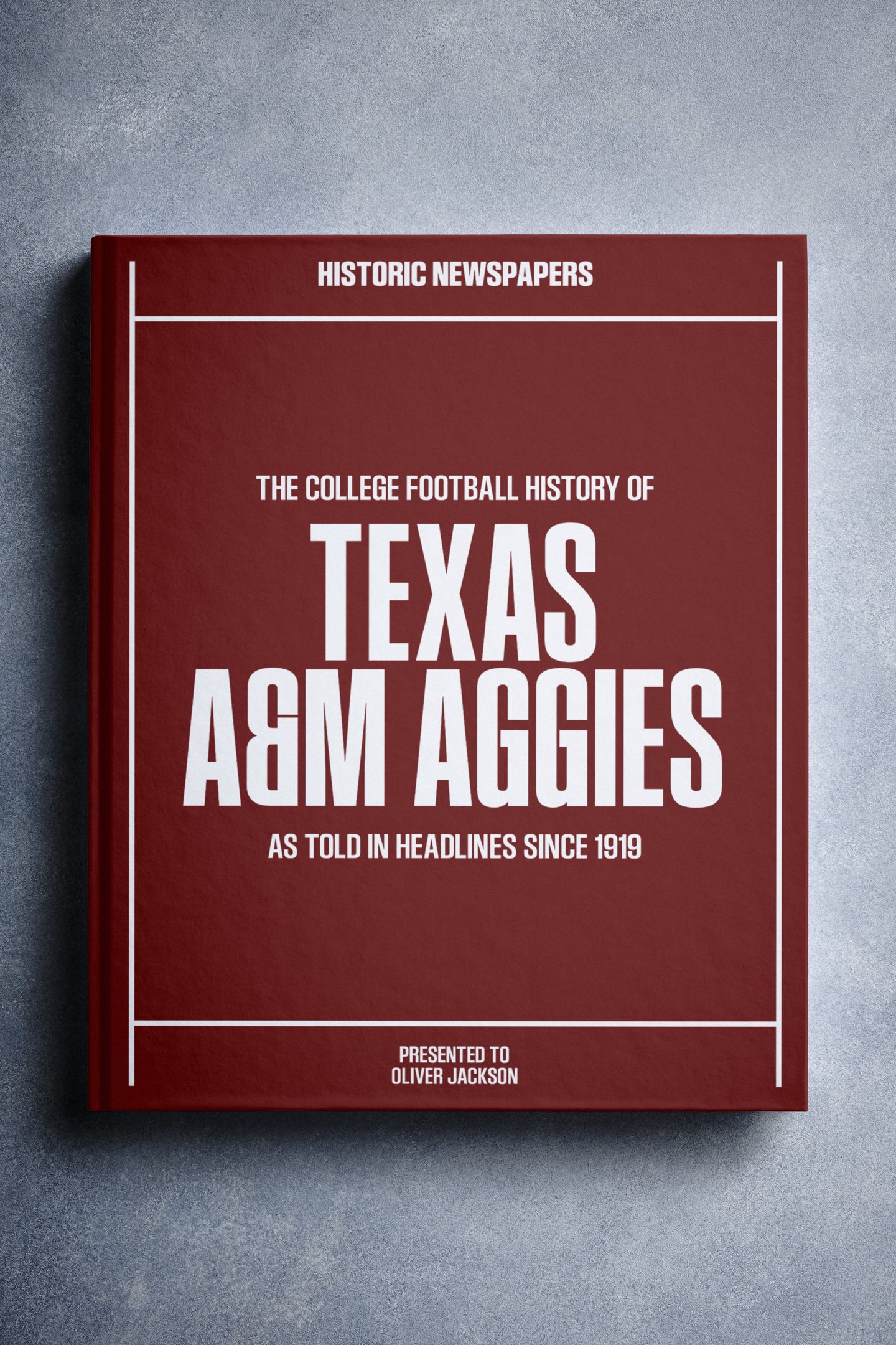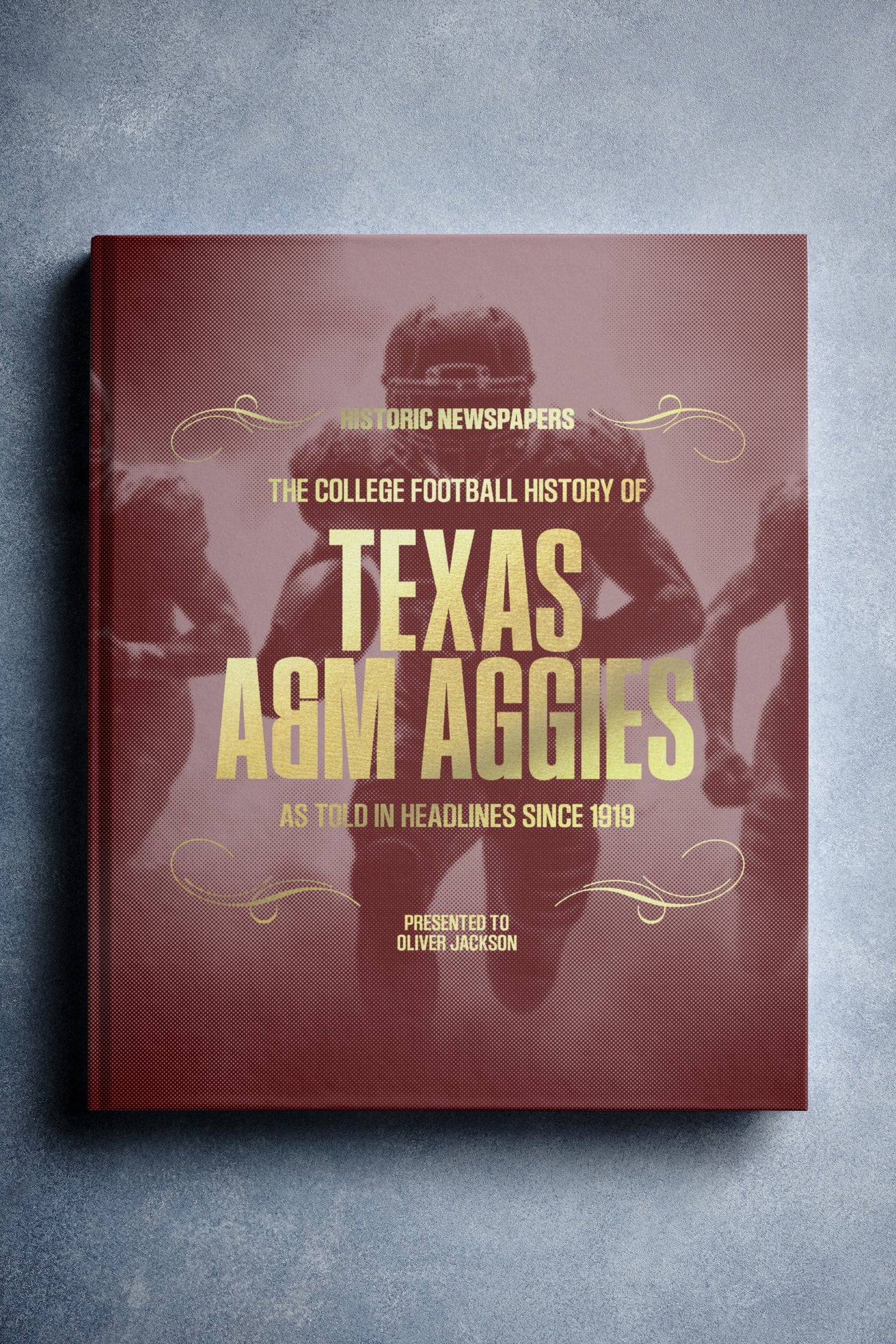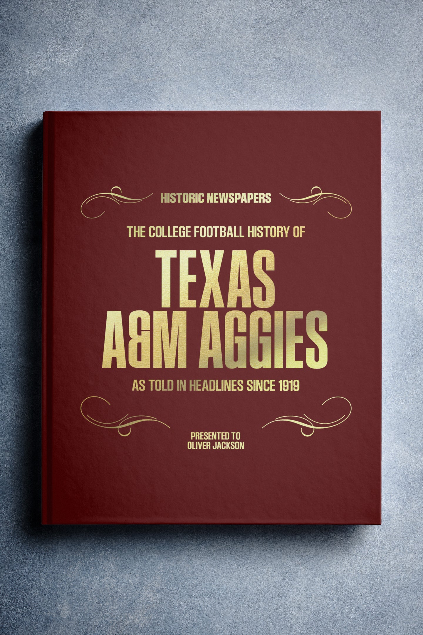 This coffee-table book features 150 pages of authentic Austin American Statesman and Times Record News newspaper reports about The History of Texas A&M Aggies College Football. It comes with a choice of covers and the option to have the recipient’s name printed on the cover for free.