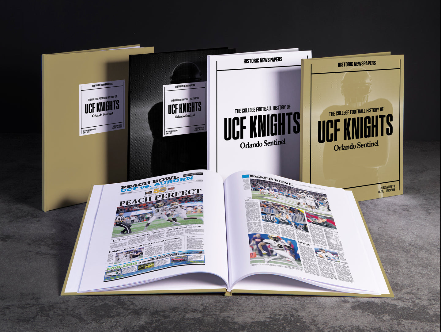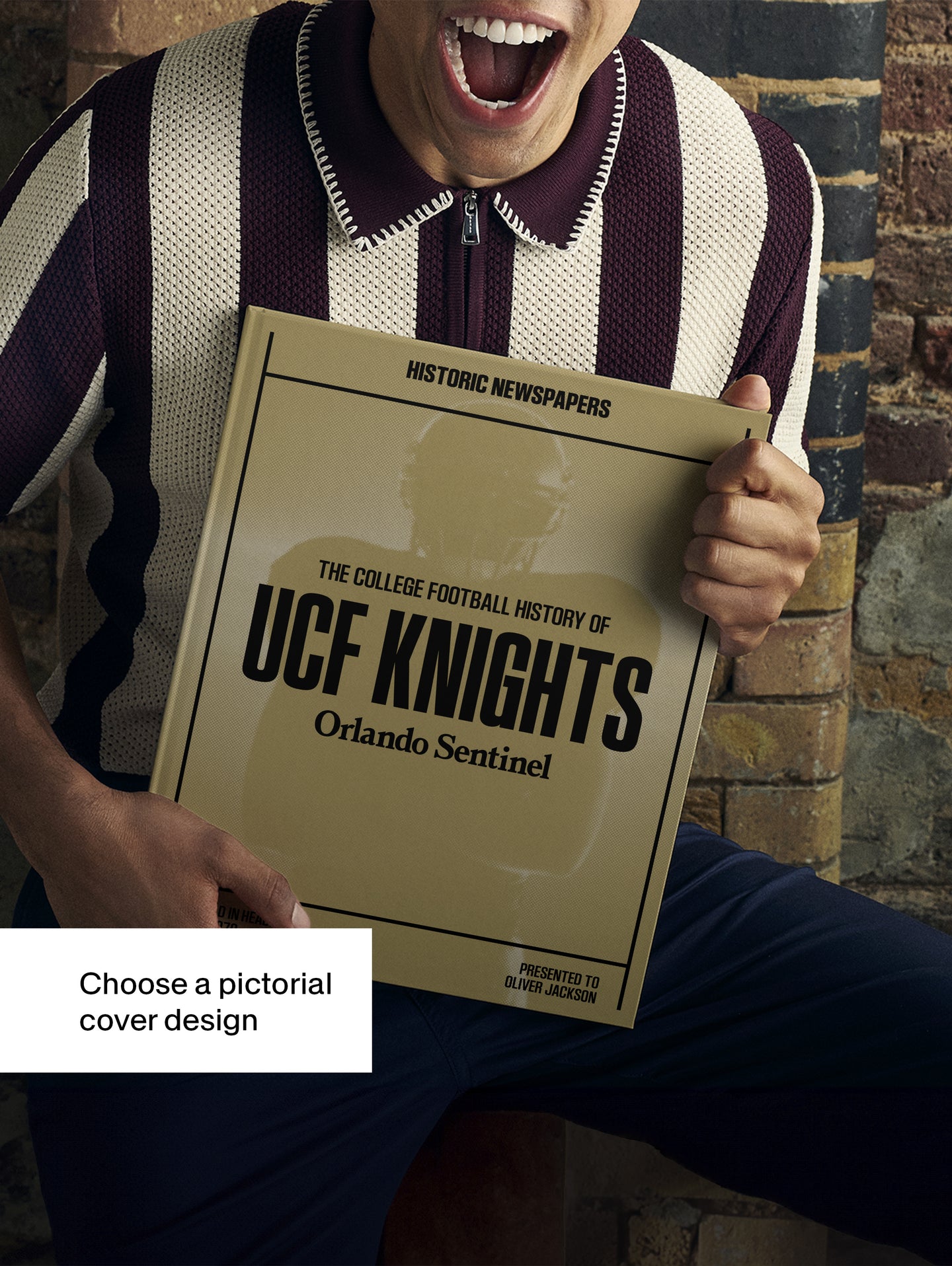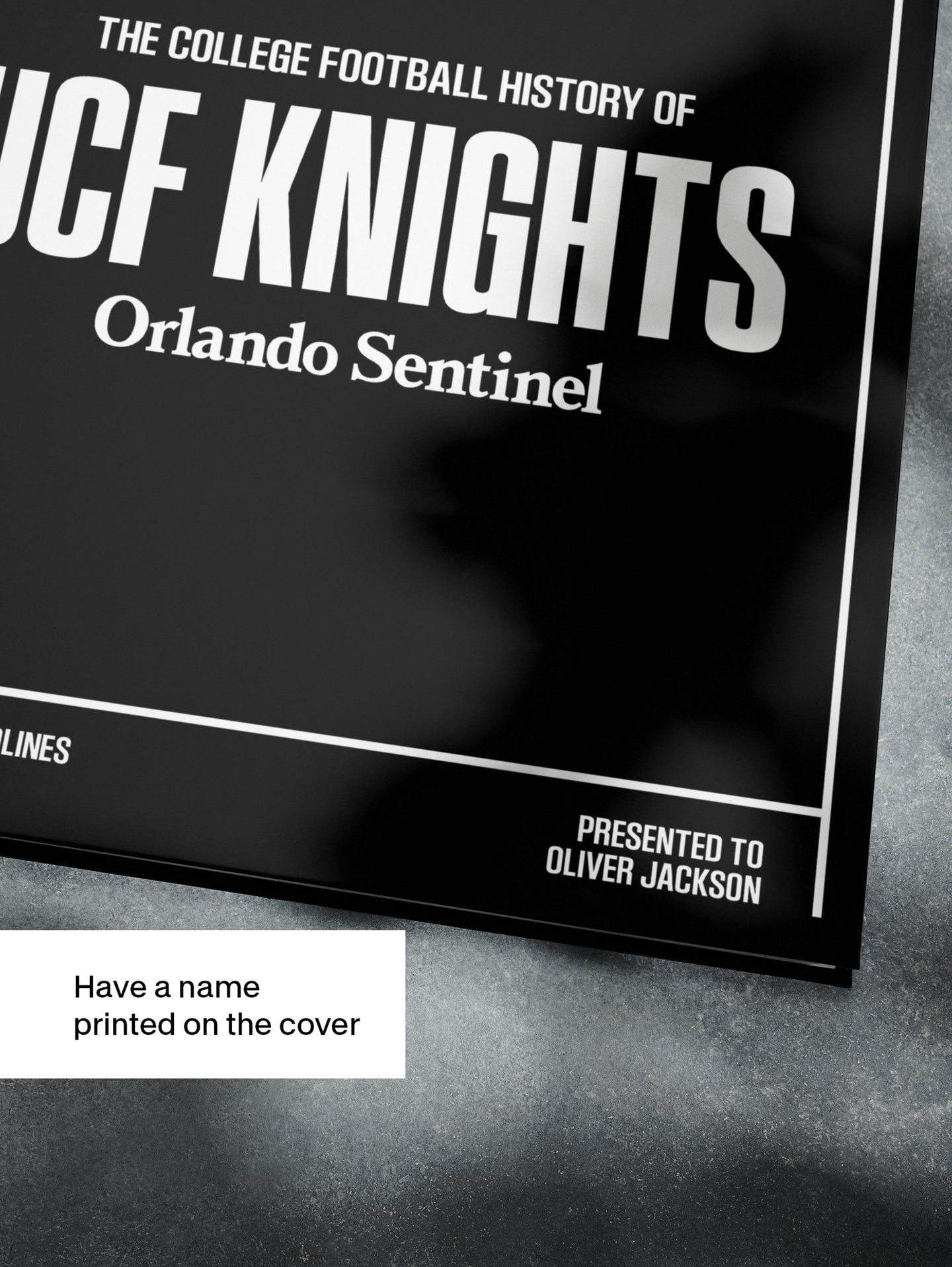 This coffee-table book features over 150 pages of authentic Orlando Sentinel newspaper reports about The History of UCF Knights College Football. It comes with a choice of covers and the option to have the recipient’s name printed on the cover for free.