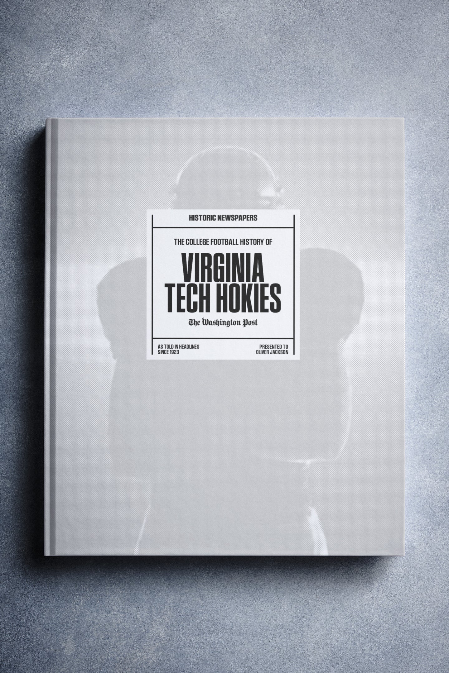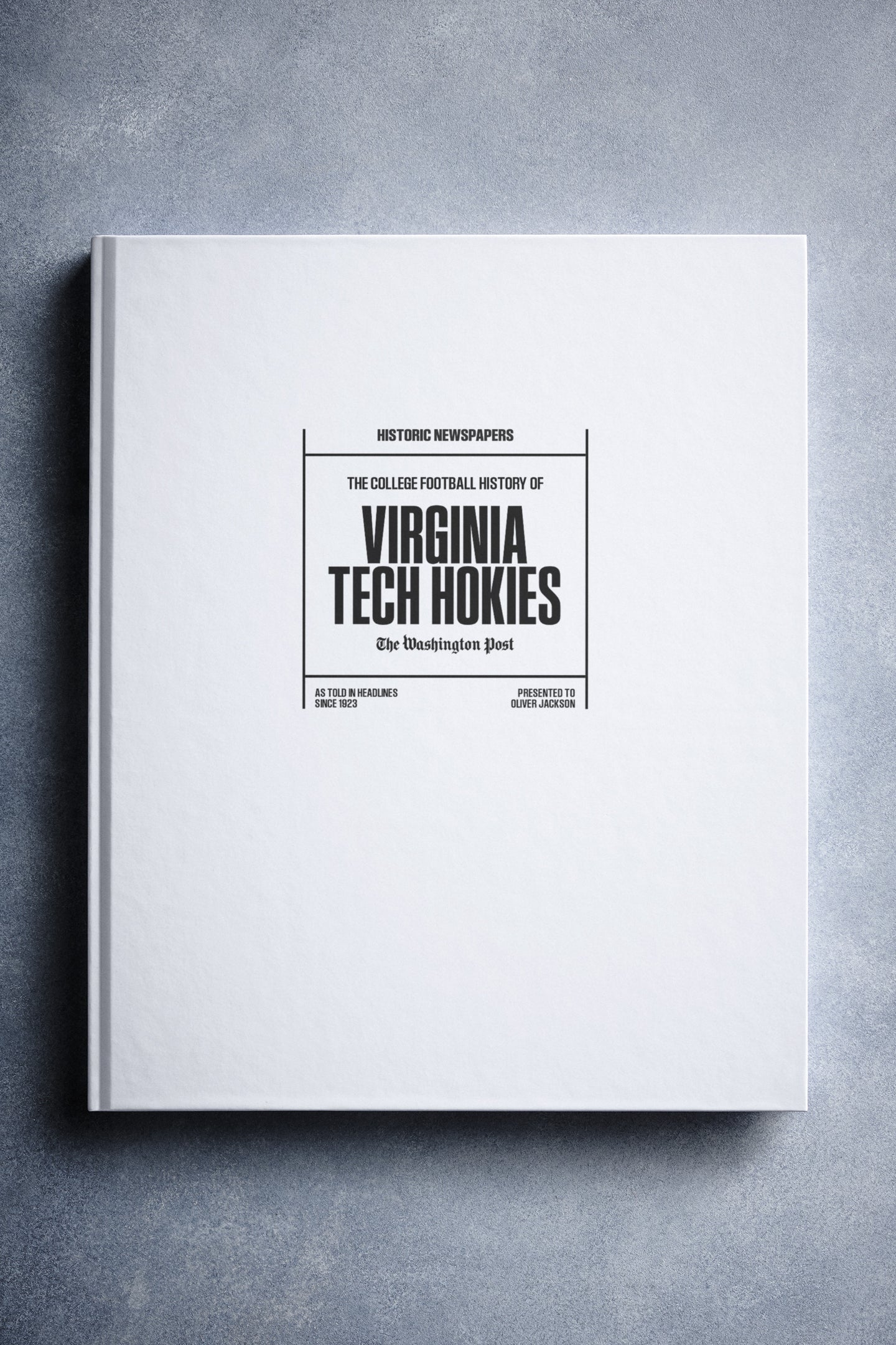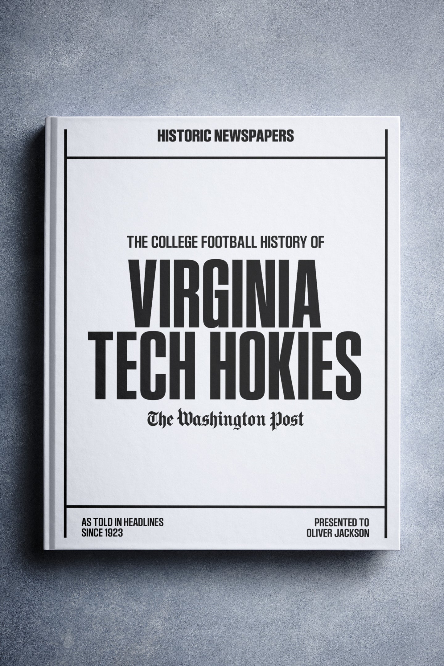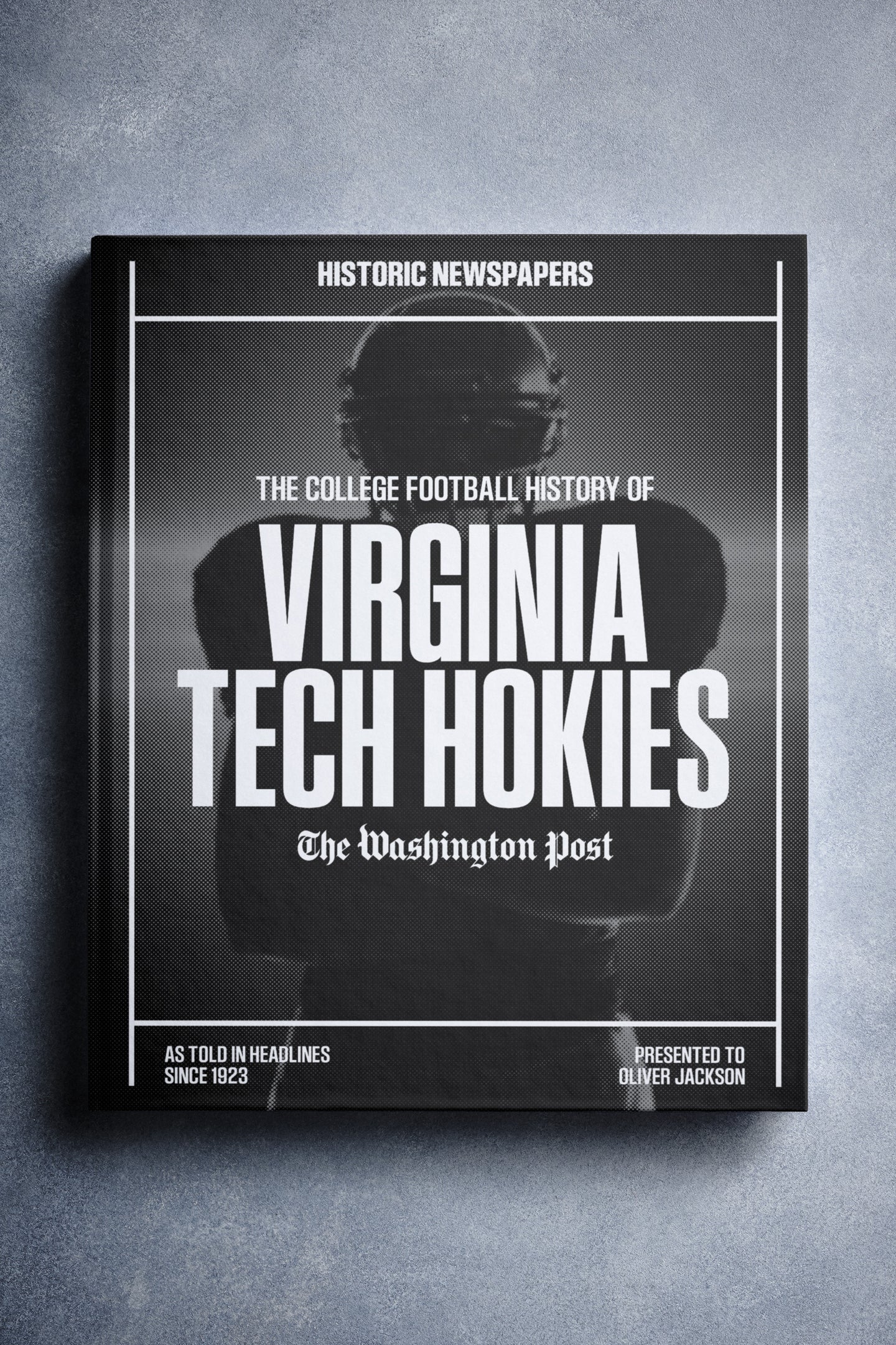 This coffee-table book features over 150 pages of authentic Washington Post newspaper reports about The History of Virginia Tech Hokies College Football. It comes with a choice of covers and the option to have the recipient’s name printed on the cover for free.