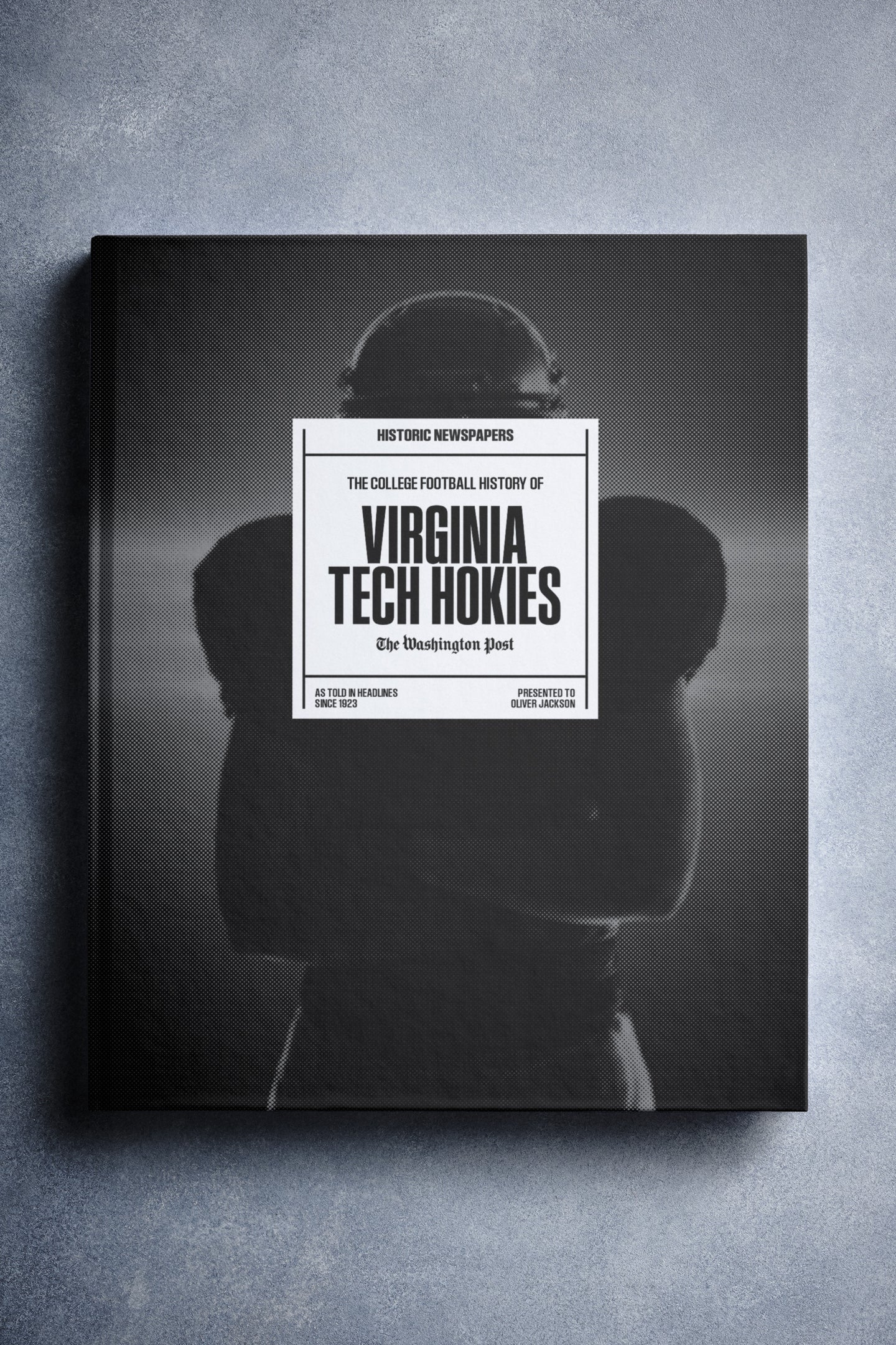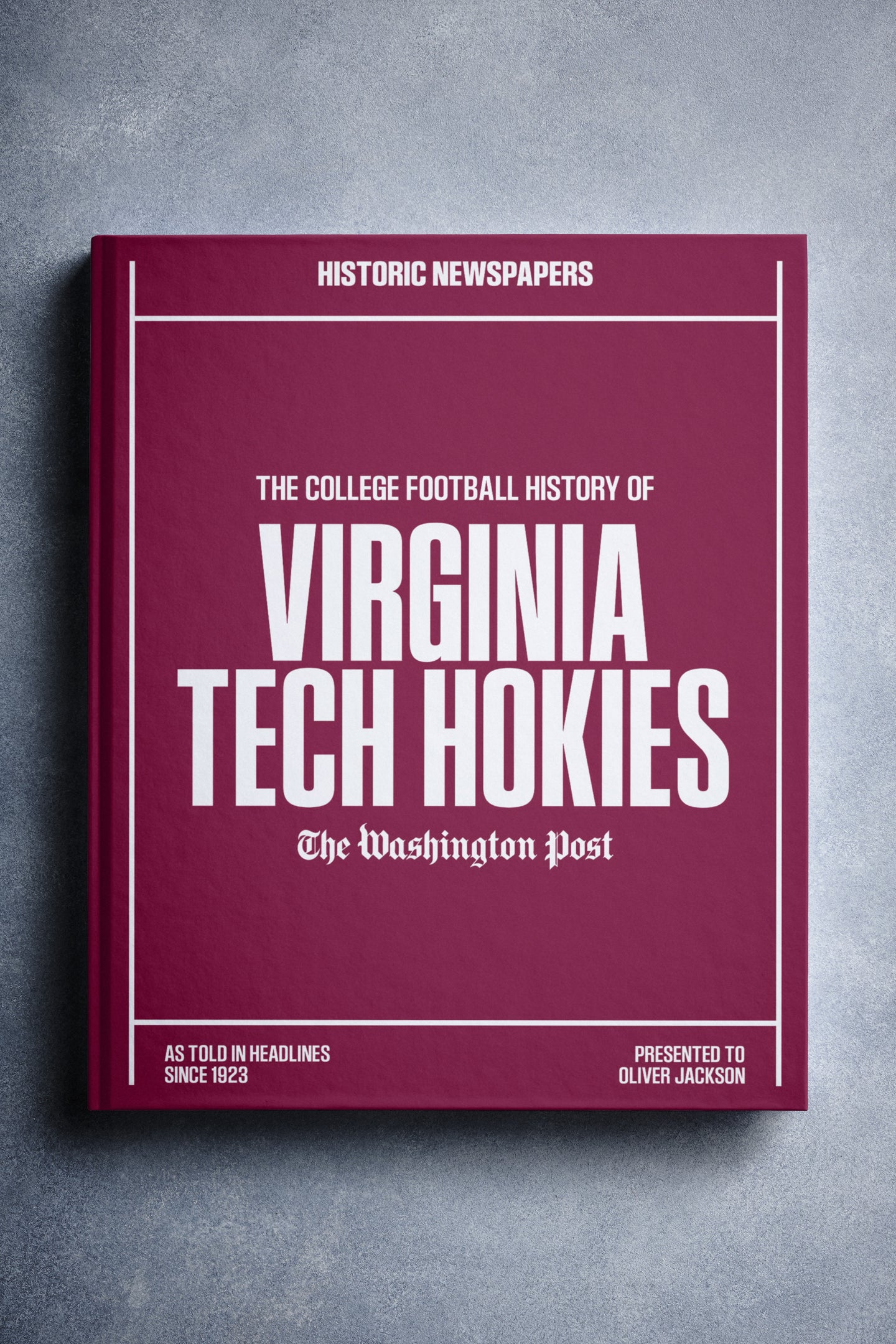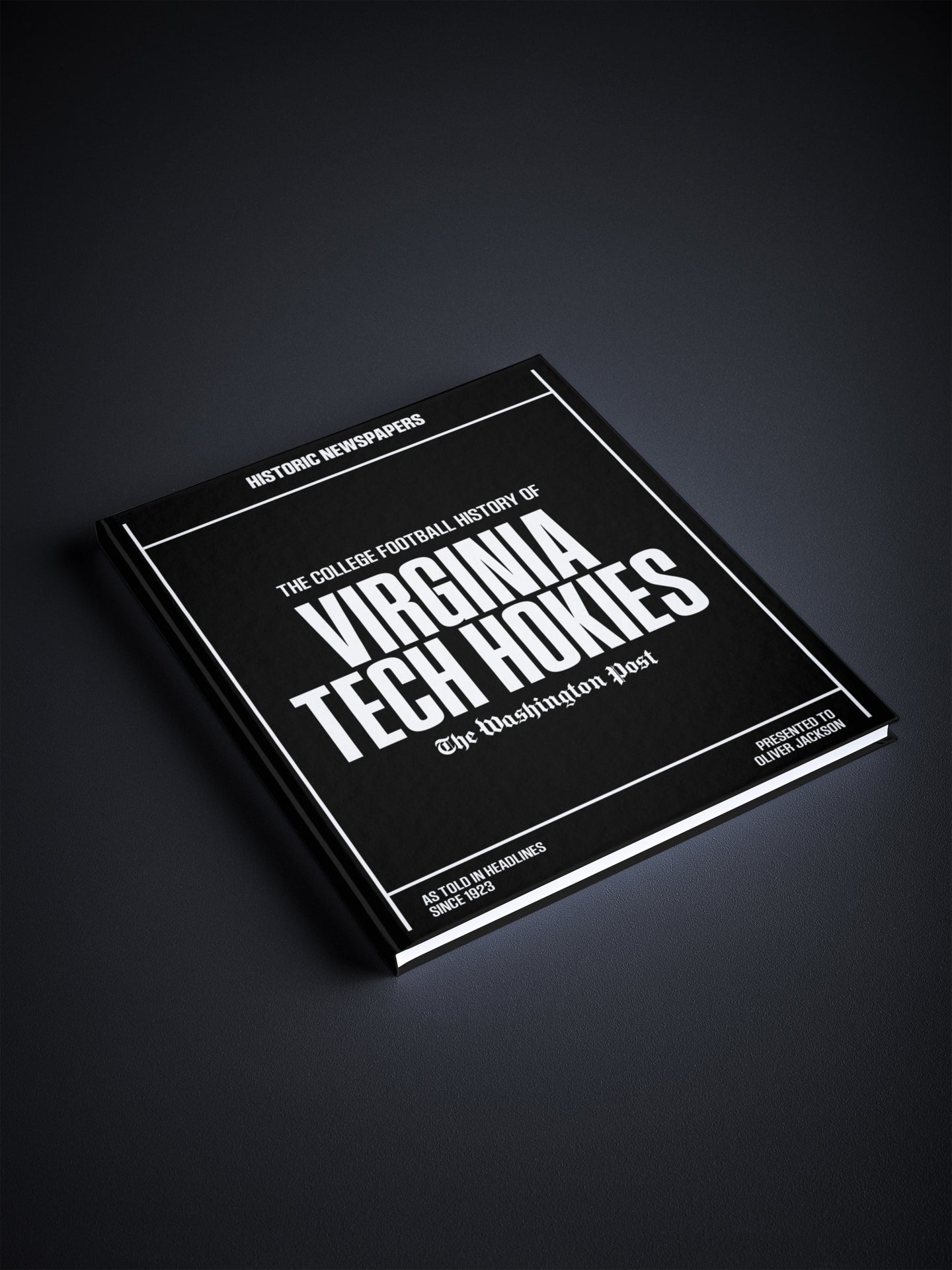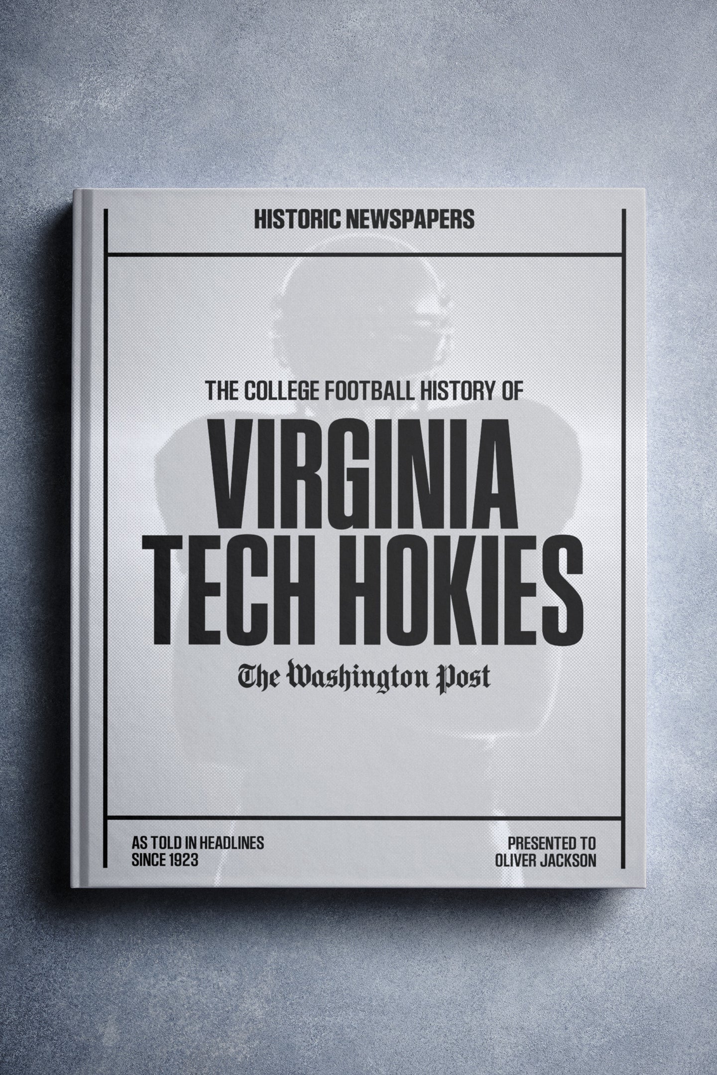 This coffee-table book features over 150 pages of authentic Washington Post newspaper reports about The History of Virginia Tech Hokies College Football. It comes with a choice of covers and the option to have the recipient’s name printed on the cover for free.