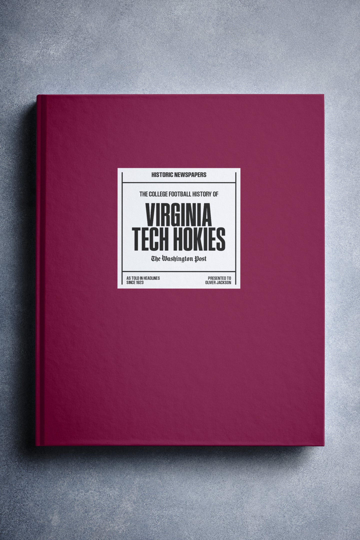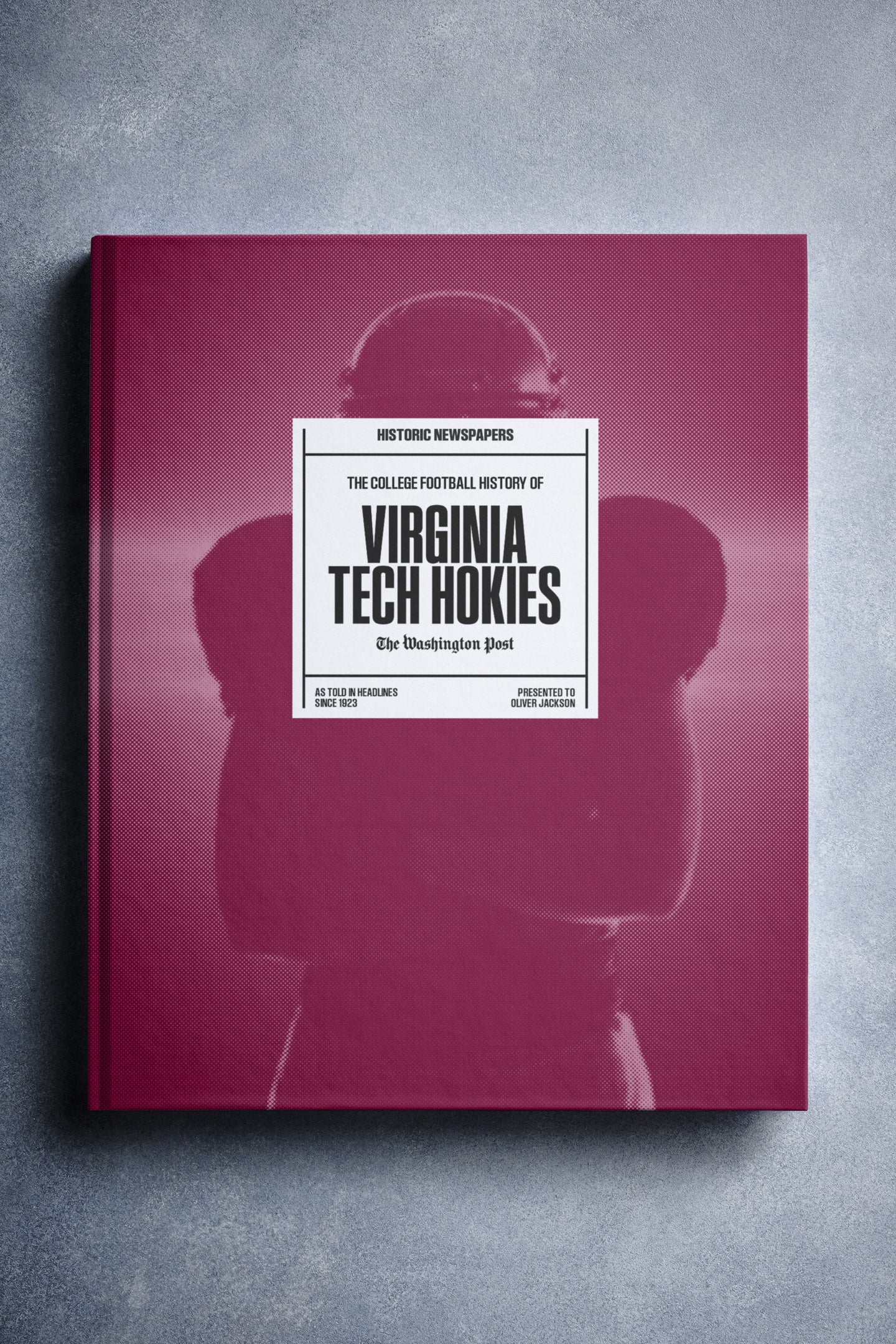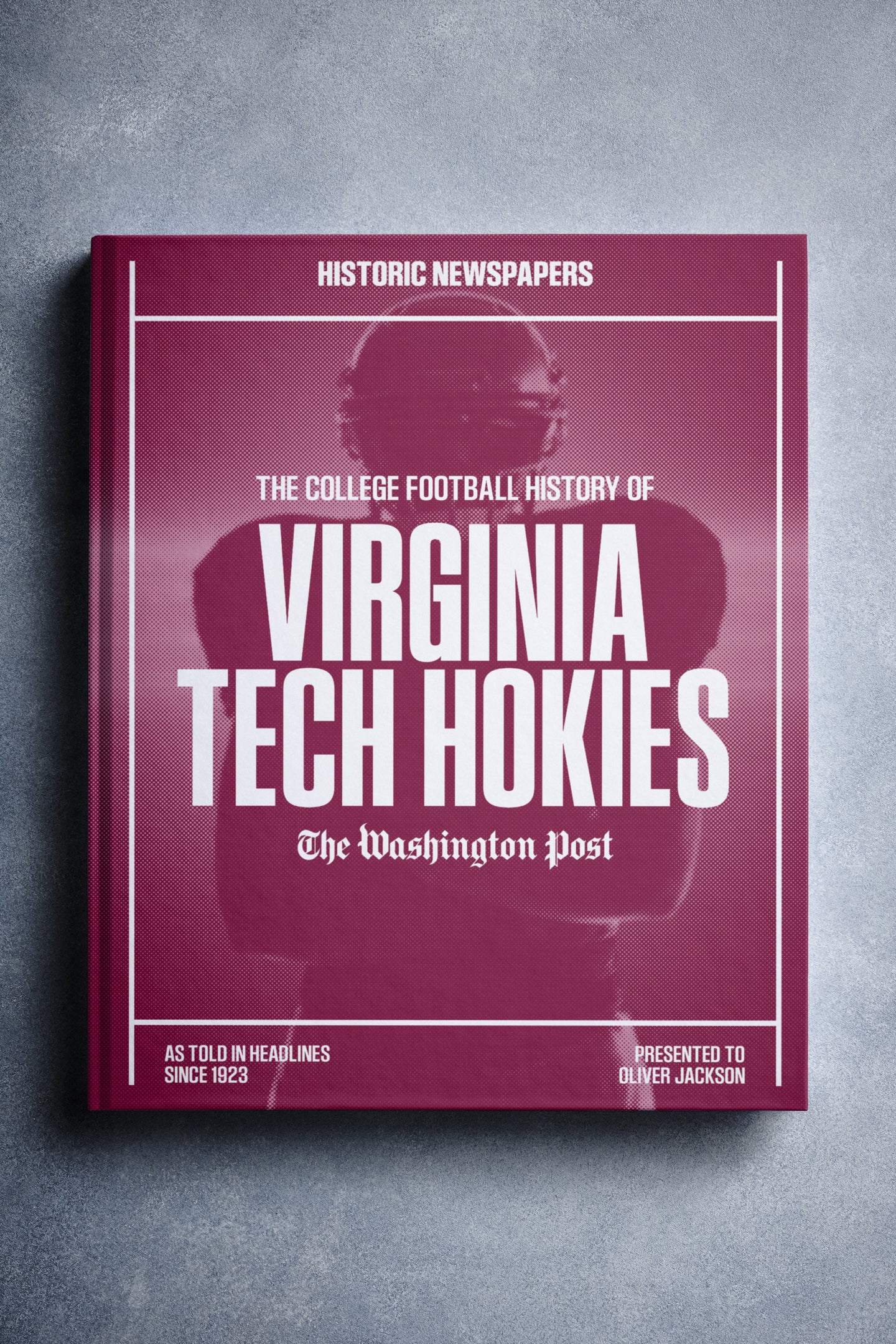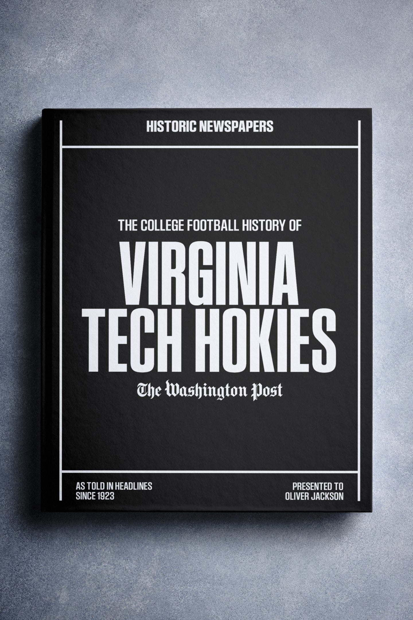 This coffee-table book features over 150 pages of authentic Washington Post newspaper reports about The History of Virginia Tech Hokies College Football. It comes with a choice of covers and the option to have the recipient’s name printed on the cover for free.
