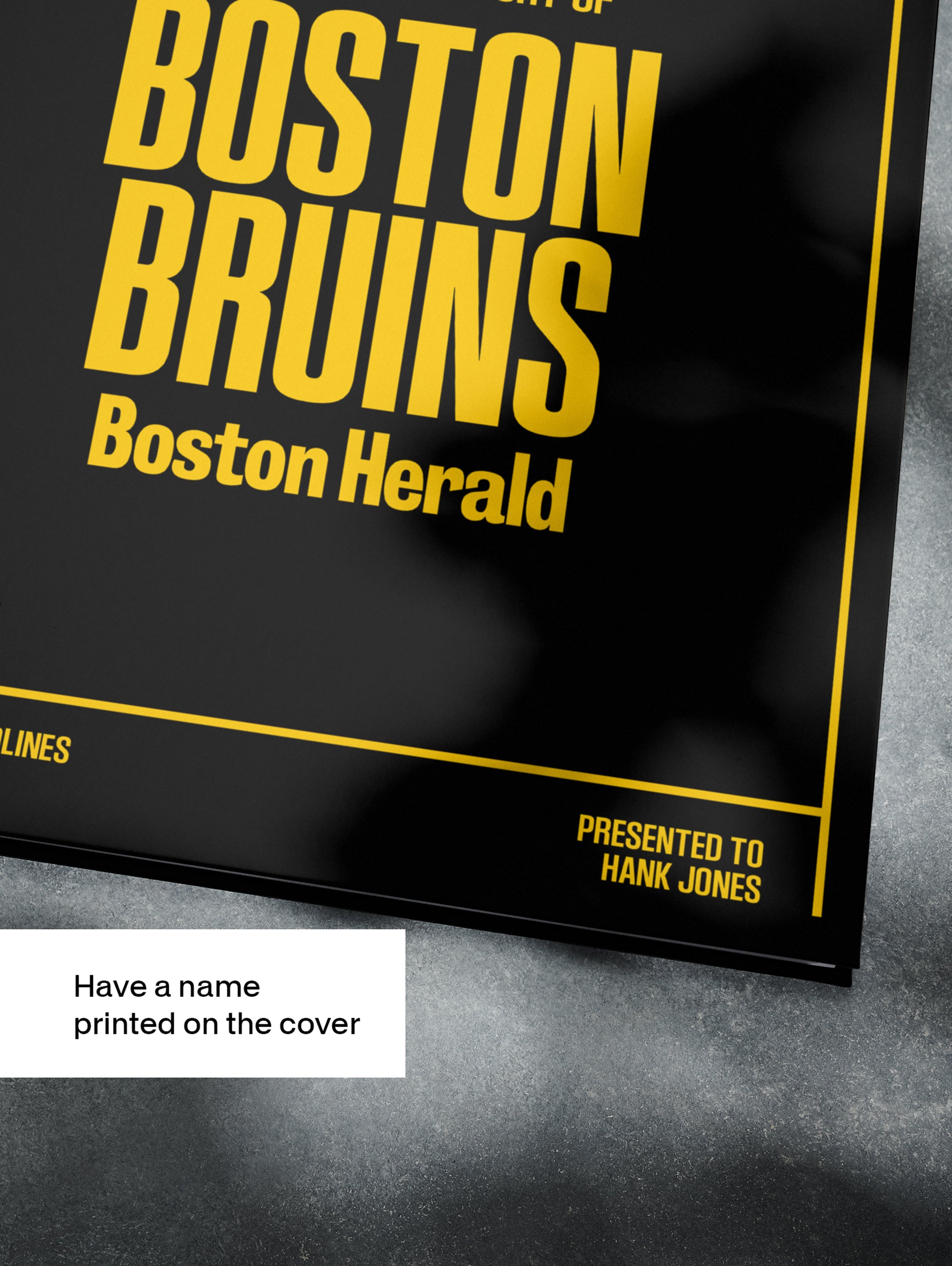 FOLLOW the story of the Boston Bruins from 1924 onwards, told through original newspaper reports as they were published at the time. From Bobby Orr’s iconic overtime goal against St. Louis Blues to win the Stanley Cup in 1970, to defeating the Vancouver Canucks 4–0 in Game 7 to win the 2011 Stanley Cup, and the record 65 wins and 135 points in the 2022–2023 season. Choose from a range of book covers and personalise your book with a name and message to create a lasting keepsake. A piece of Bruins history to gift, share, and relive.