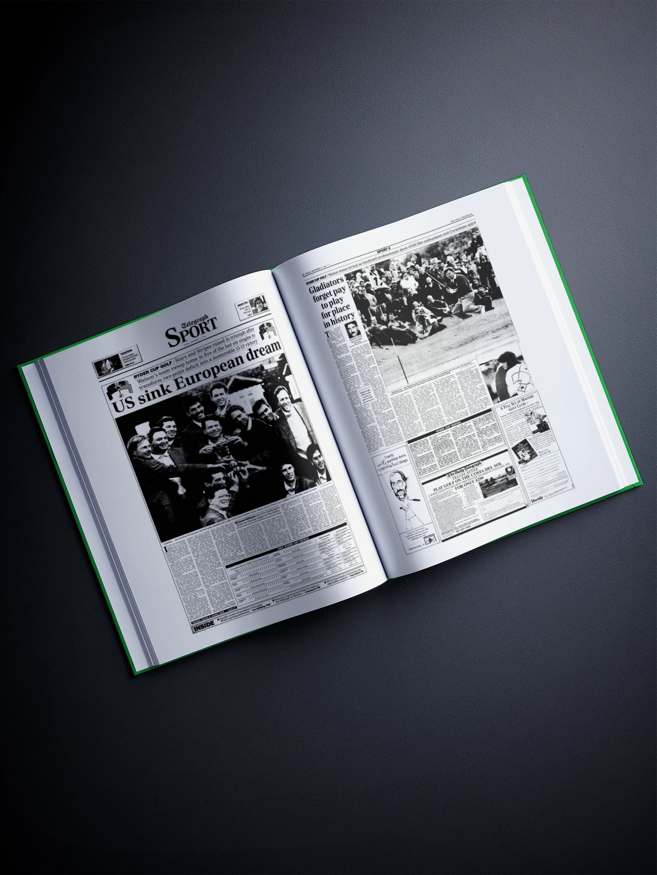 FOLLOW the story of Europe vs the USA – The Ryder Cup Tournament from 1979 onwards, told through original newspaper reports as they were published at the time. From when Europe succeeded Great Britain & Ireland as the USA’s opponents in 1979, all the way through to the most recent tournament where the USA’s fightback took it down to the wire. Choose from a range of book covers and personalise your book with a name and message to create a lasting keepsake. A piece of Golf history to gift, share, and relive.