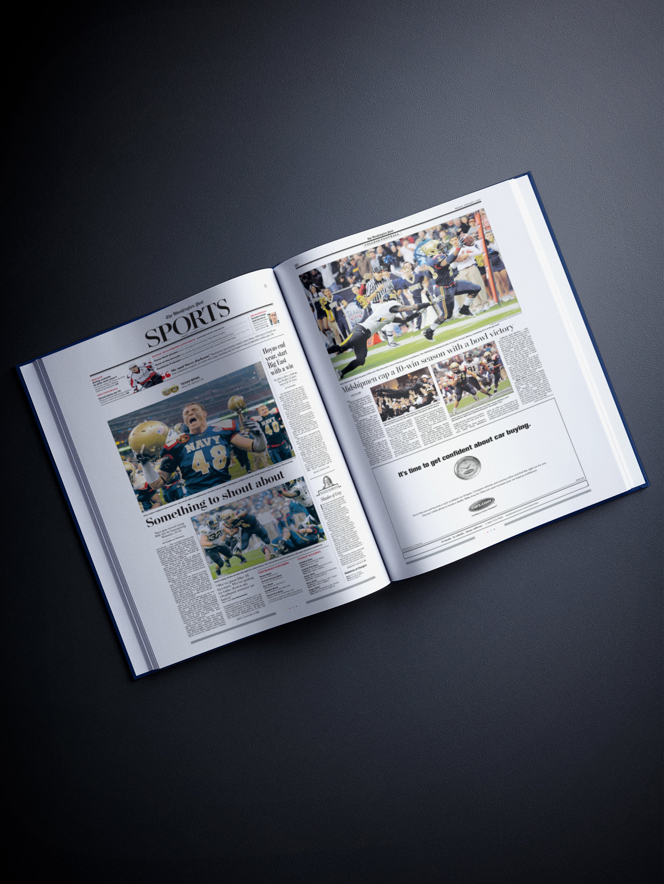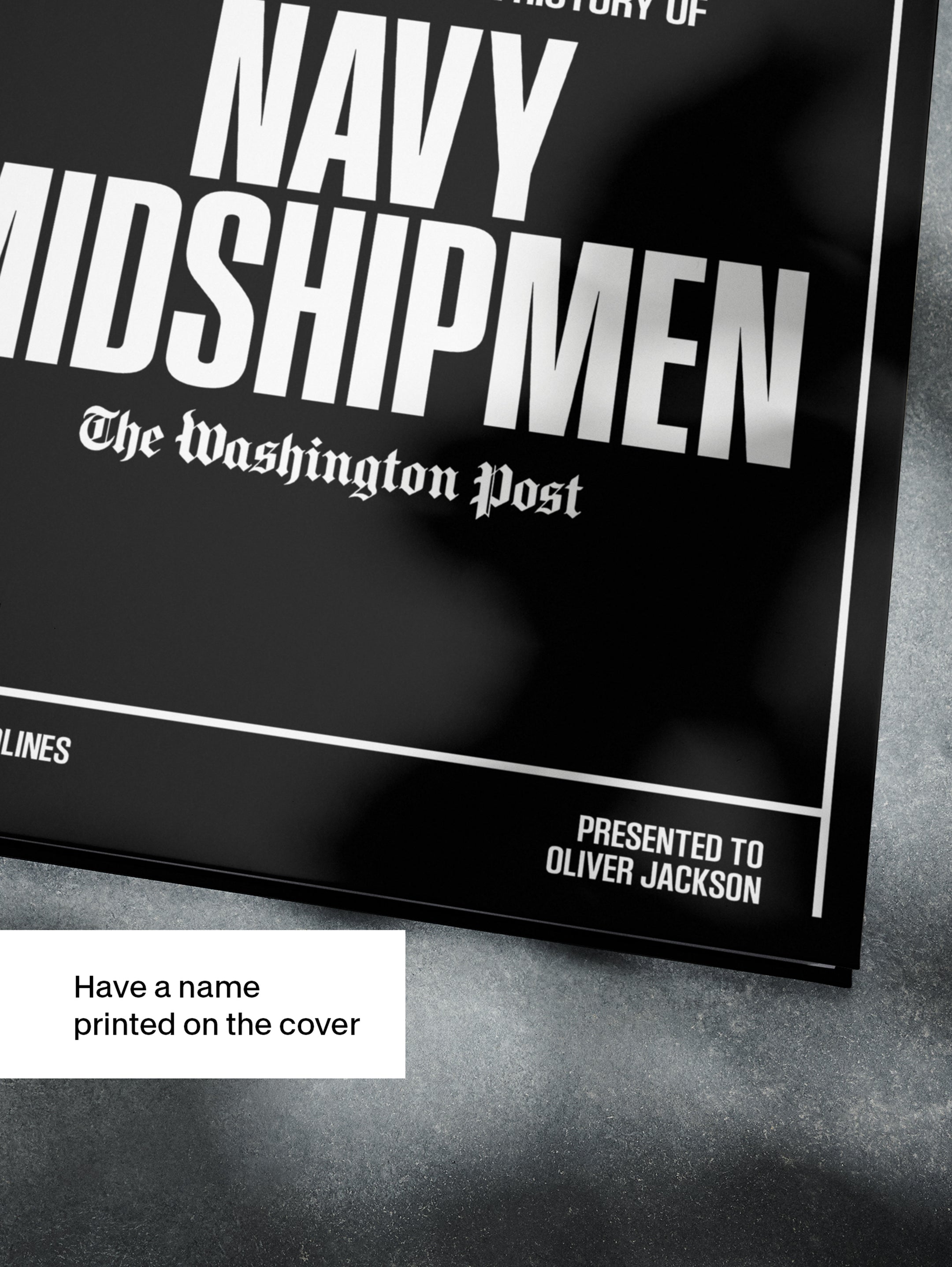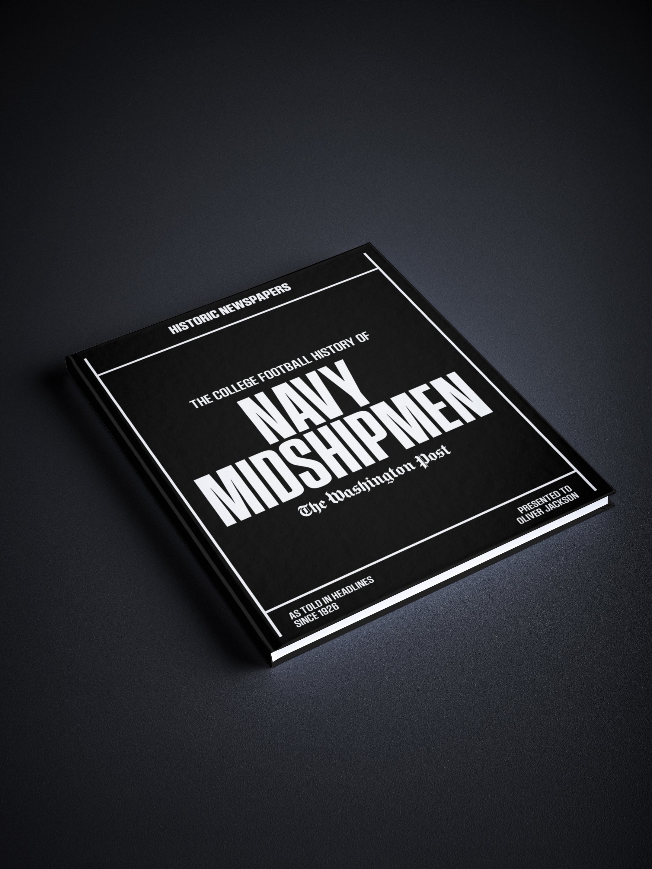 This coffee-table book features over 150 pages of authentic Washington Post newspaper reports about The History of Navy Midshipmen College Football. It comes with a choice of covers and the option to have the recipient’s name printed on the cover for free.