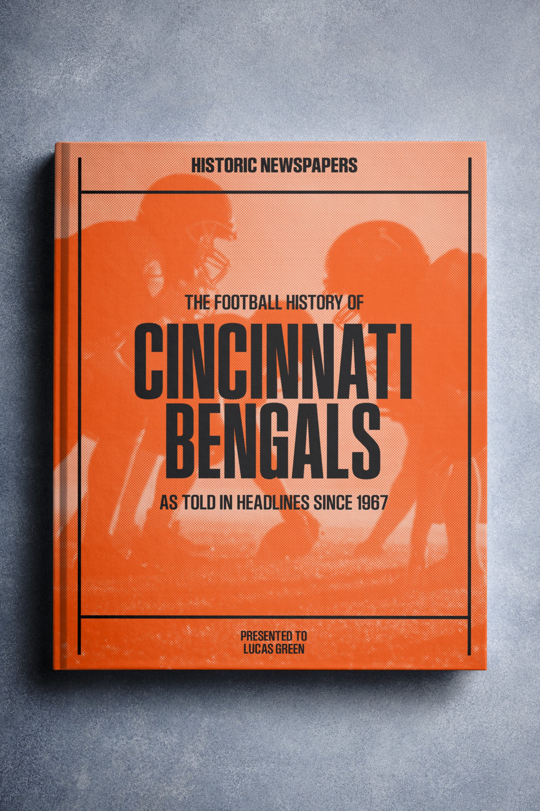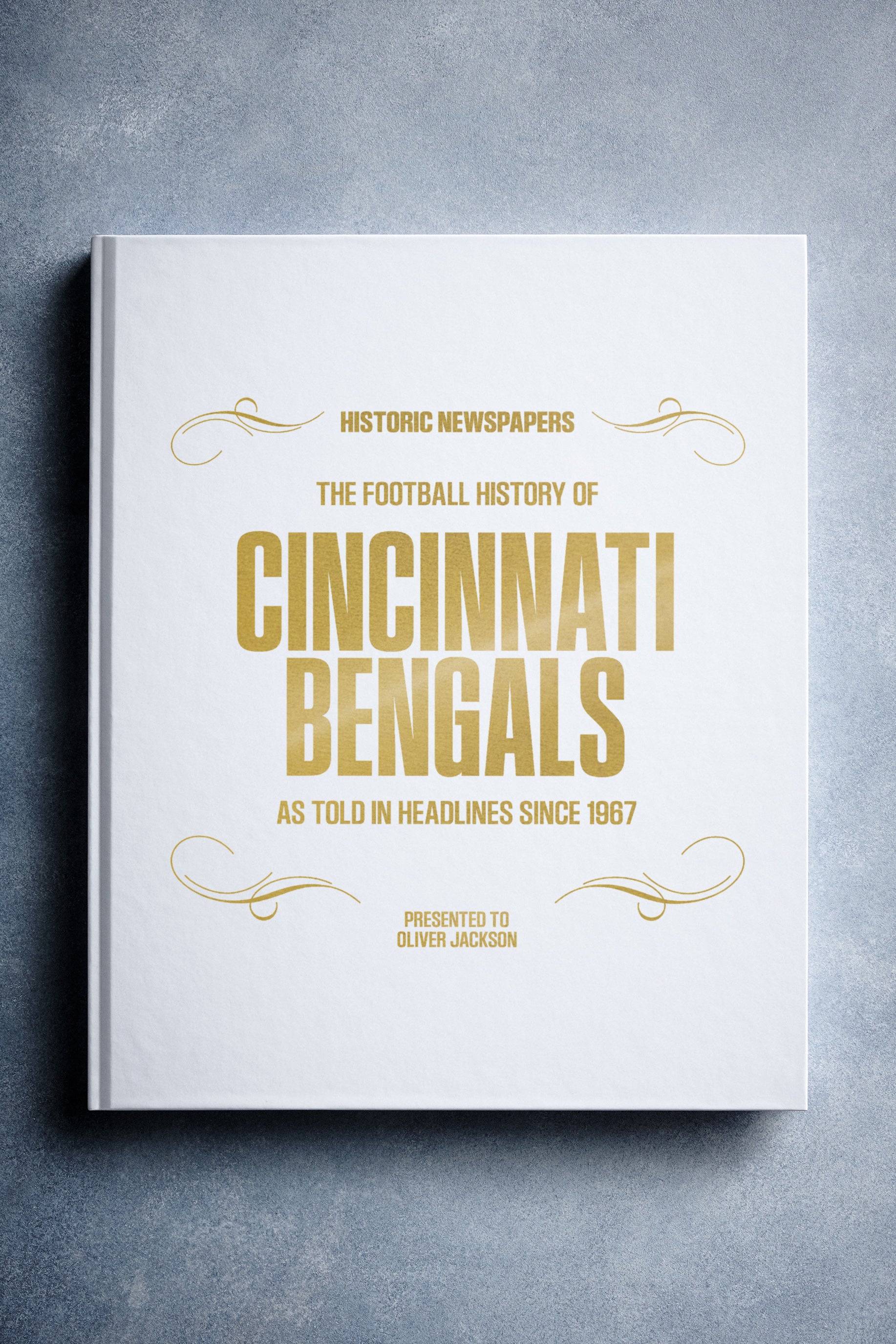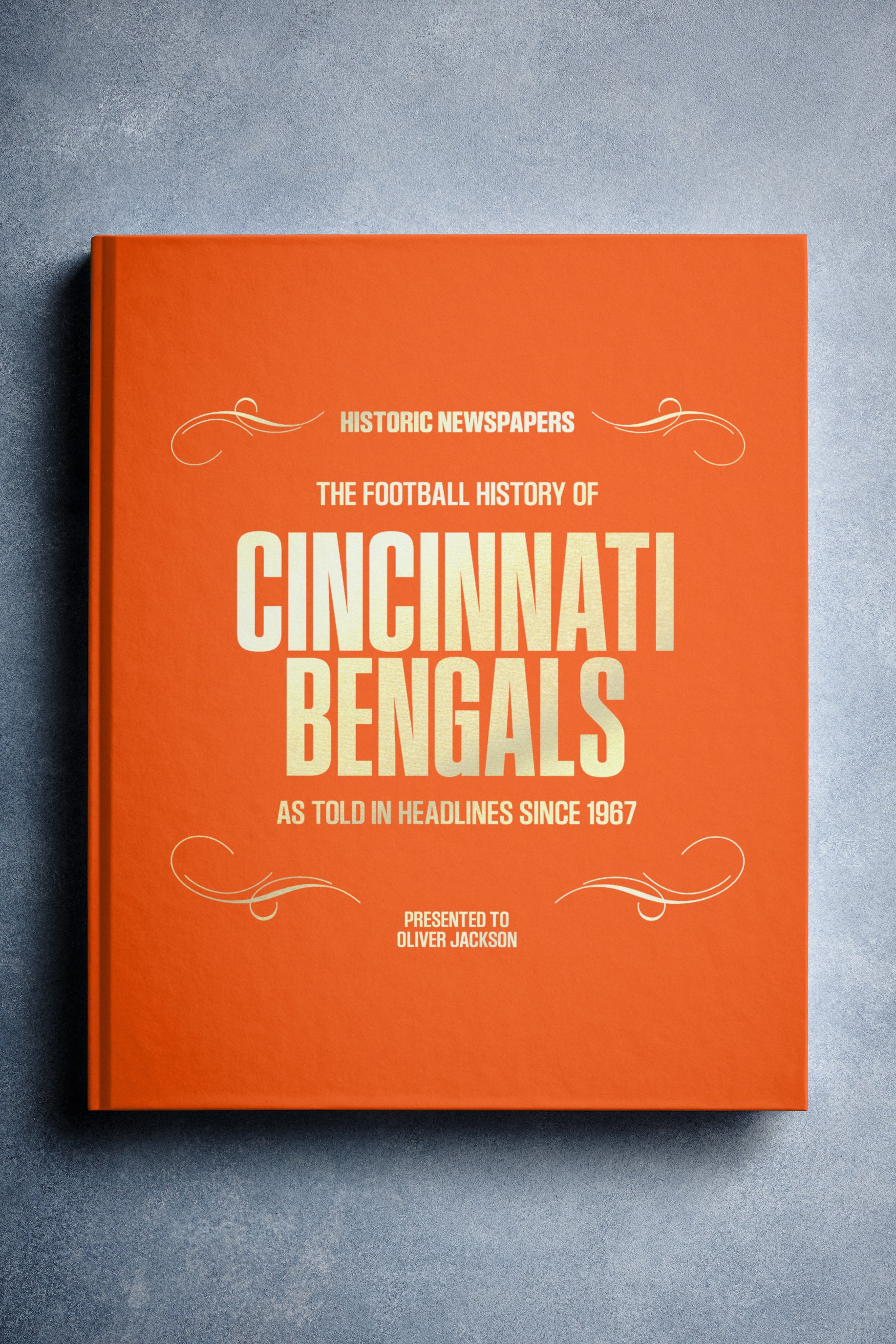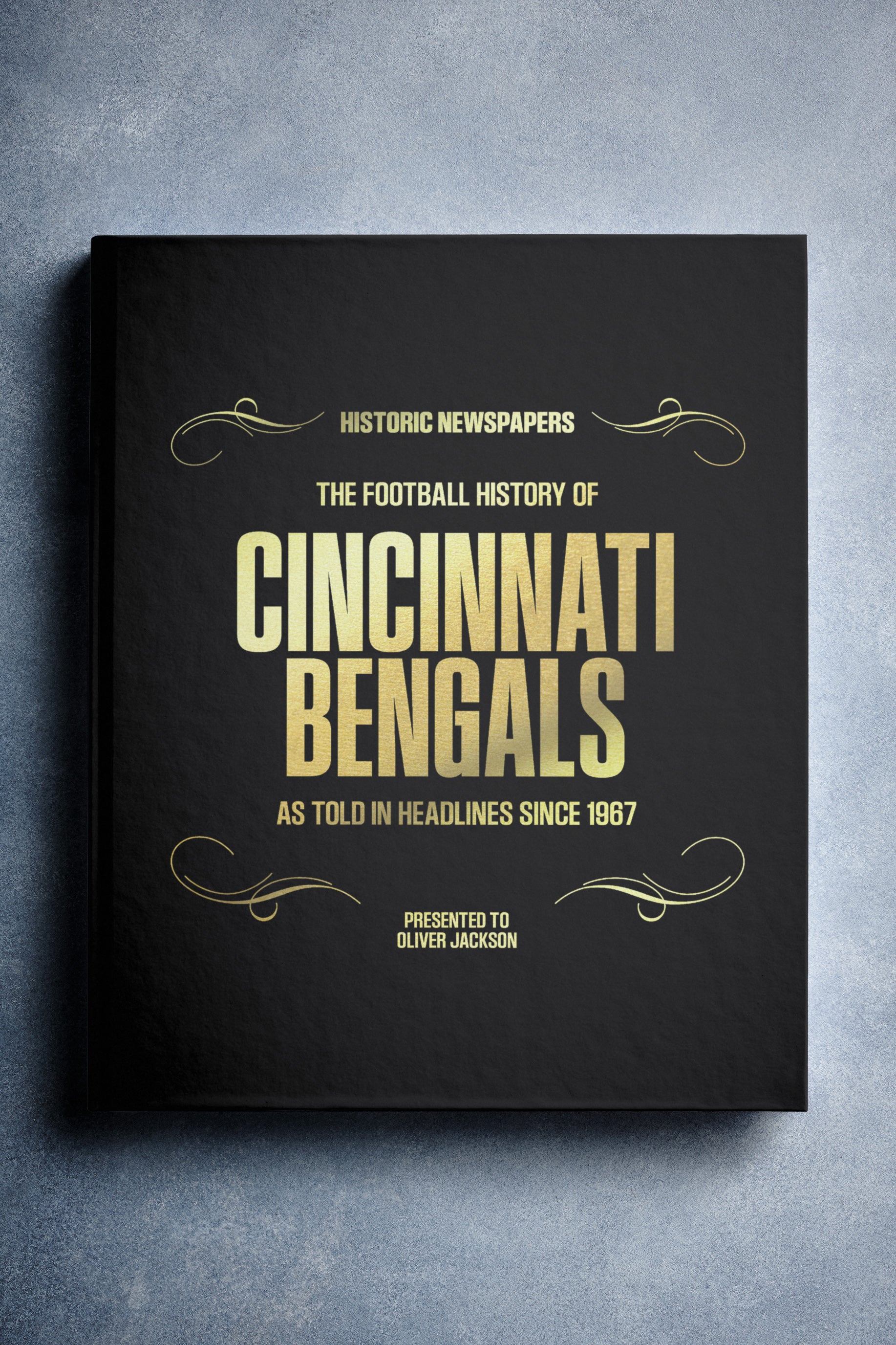 FOLLOW the story of the Cincinnati Bengals from 1967 onwards, told through original newspaper reports as they were published at the time. From winning their first AFC Championship in brutally cold weather against San Diego Chargers in January 1982, to clinching the 1988 AFC Central Division title on the final week of the season against Washington Redskins, and defeating the Buffalo Bills 21–10 in the AFC Championship in January 1989. Choose from a range of book covers and personalise your book with a name and message to create a lasting keepsake. A piece of Bengals history to gift, share, and relive.