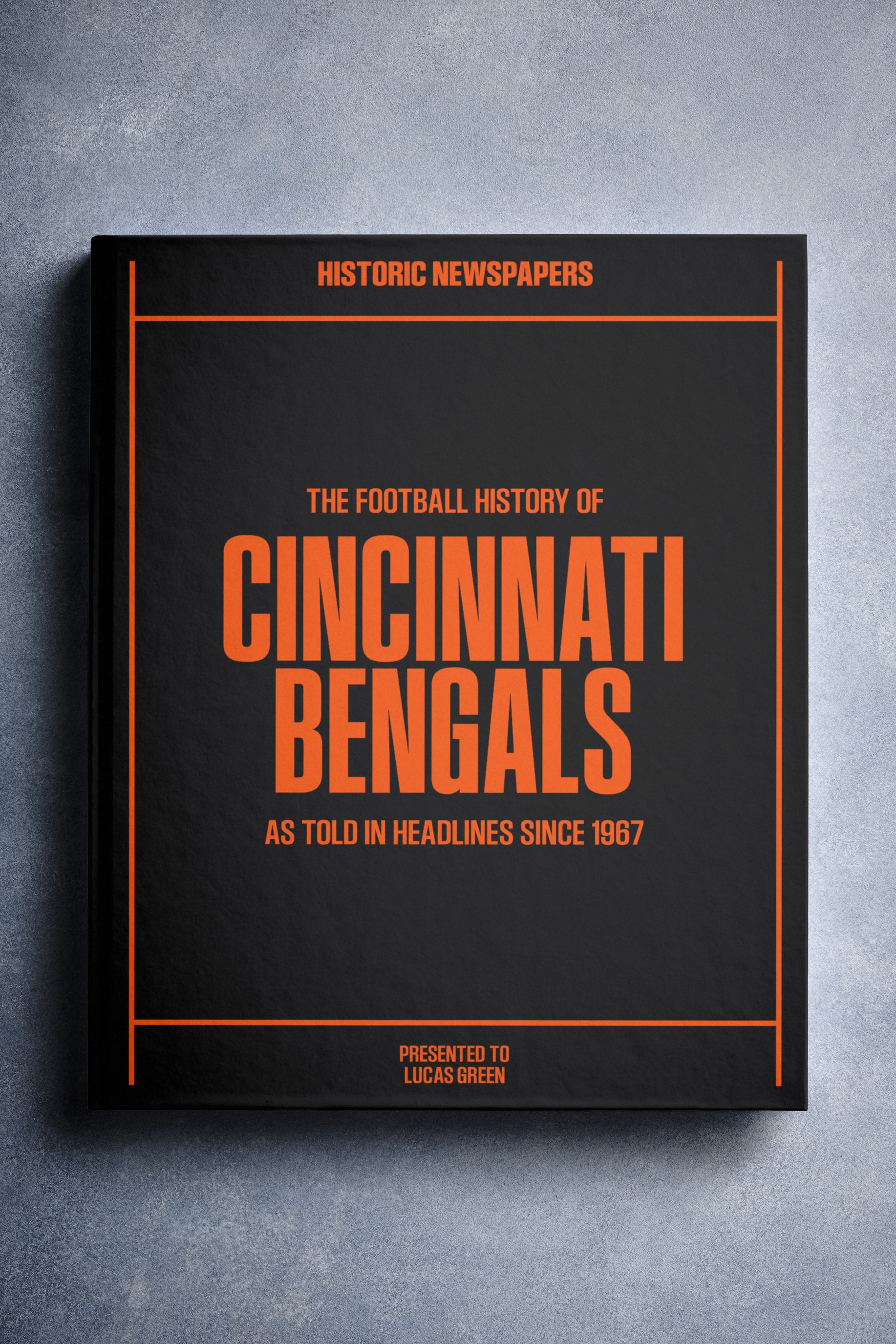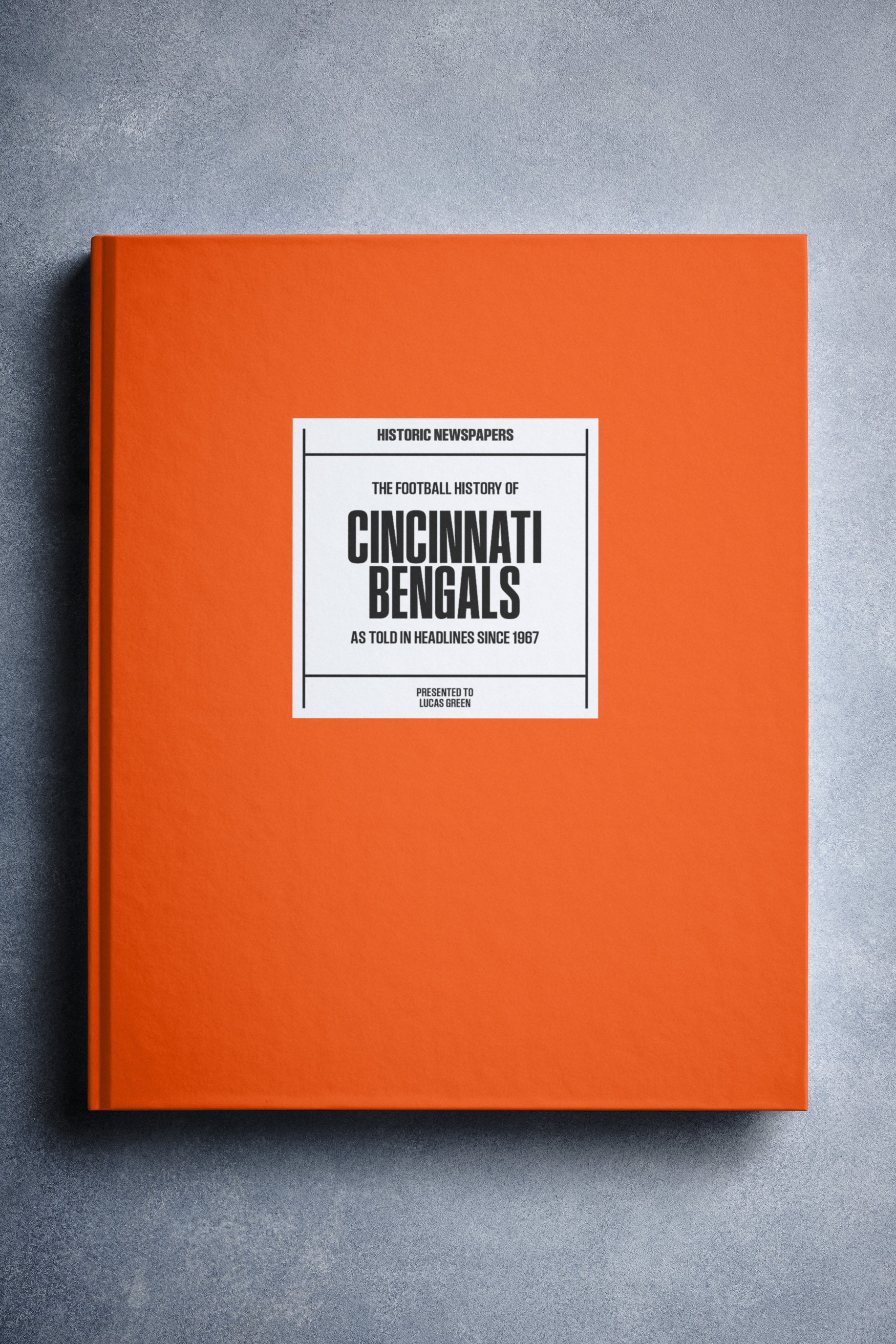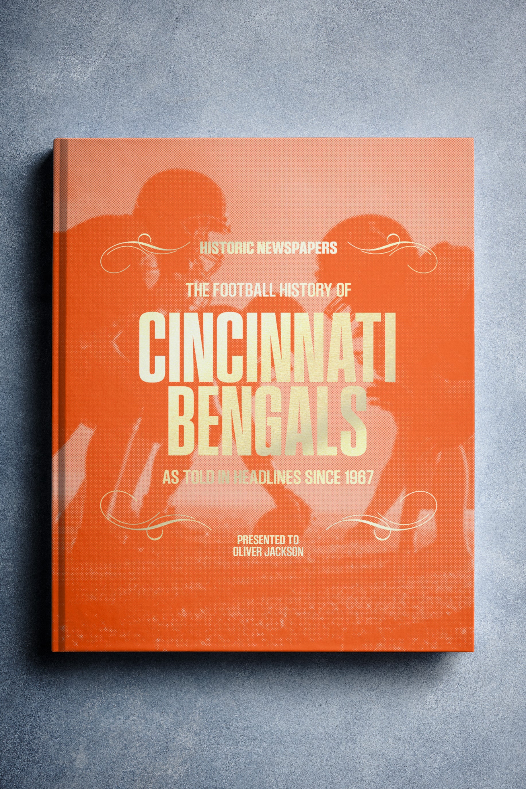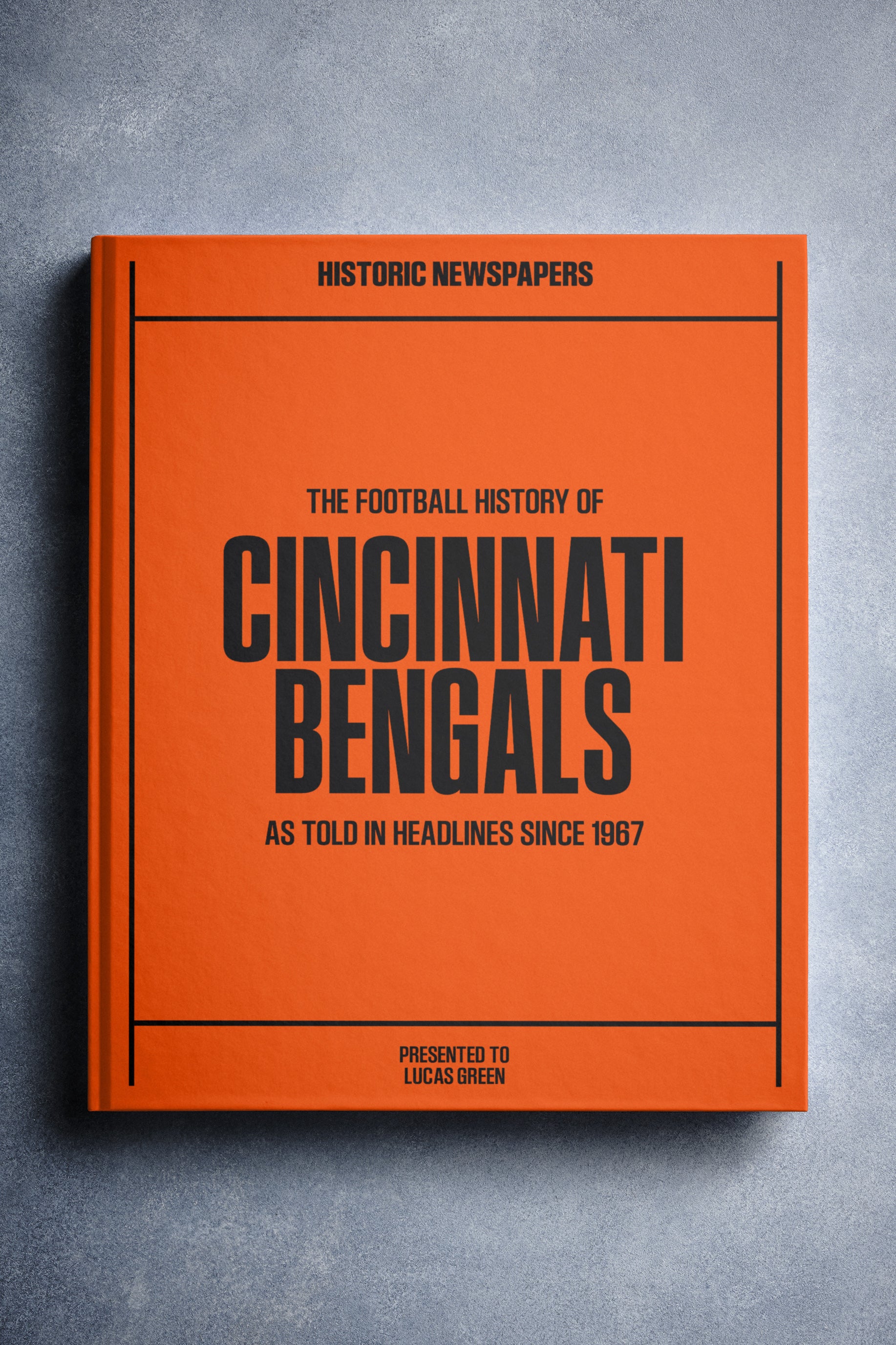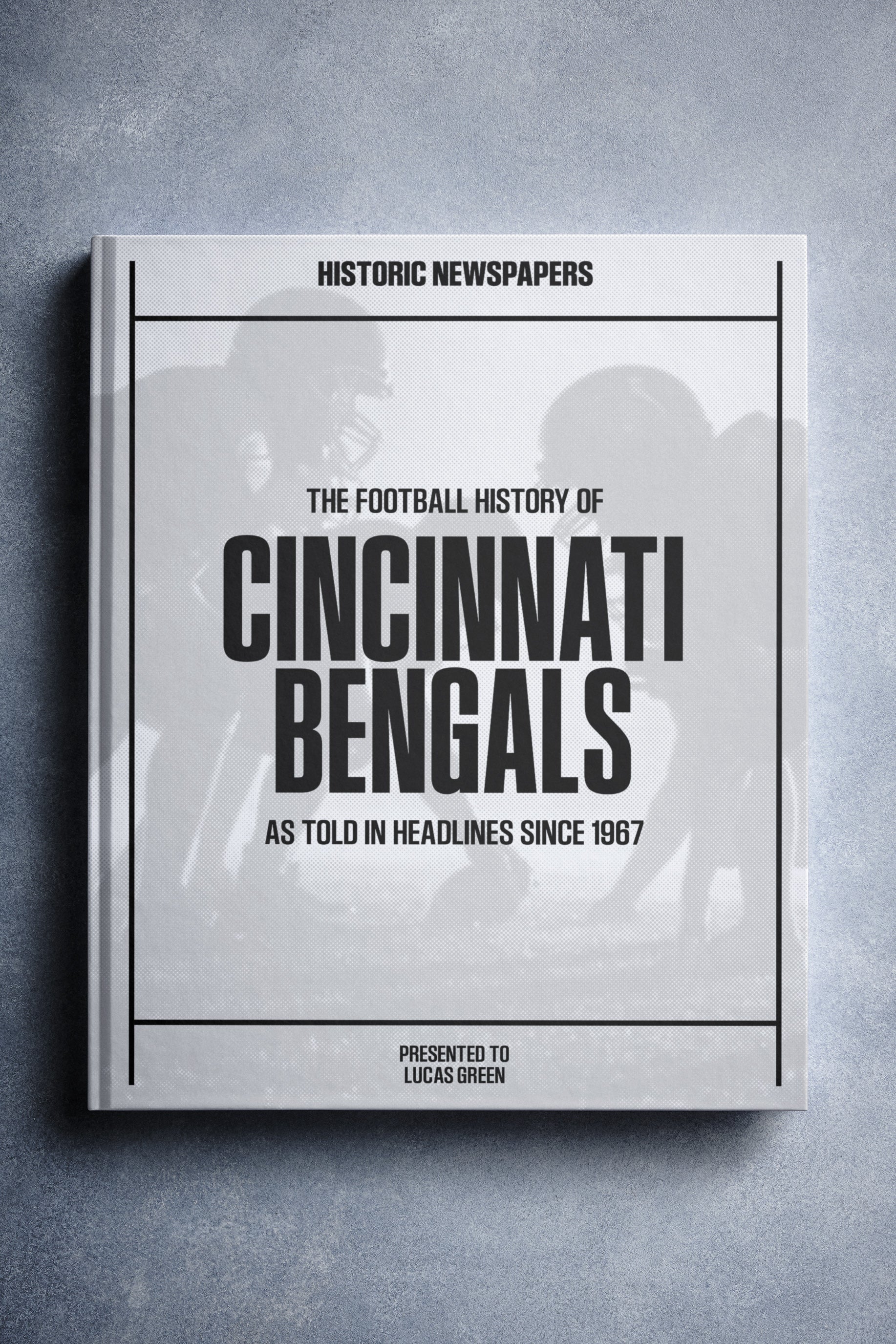FOLLOW the story of the Cincinnati Bengals from 1967 onwards, told through original newspaper reports as they were published at the time. From winning their first AFC Championship in brutally cold weather against San Diego Chargers in January 1982, to clinching the 1988 AFC Central Division title on the final week of the season against Washington Redskins, and defeating the Buffalo Bills 21–10 in the AFC Championship in January 1989. Choose from a range of book covers and personalise your book with a name and message to create a lasting keepsake. A piece of Bengals history to gift, share, and relive.