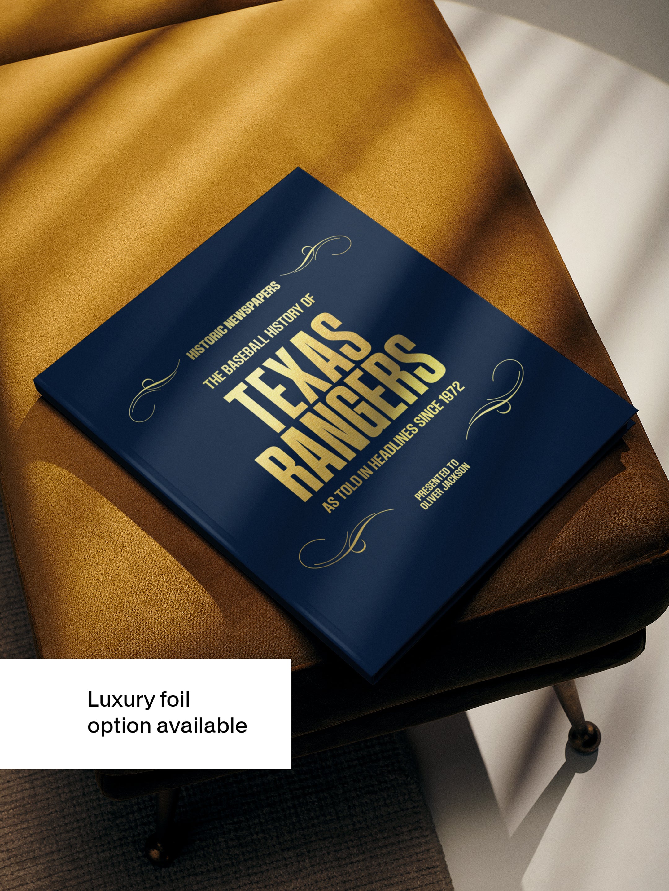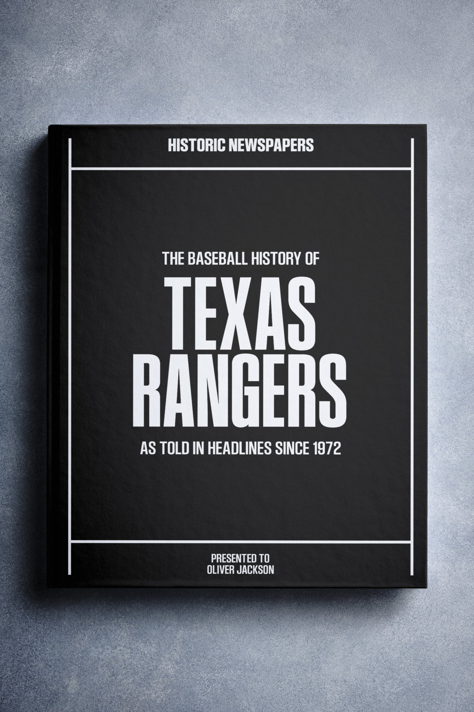 This coffee-table book features 150 pages of authentic Austin American-Statesman and Times Record News newspaper reports about The History of the Baseball. It comes with a choice of covers and the option to have the recipient’s name printed on the cover for free. This personalized baseball book honors the team’s legacy and is a top choice among Texas Rangers gifts.