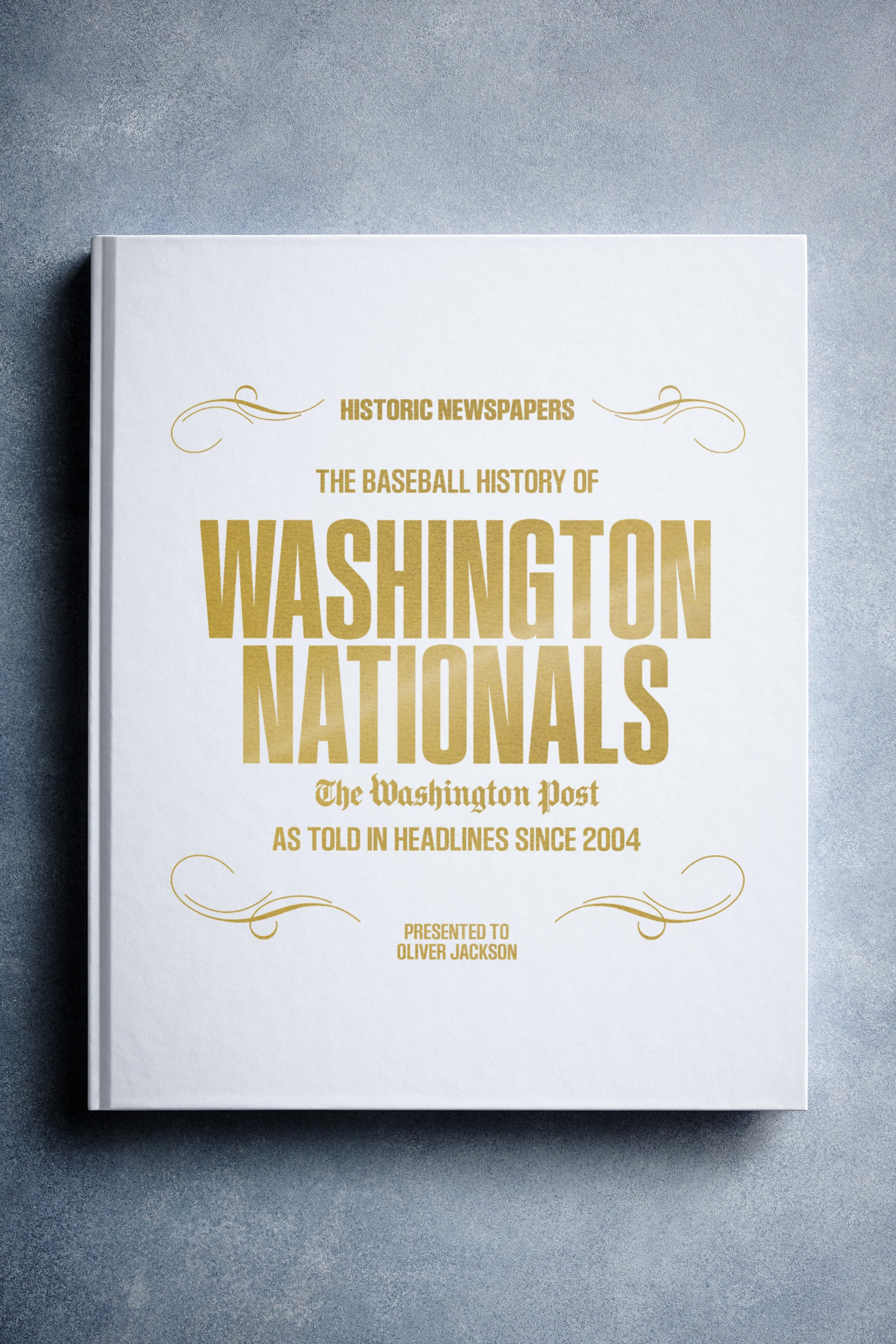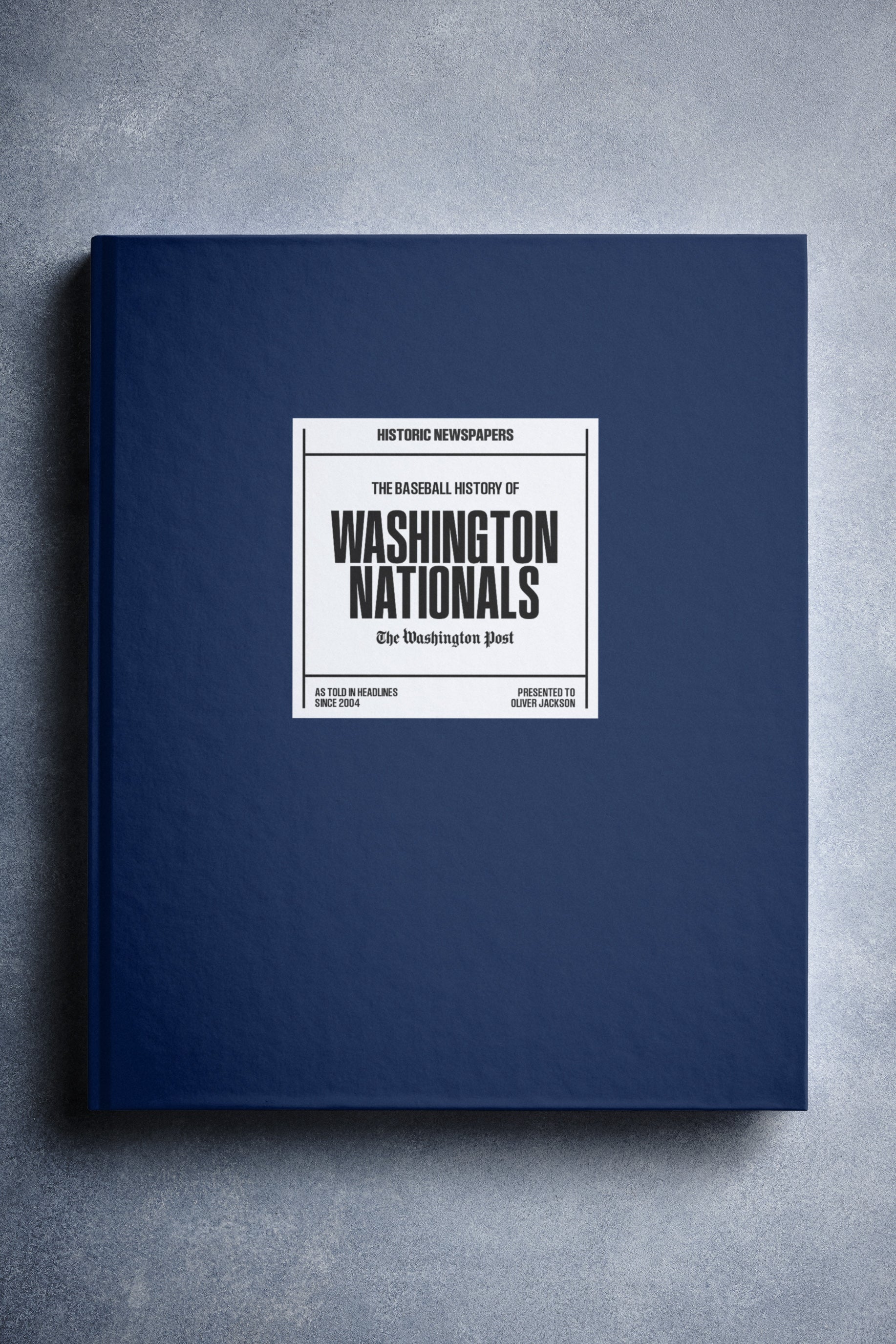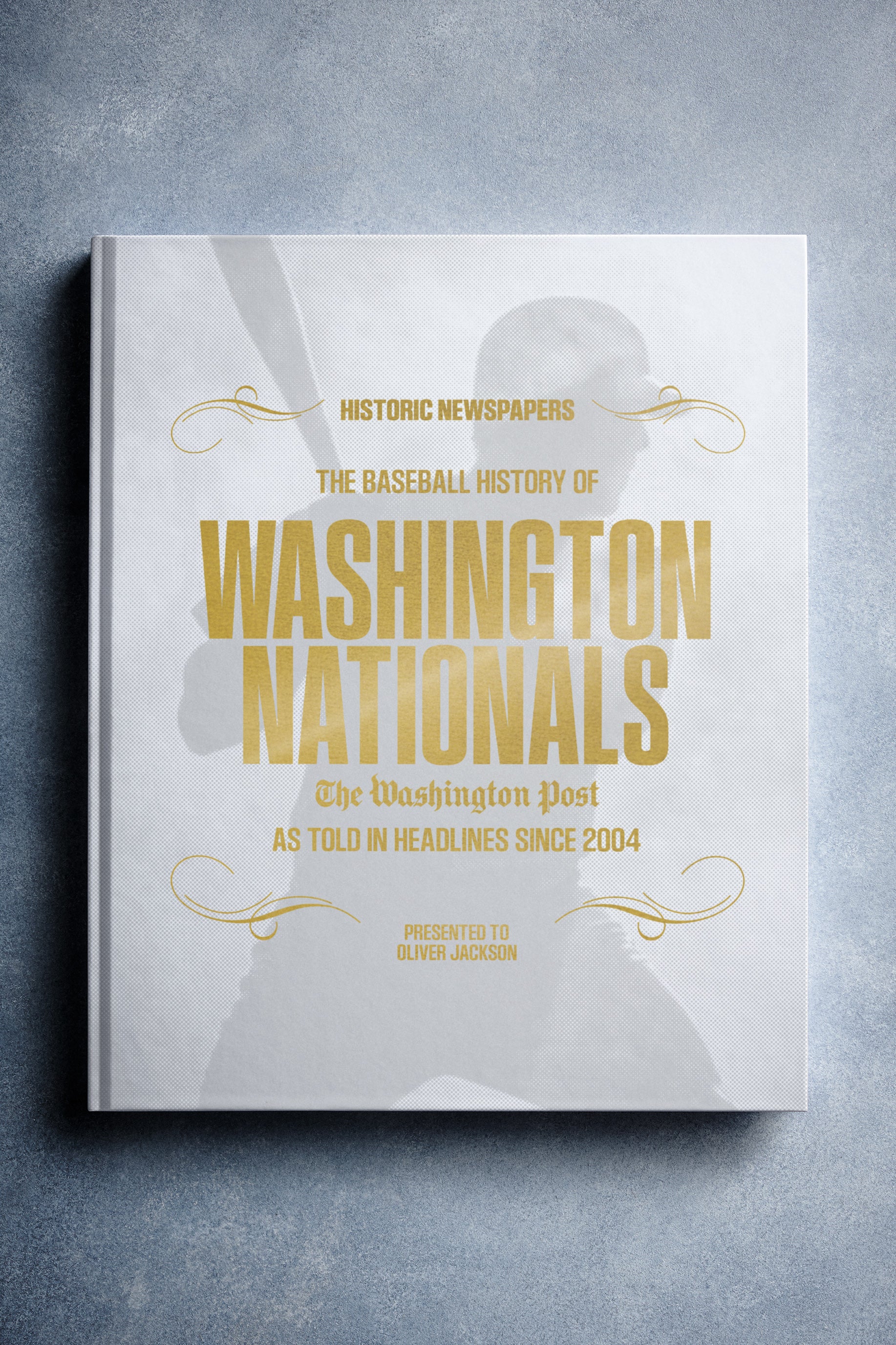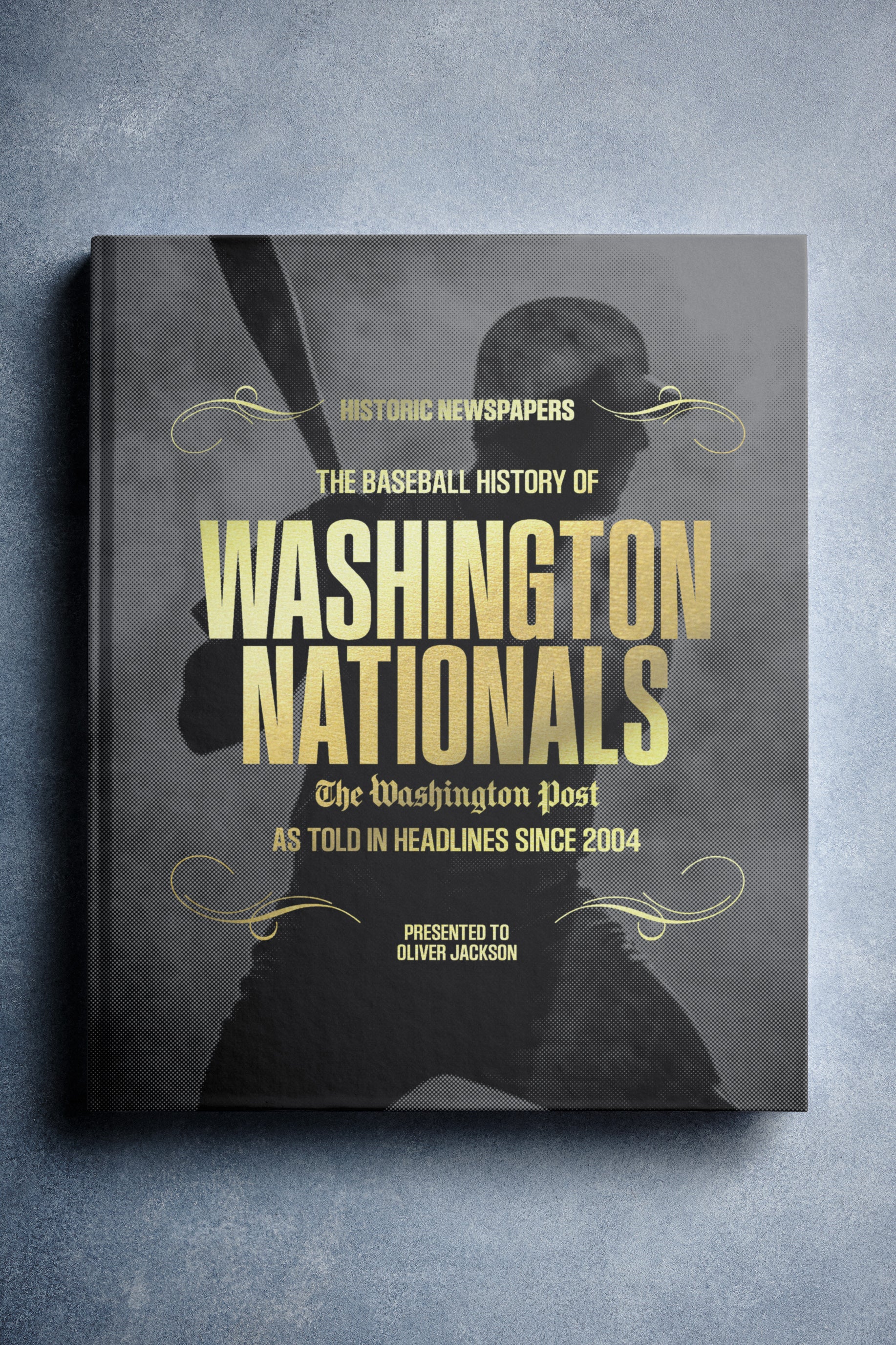 This coffee-table book features 160 pages of authentic Washington Post News newspaper reports about The History of the Baseball. It comes with a choice of covers and the option to have the recipient’s name printed on the cover for free.This personalized baseball book honors the team’s legacy and is a top choice among Washington Nationals gifts. It features over 150 pages of authentic Washington Post newspaper reports about The History of Washington Nationals baseball, from 2004 onwards.