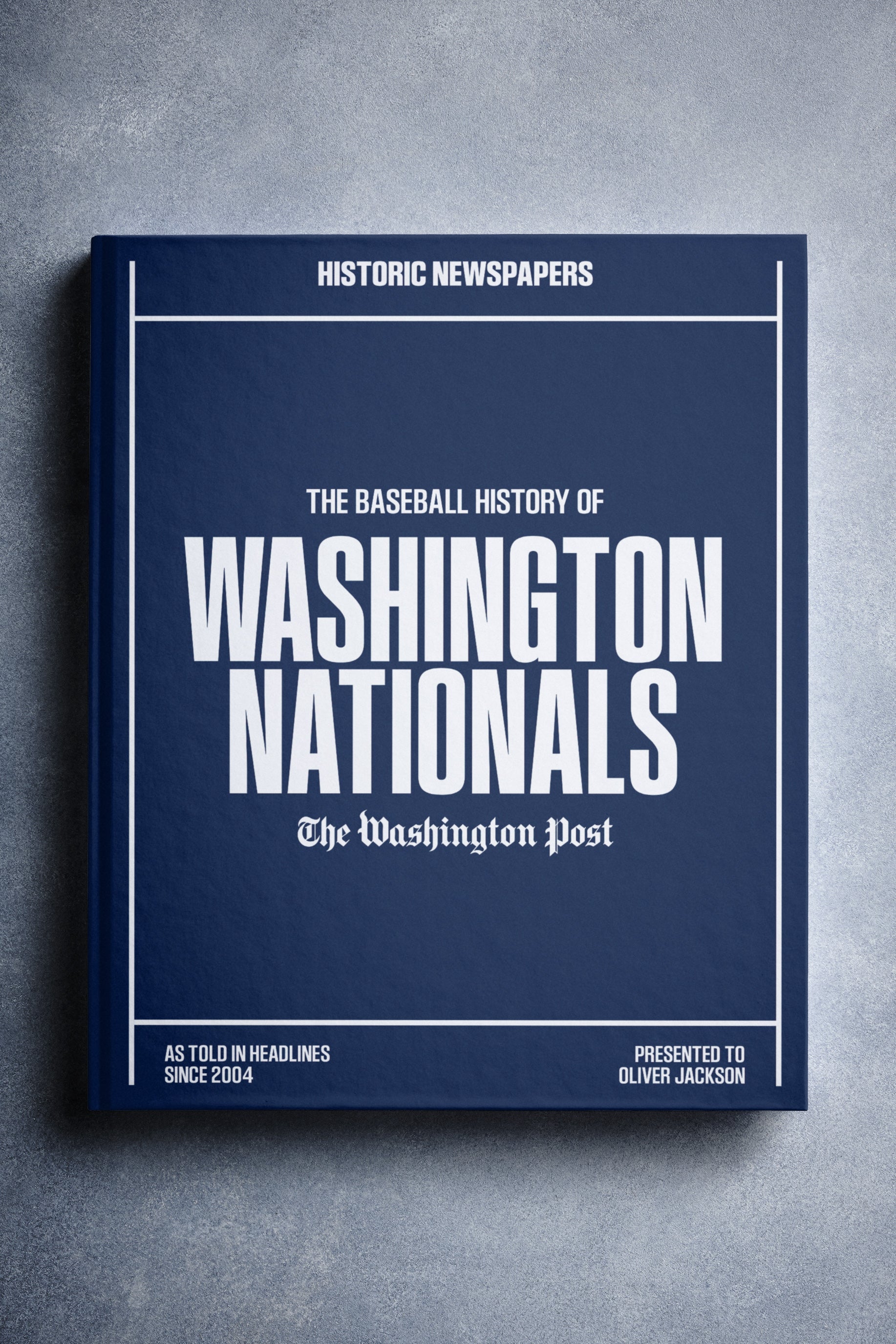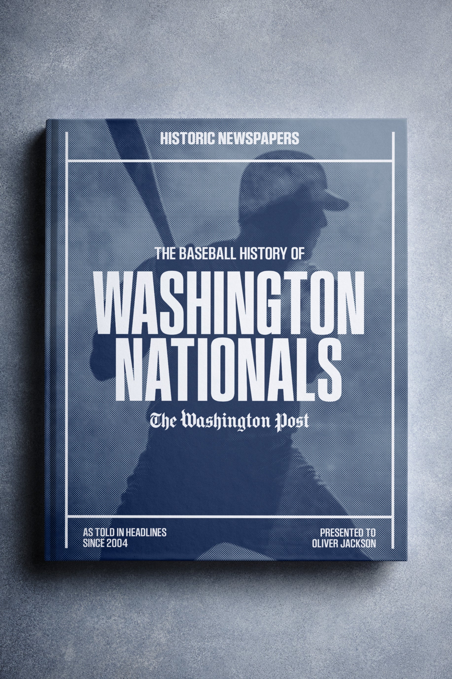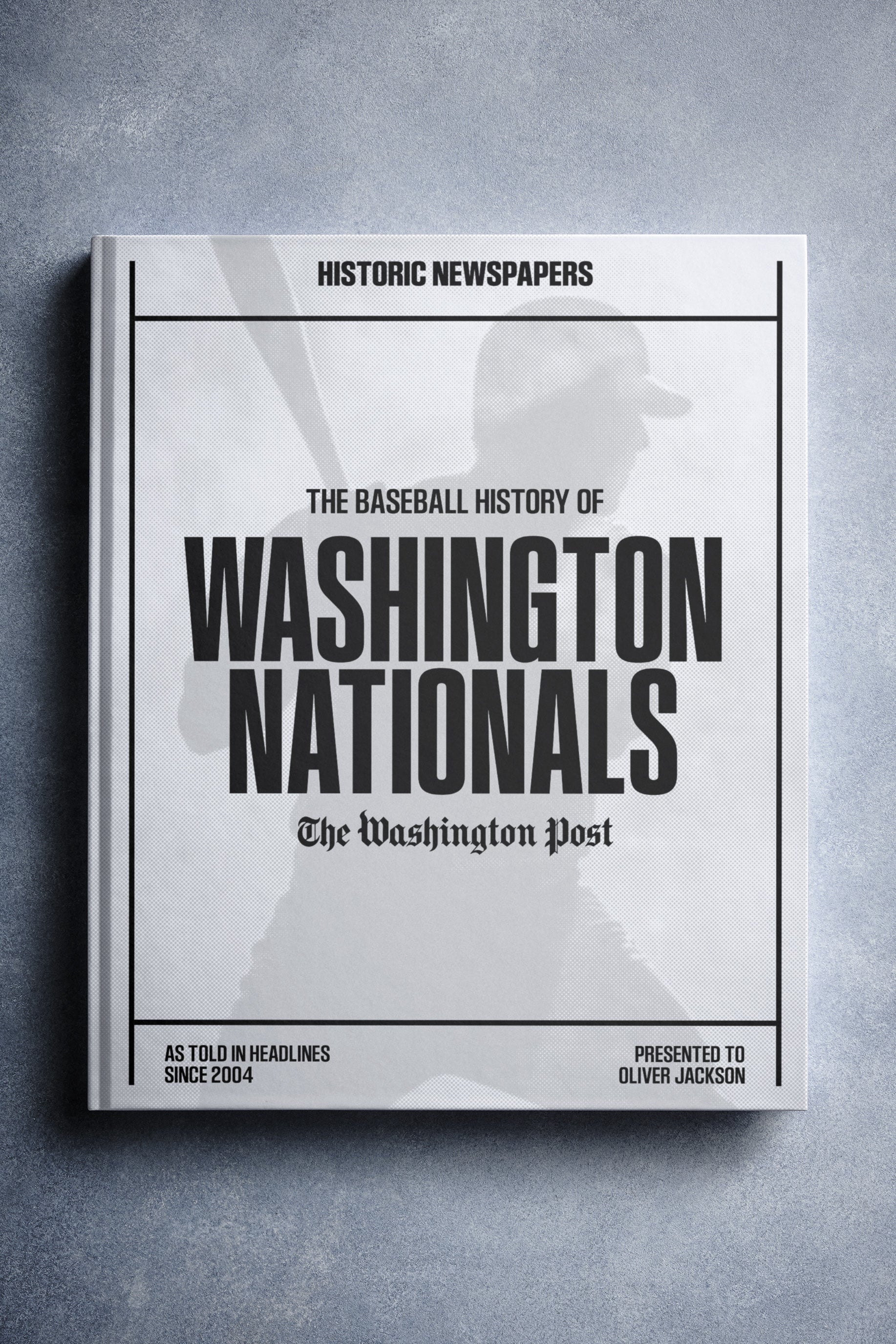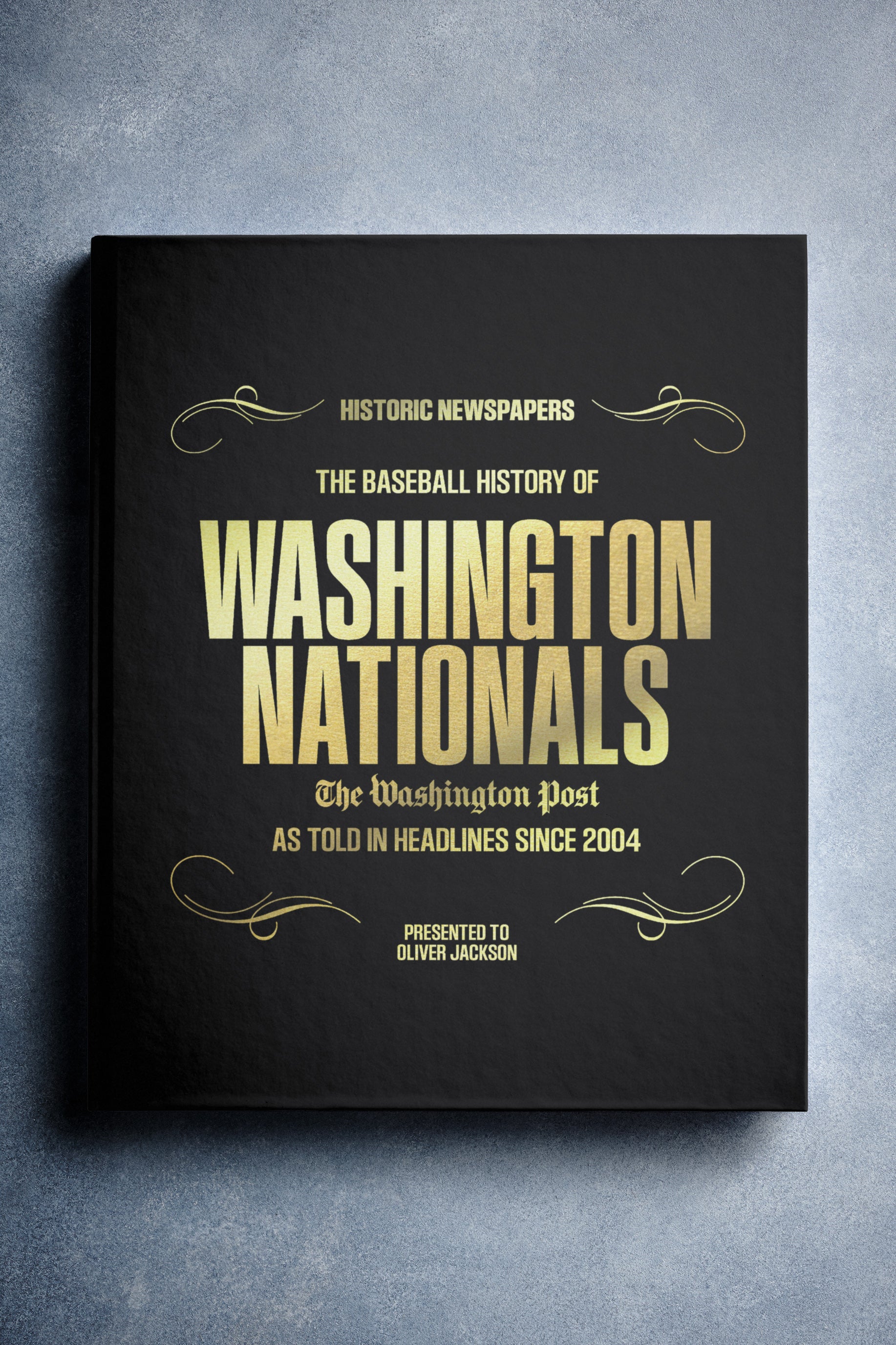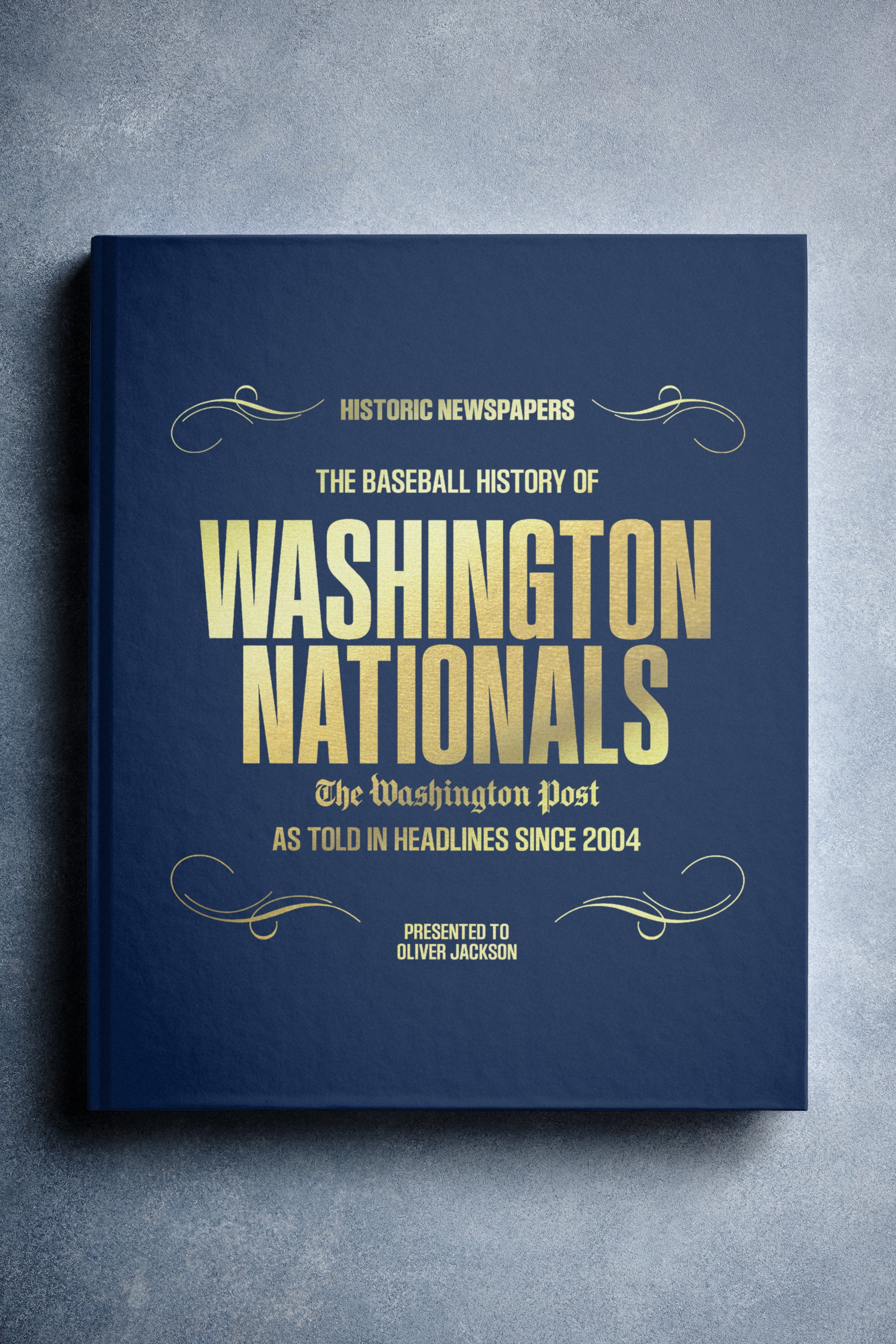 This coffee-table book features 160 pages of authentic Washington Post News newspaper reports about The History of the Baseball. It comes with a choice of covers and the option to have the recipient’s name printed on the cover for free.This personalized baseball book honors the team’s legacy and is a top choice among Washington Nationals gifts. It features over 150 pages of authentic Washington Post newspaper reports about The History of Washington Nationals baseball, from 2004 onwards.
