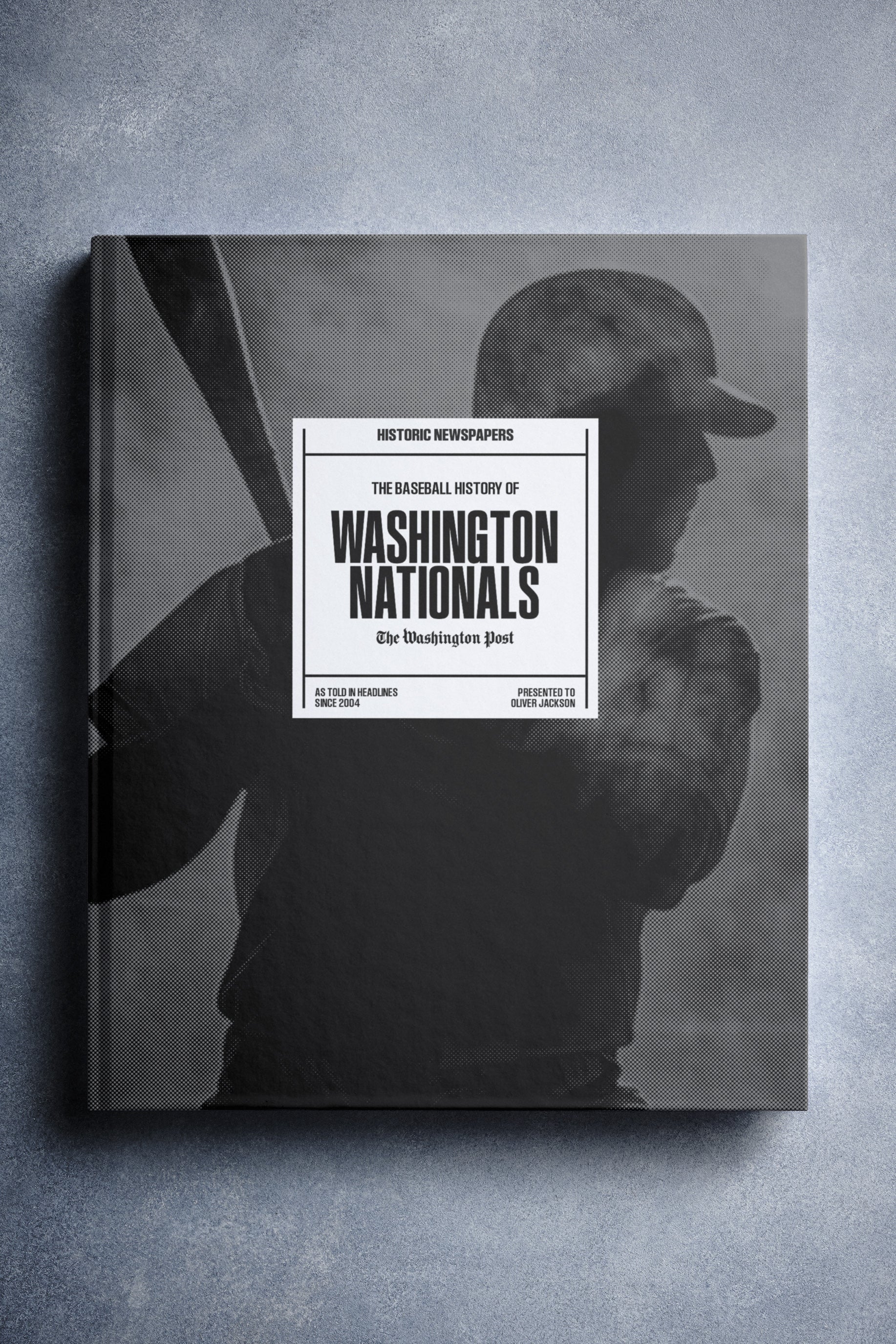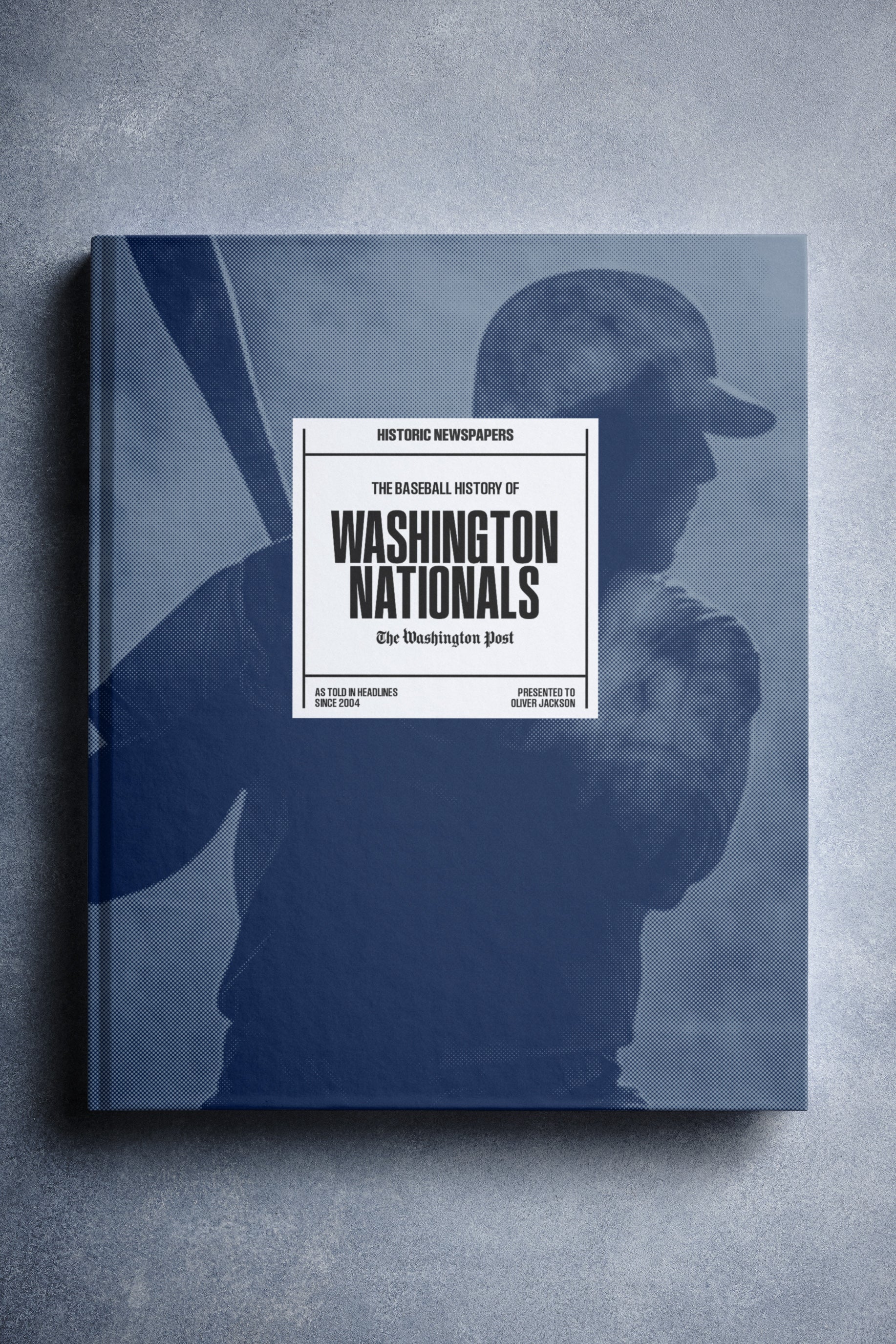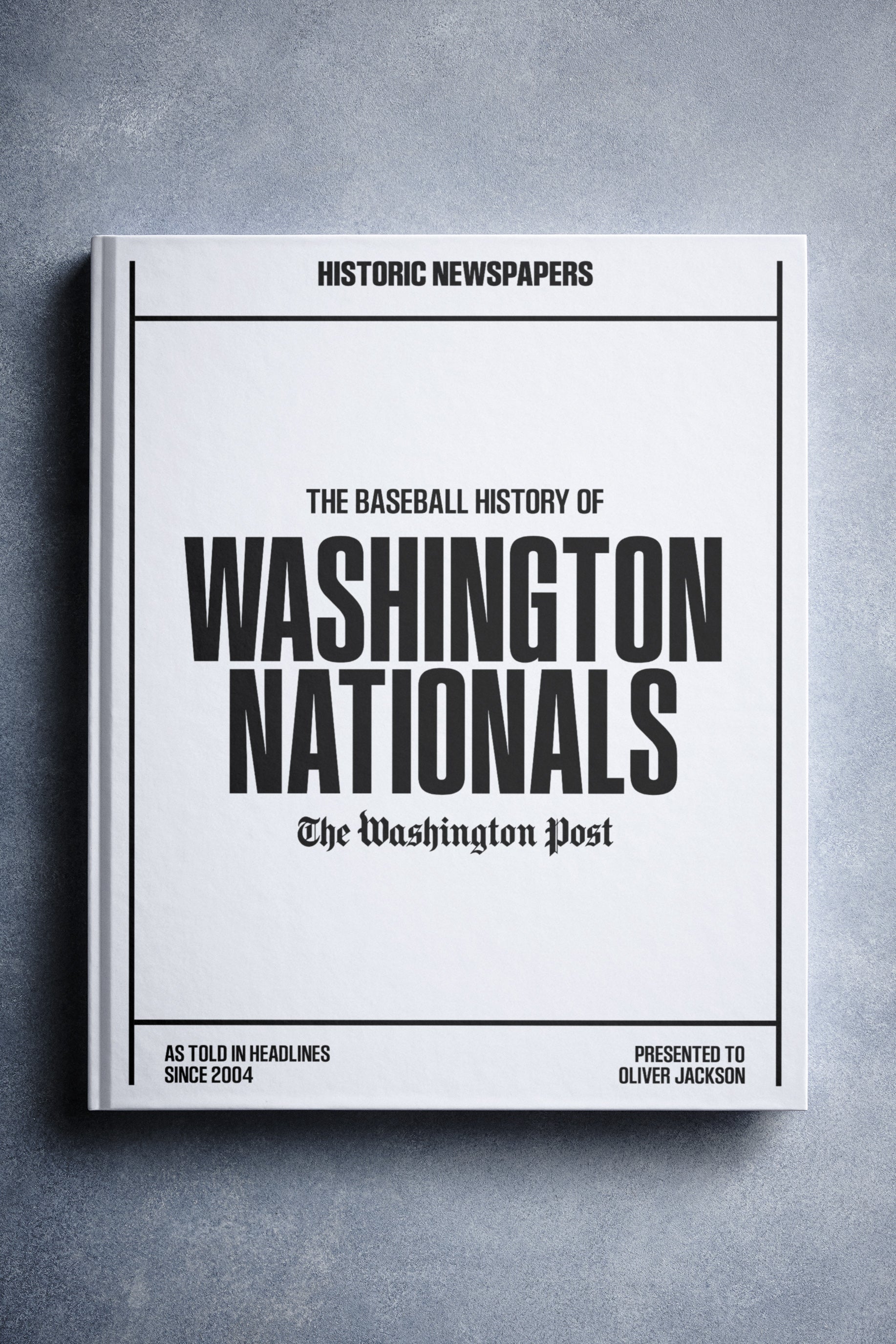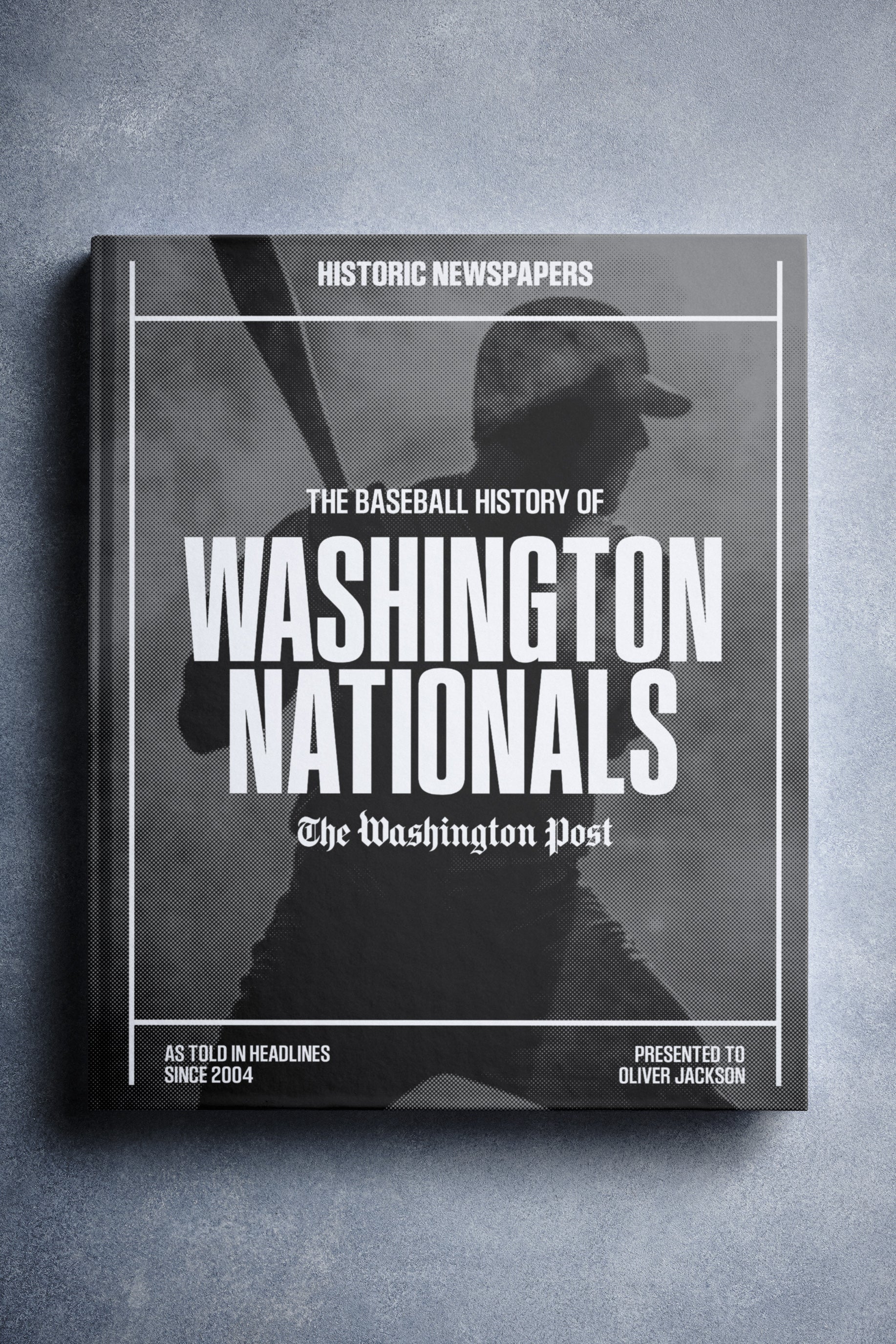 This coffee-table book features 160 pages of authentic Washington Post News newspaper reports about The History of the Baseball. It comes with a choice of covers and the option to have the recipient’s name printed on the cover for free.This personalized baseball book honors the team’s legacy and is a top choice among Washington Nationals gifts. It features over 150 pages of authentic Washington Post newspaper reports about The History of Washington Nationals baseball, from 2004 onwards.