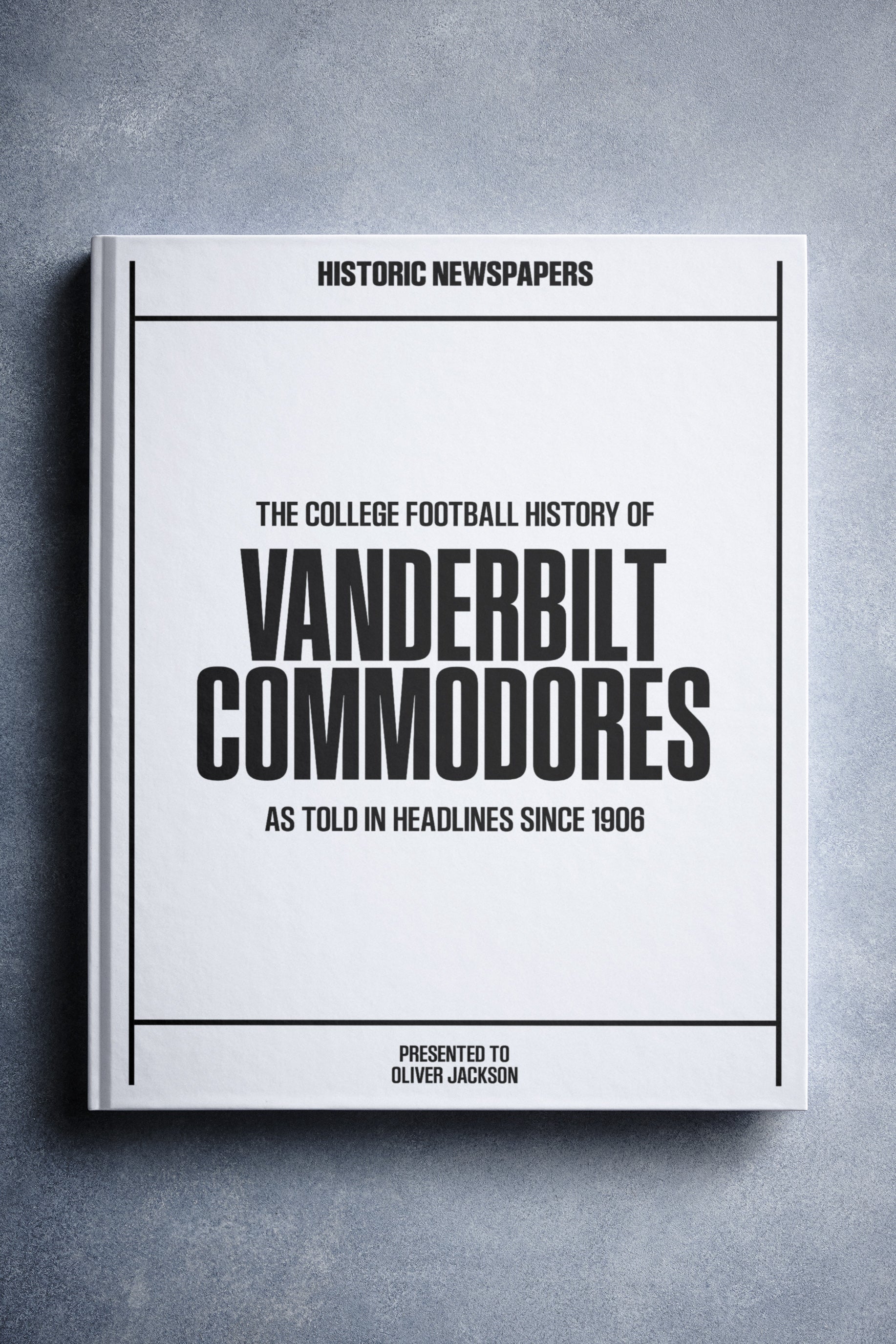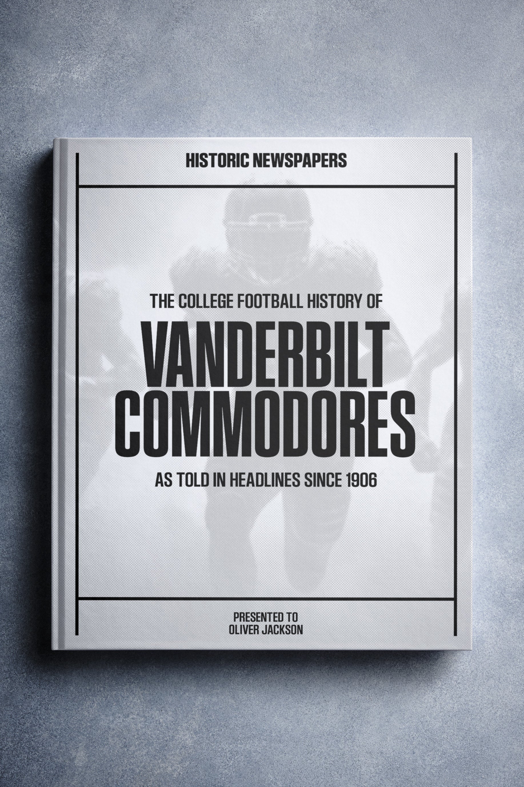 FOLLOW the story of the Vanderbilt Commodores from 1906 onwards, told through original newspaper reports as they were published at the time. From the 1955 Gator Bowl victory to the 41 – 18 win over Tennessee in 2012, and the 40 – 35 triumph over Alabama in 2024. Choose from a range of book covers and personalise your book with a name and message to create a lasting keepsake. A piece of Vanderbilt Commodores history to gift, share, and relive.