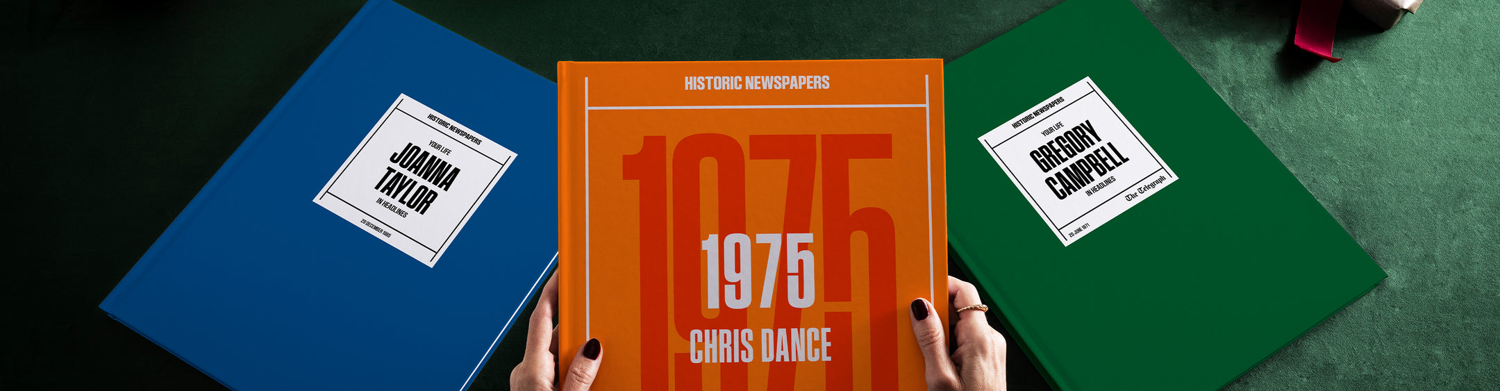 A NEWSPAPER book for any occasion captures headlines from the same meaningful date every year — perfect for anniversaries, retirements, or any day worth remembering.
