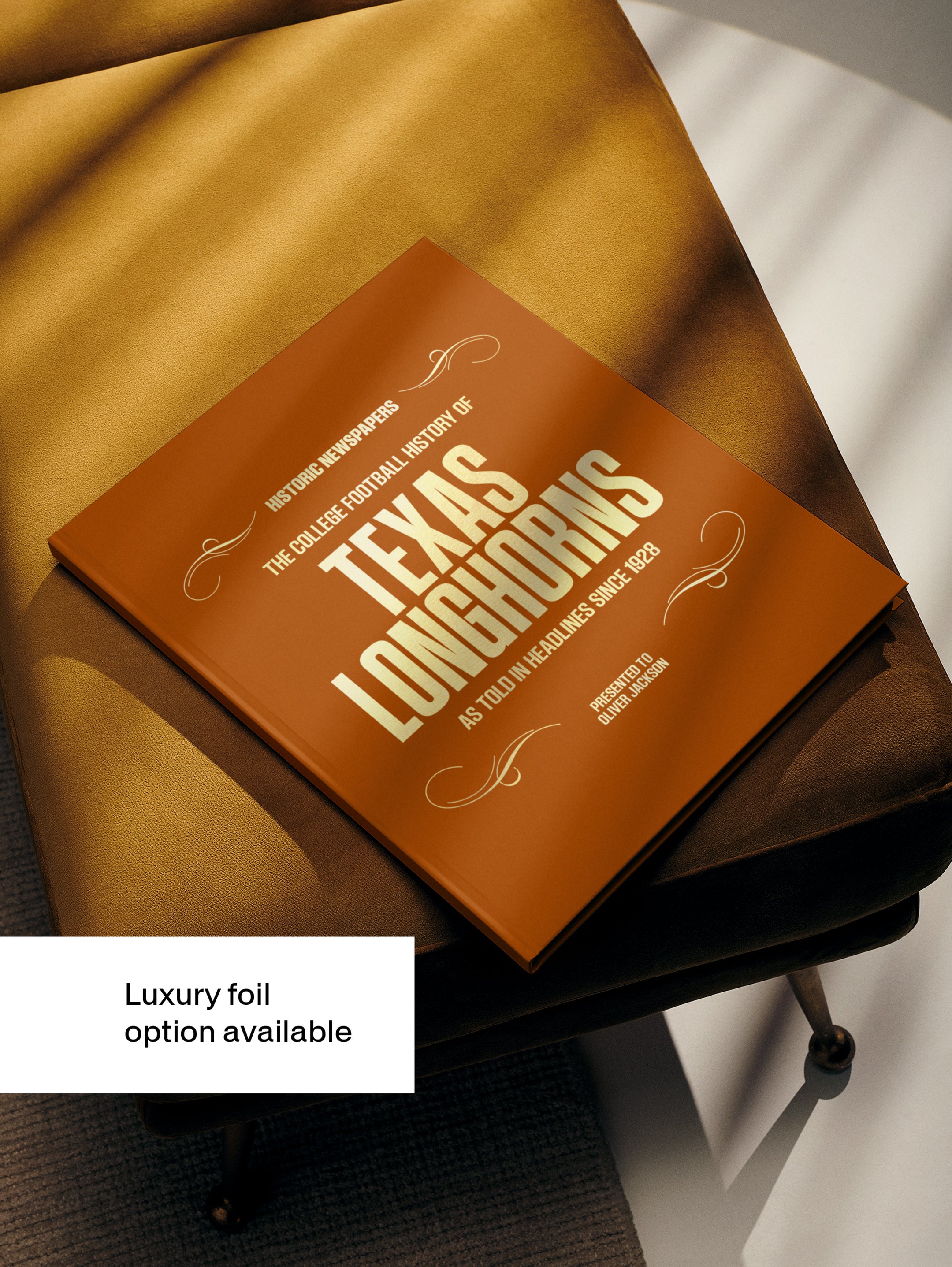 FOLLOW the story of the Texas Longhorns from 1928 onwards, told through original newspaper reports. Relive historic moments — from the 1970 Cotton Bowl, to Earl Campbell winning the Heisman Trophy in 1977, to the 2023 Big 12 Championship title victory. Choose from a range of book covers and personalise your book with a name and message to create a lasting keepsake. A piece of Texas Longhorns history to gift, share, and relive.