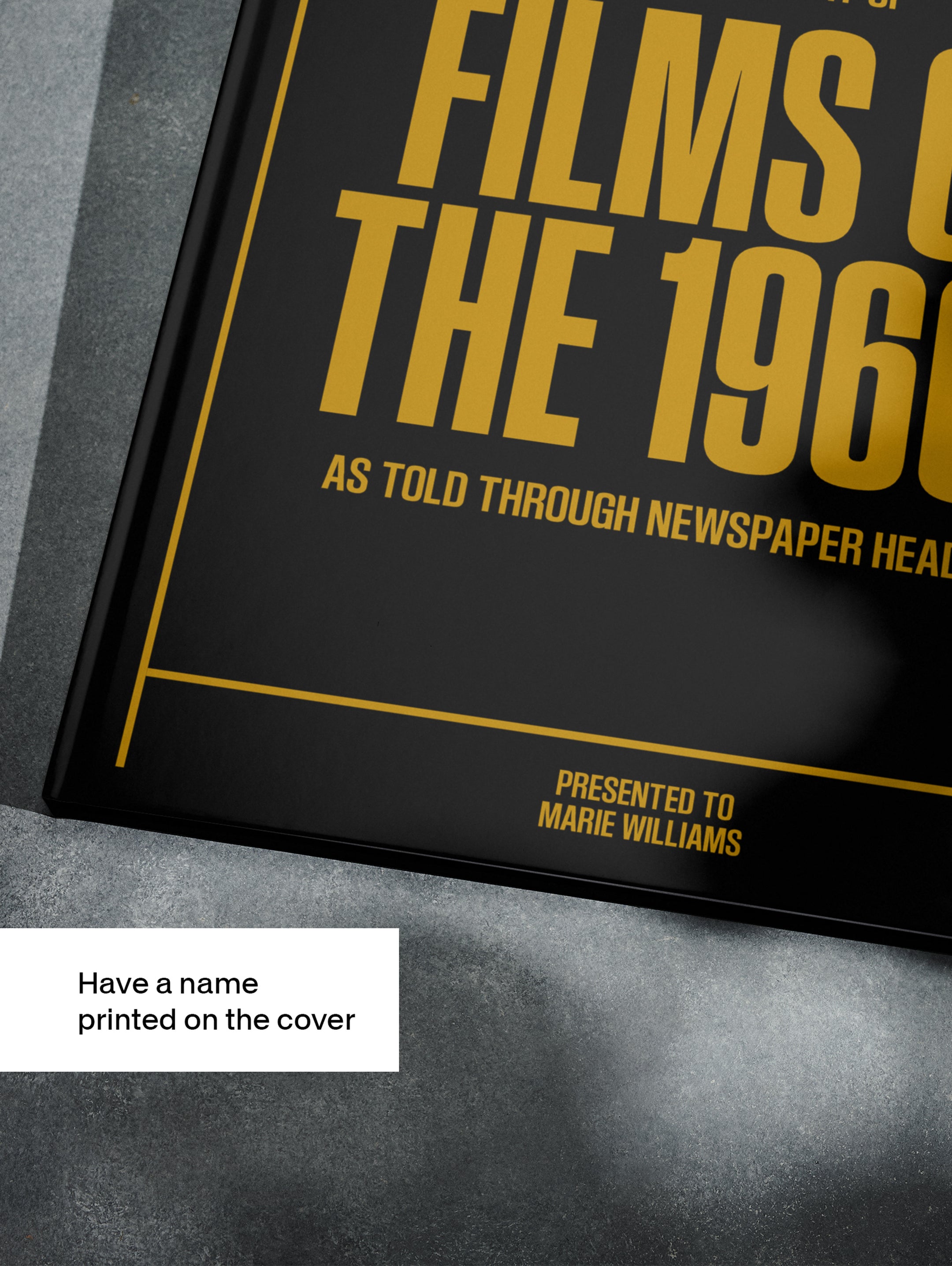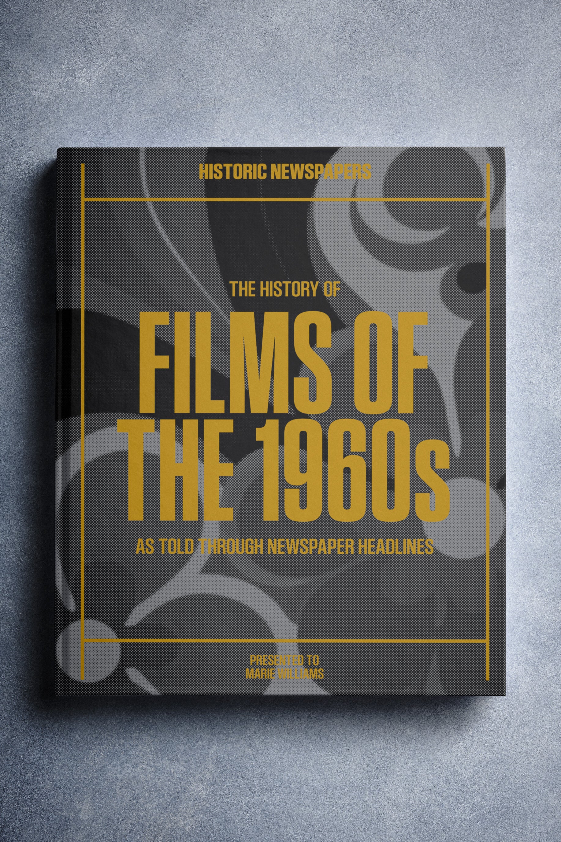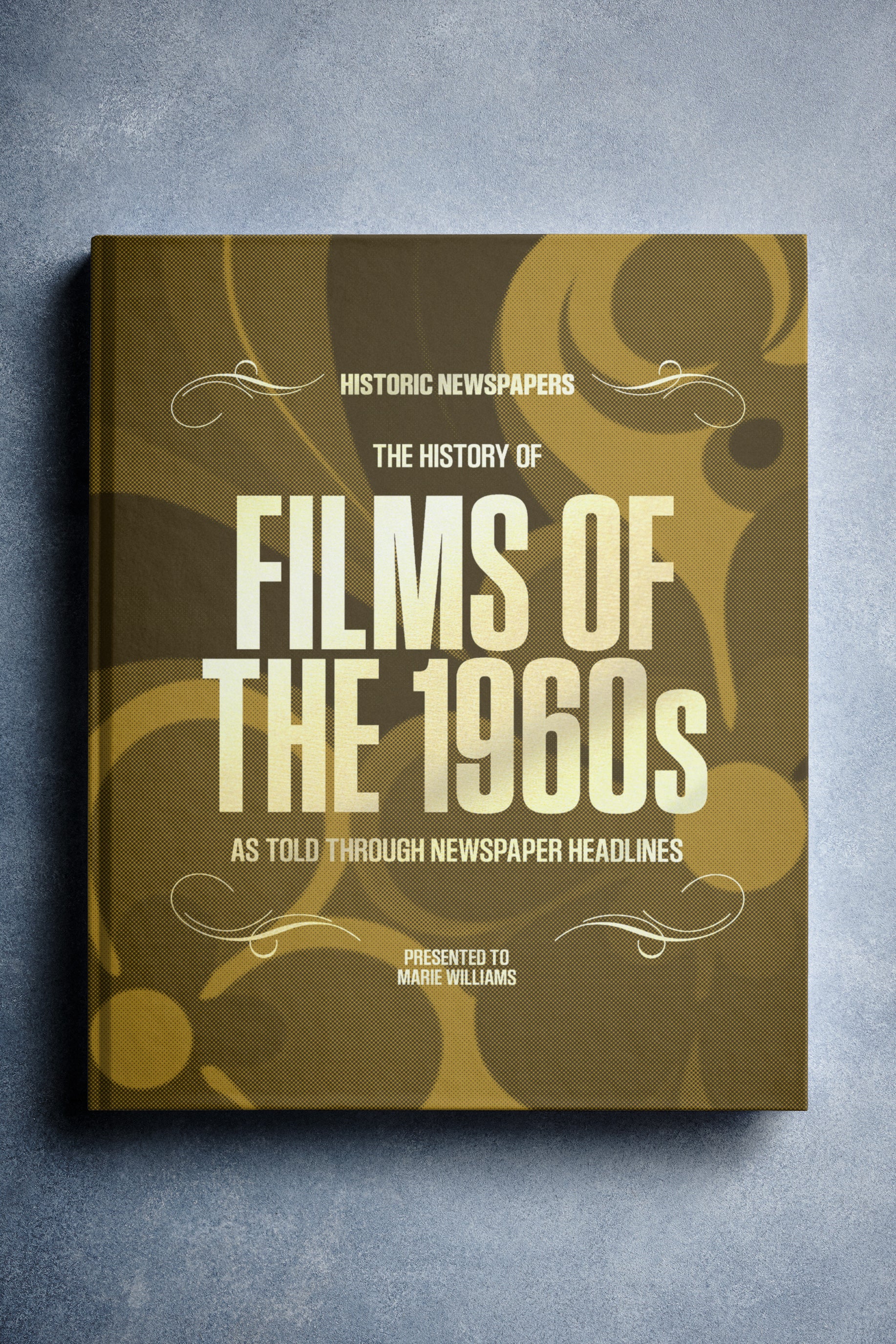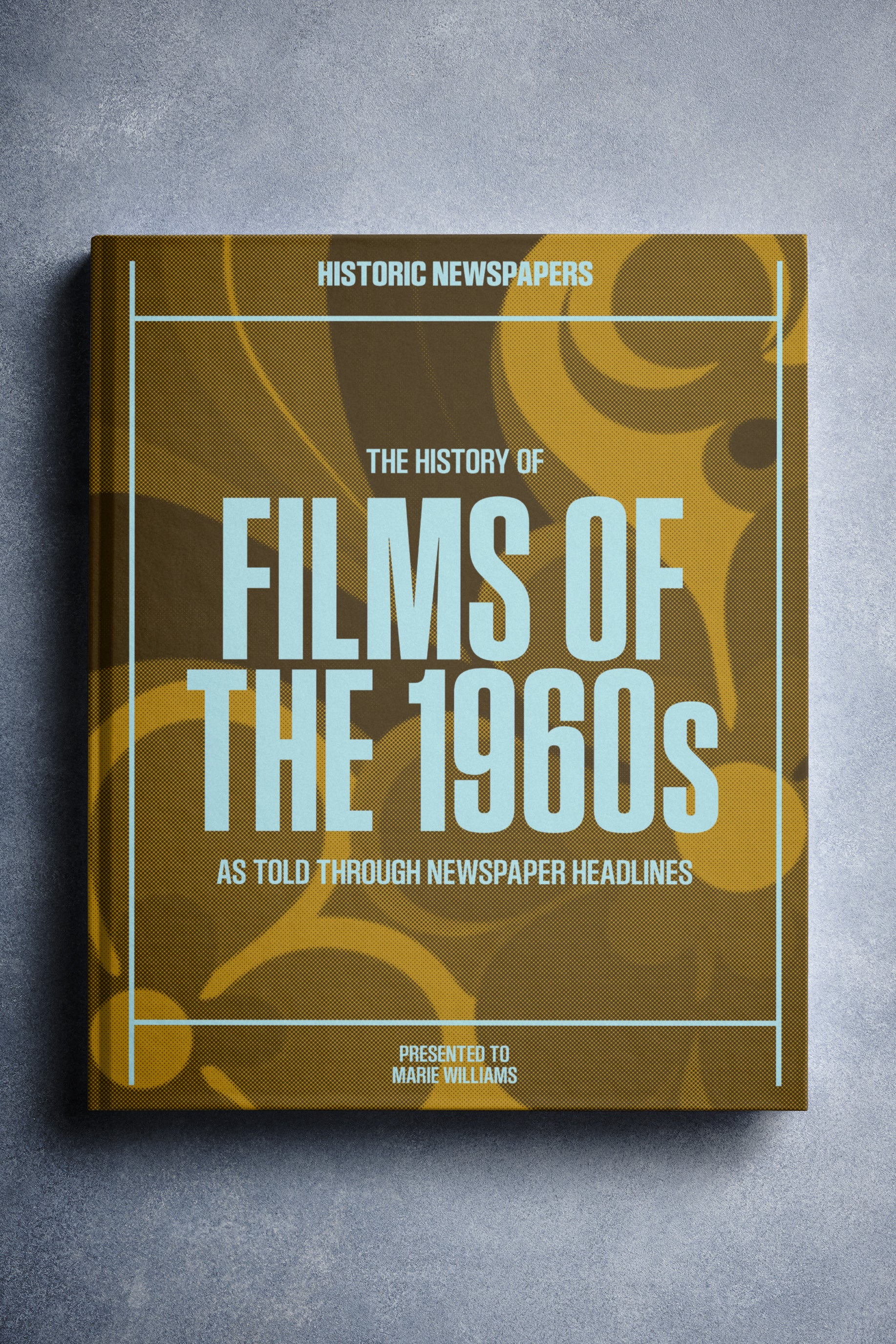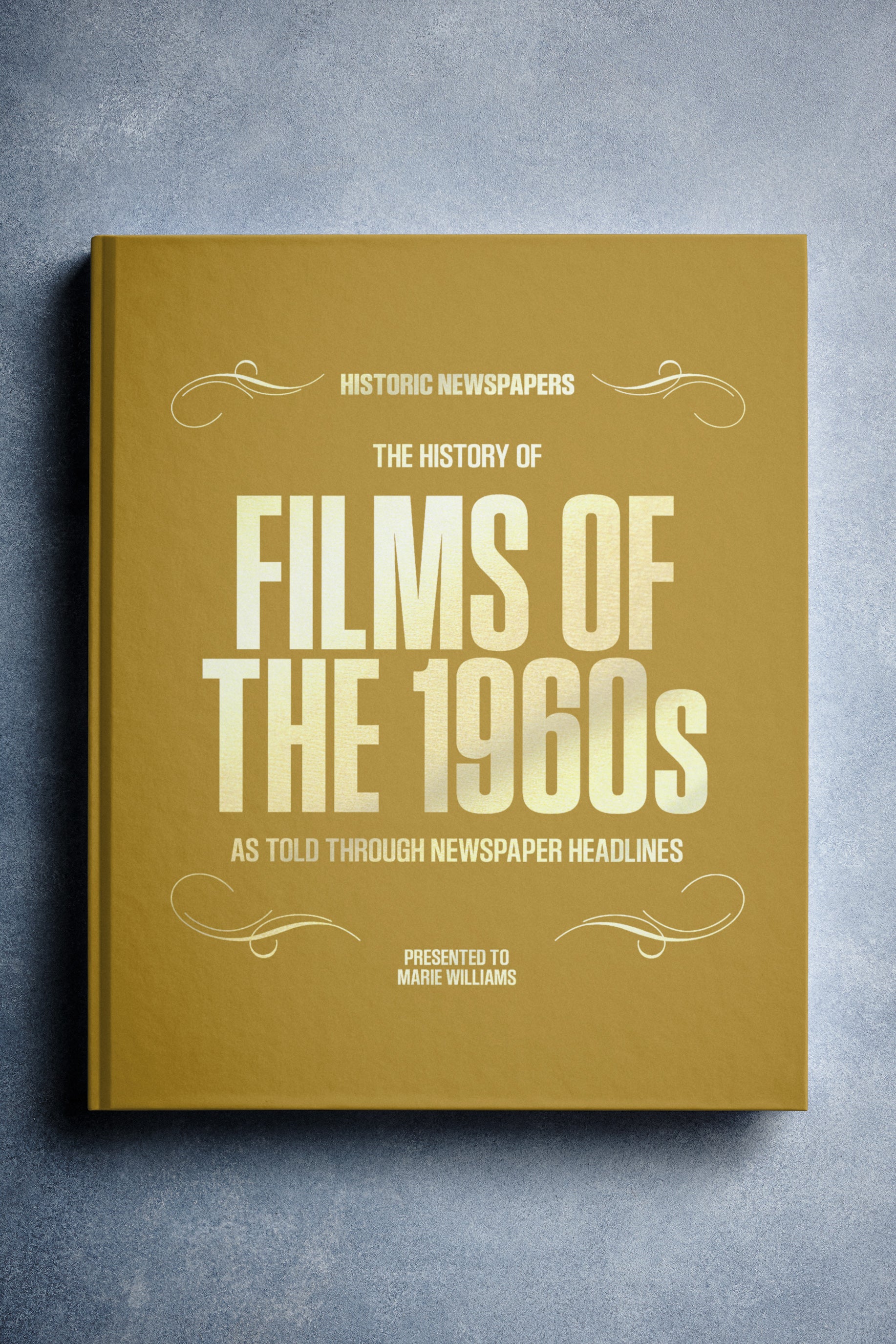 This coffee-table book features over 140 pages of original newspaper reports about The History of 1960s Movies. It comes with a choice of covers and the option to have the recipient’s name printed on the cover for free.