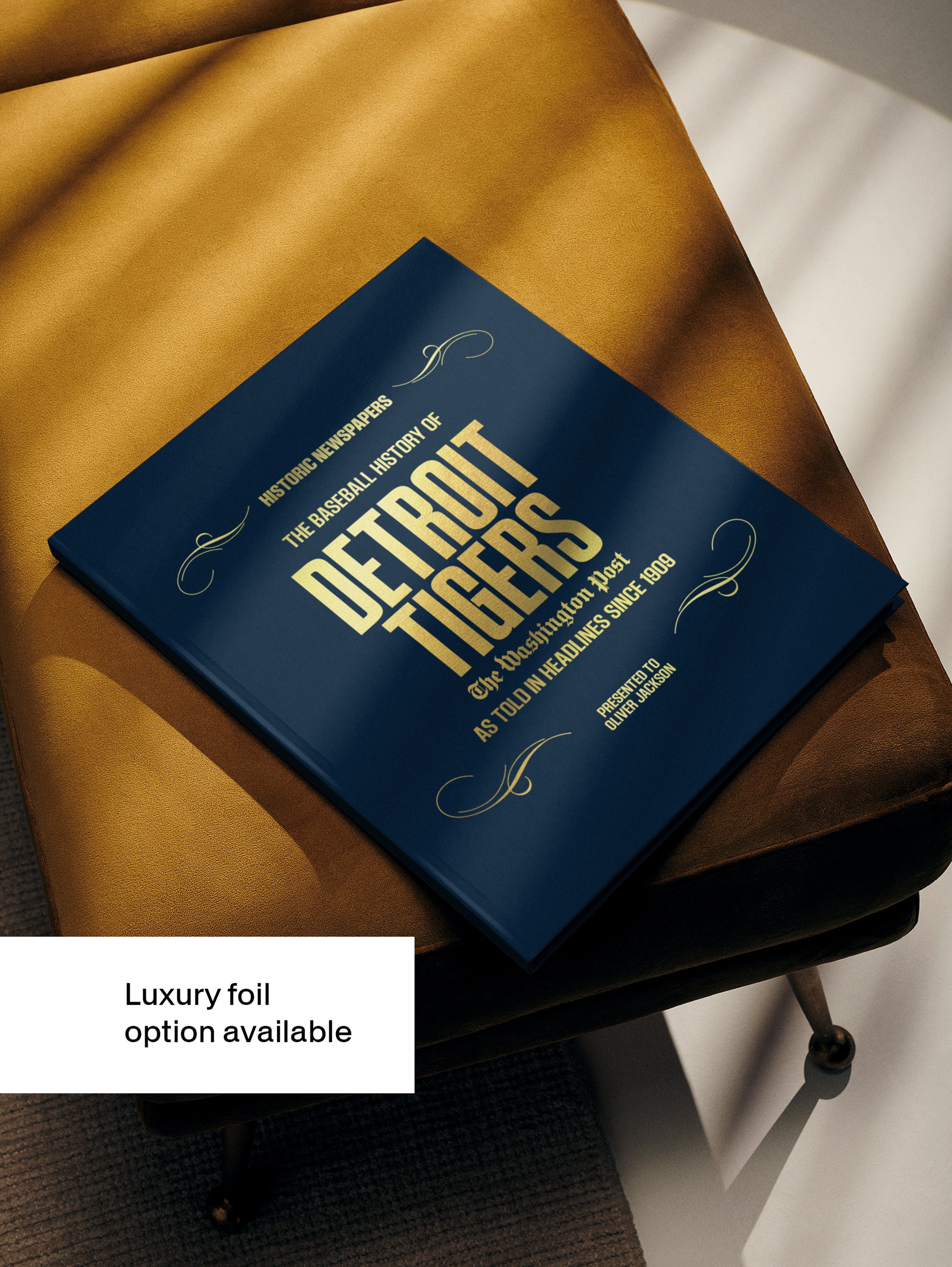 A cherished keepsake for any Detroit Tigers fan, whether for a special occasion or to add to their collection. This baseball book features over 140 pages of authentic Washington Post newspaper reports, capturing Detroit Tigers history from 1909 onward. It comes with a choice of covers and the option to have the recipient’s name printed on the cover for free.