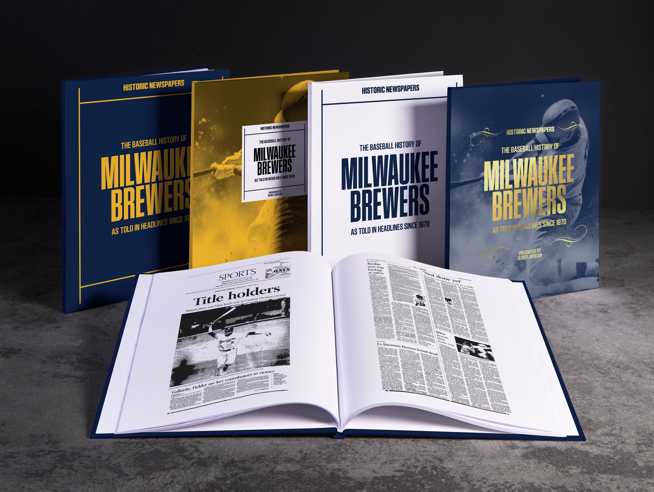 A memorable Milwaukee Brewers gift for any fan, whether for a special occasion or to add to their collection. This baseball book features 140+ pages of authentic Milwaukee Journal reports about the history of baseball. It comes with a choice of covers and the option to have the recipient’s name printed on the cover for free.
