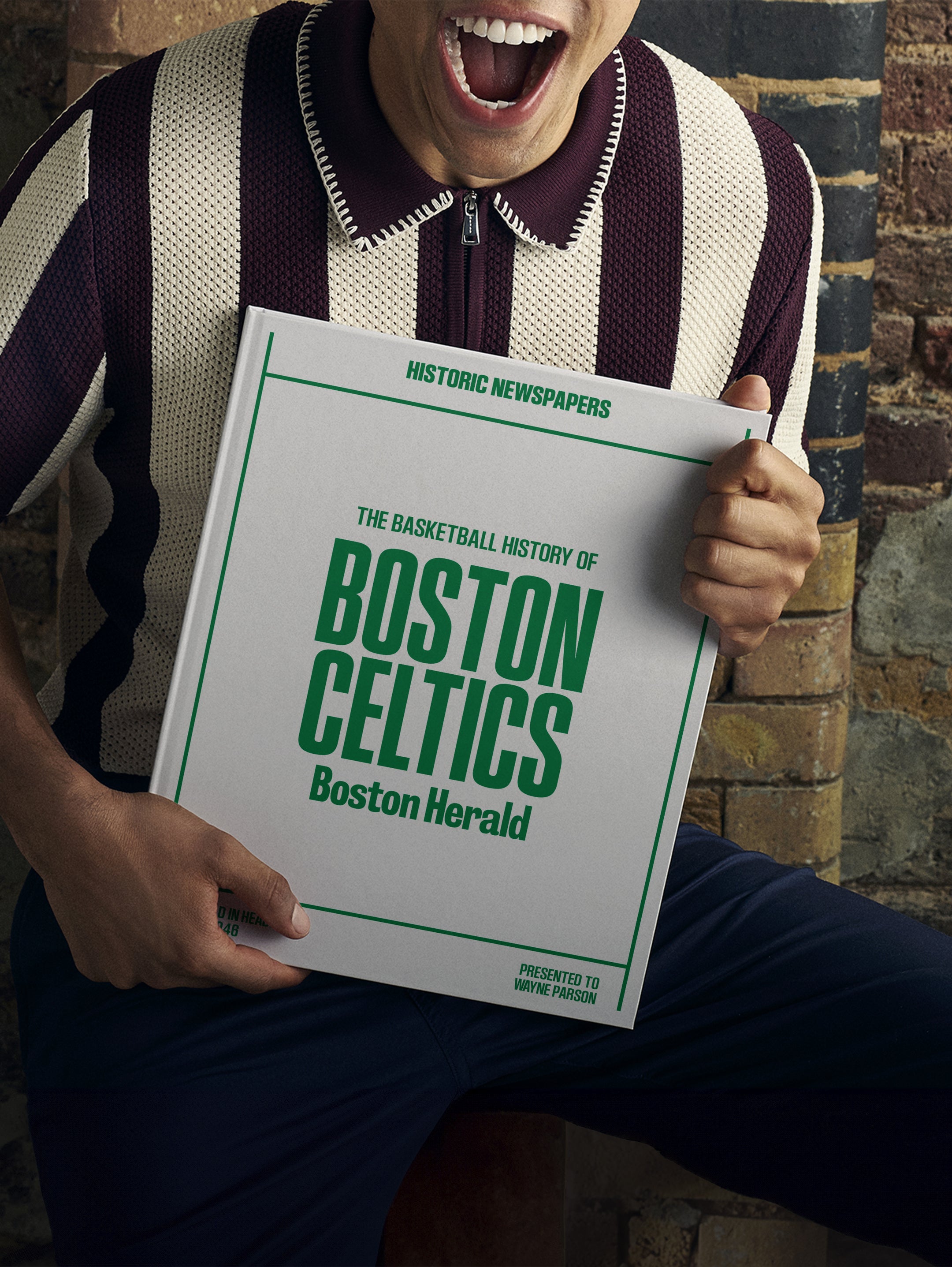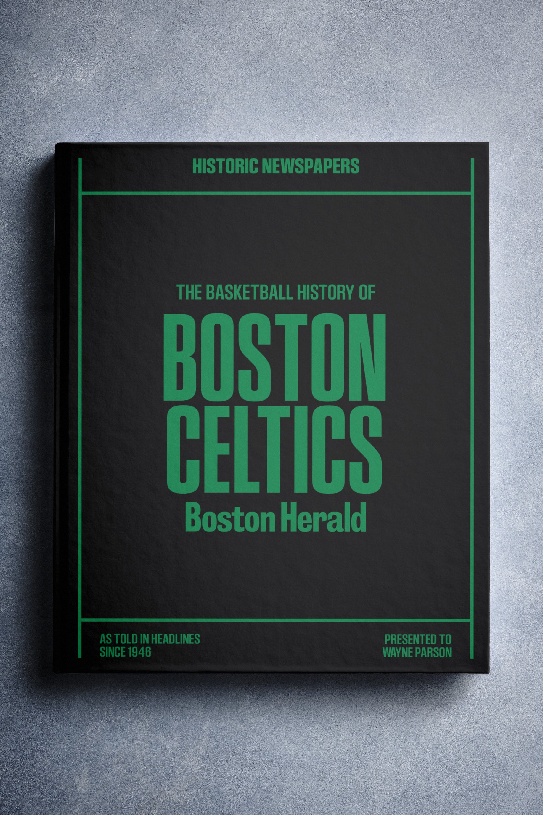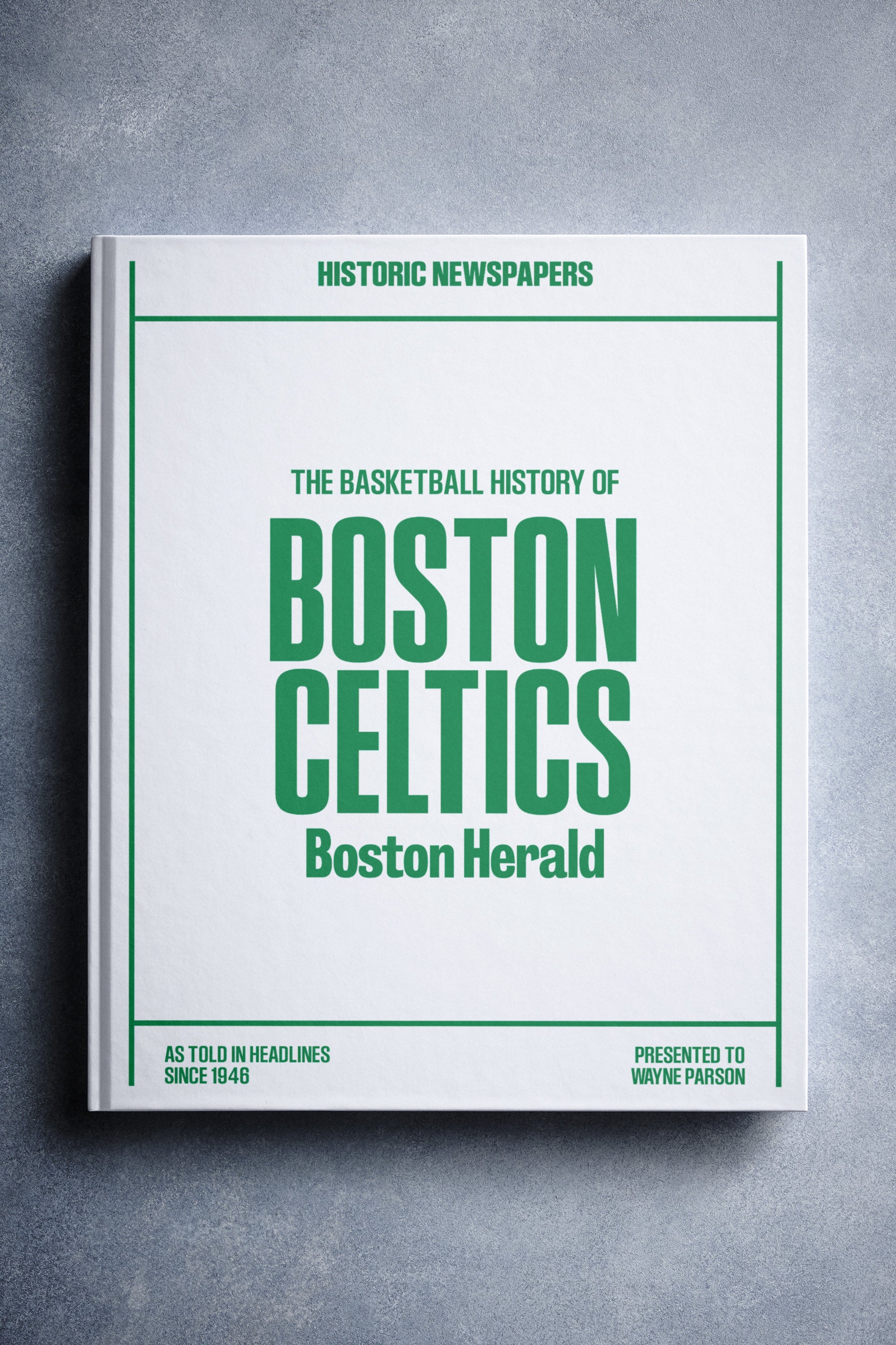 FOLLOW the story of the Boston Celtics from 1946 onwards, told through original newspaper reports as they were published at the time. From John Havlicek’s steal in the closing seconds of Game 7 of the 1965 Eastern Conference Finals, to the 128–126 triple-overtime win against Phoenix Suns in Game 5 of the 1976 NBA Finals, and the record 18 NBA Championships won. Choose from a range of book covers and personalize your book with a name and message to create a lasting keepsake. A piece of Celtics history to gift, share, and relive.